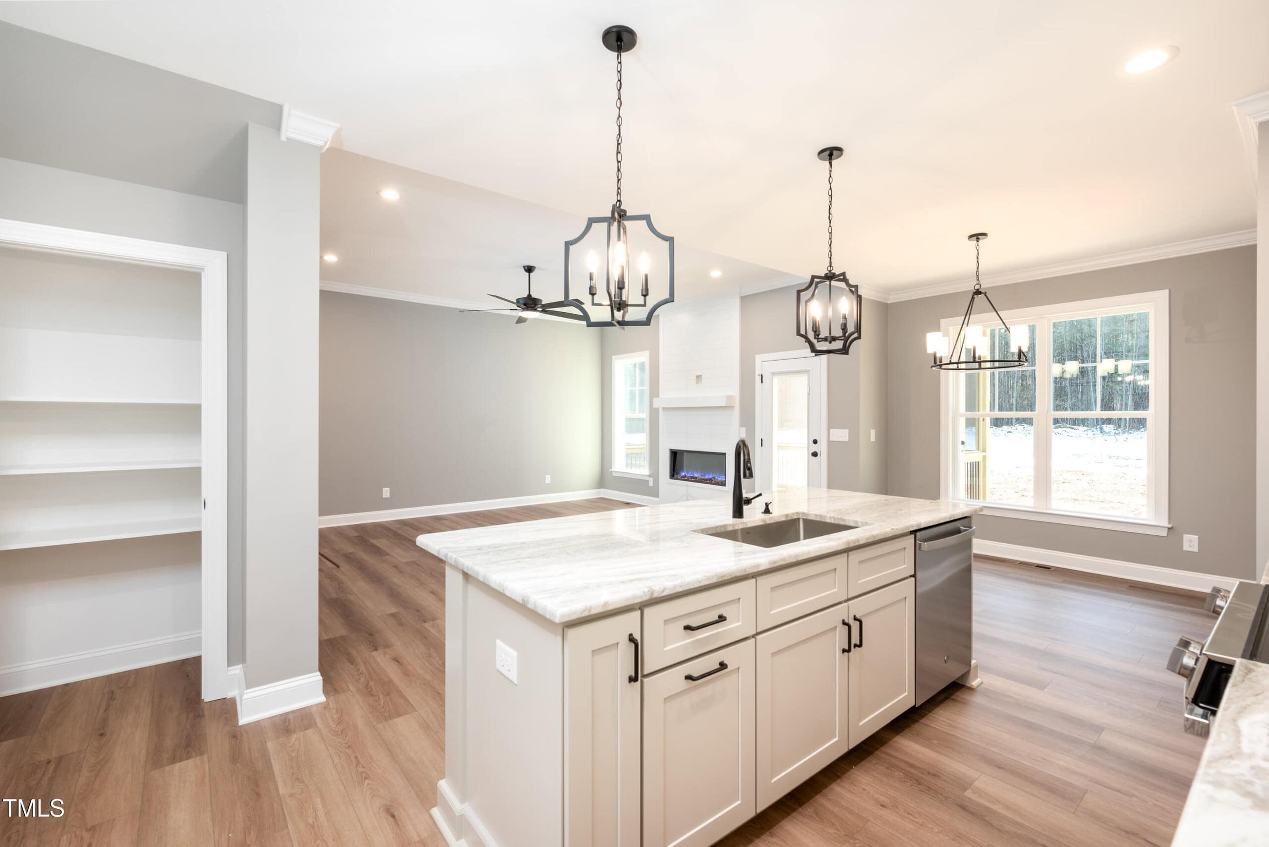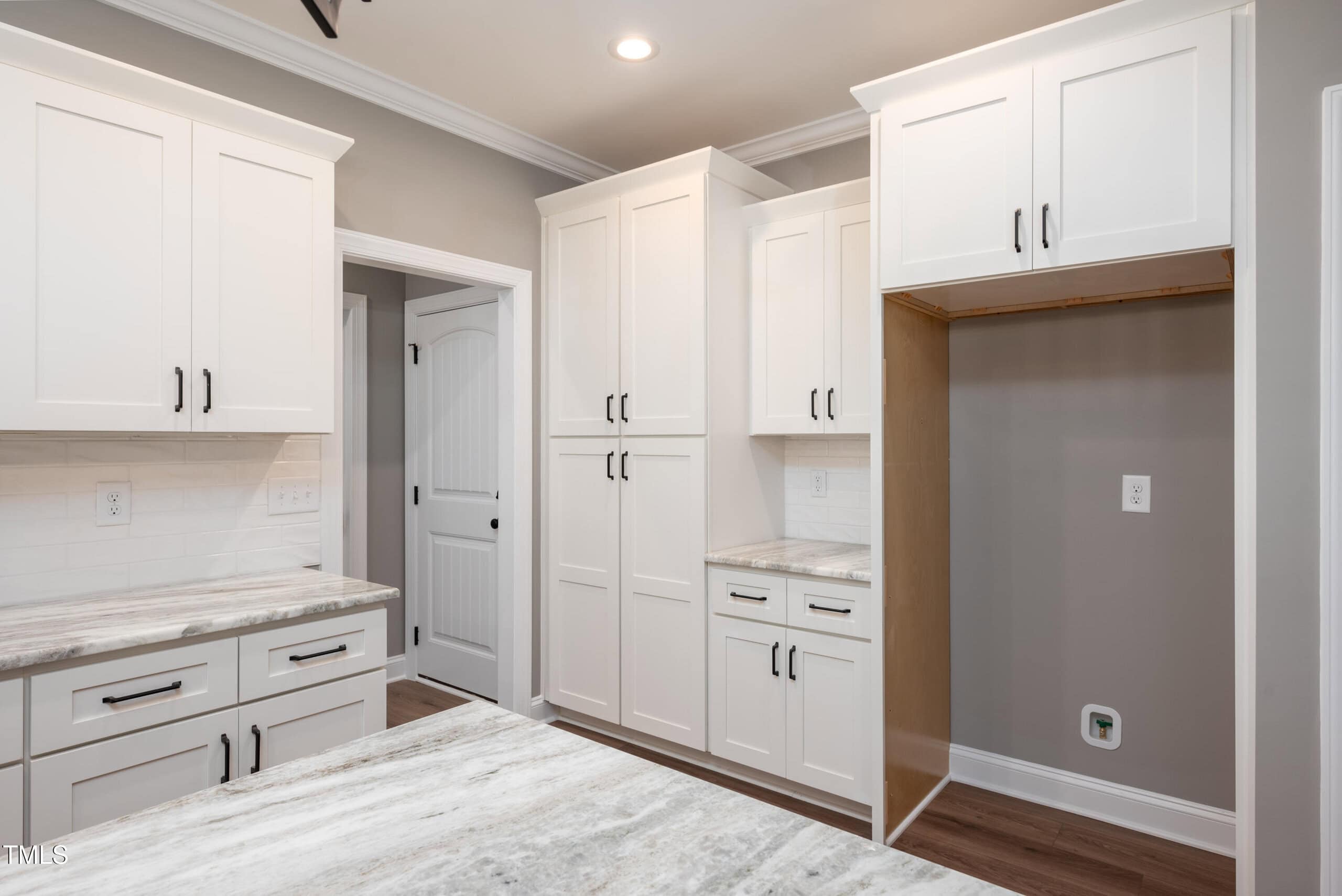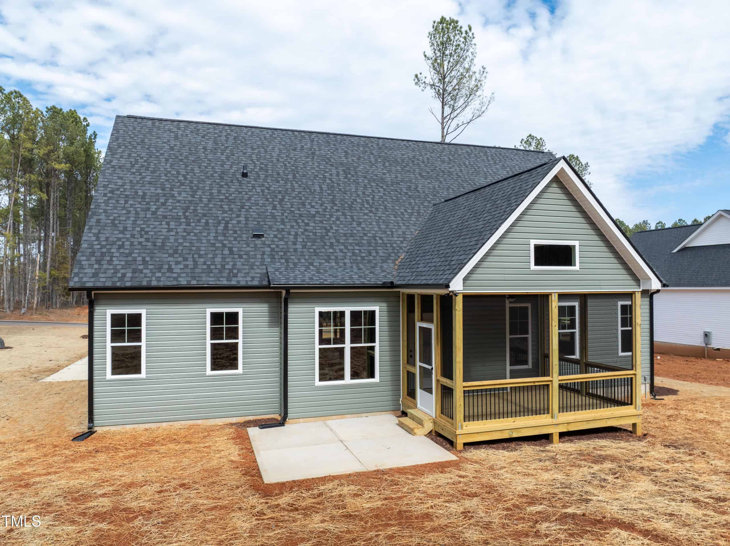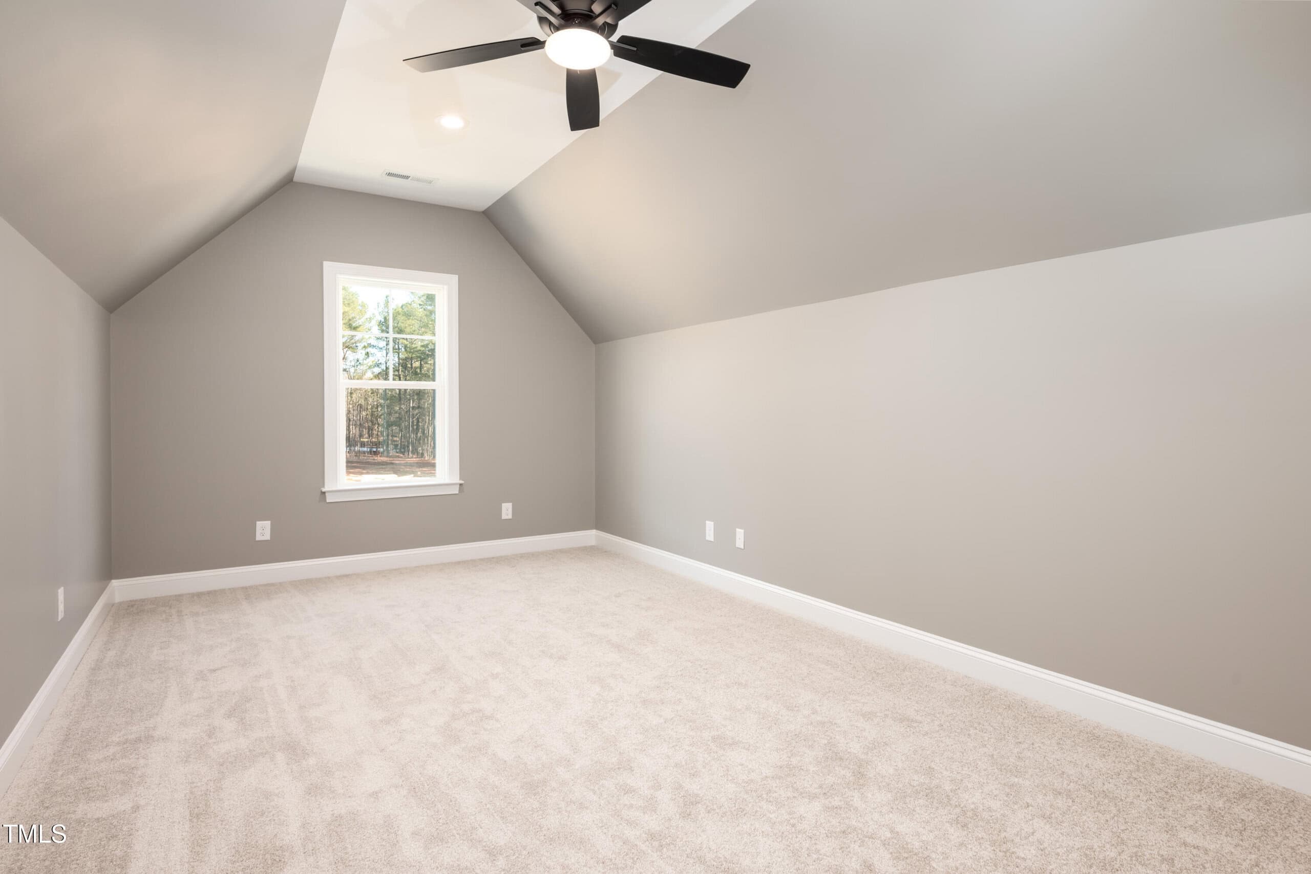 One and a half story ranch style home. Primary and Guest bedrooms on Main floor. Covered back porch with vaulted ceiling and ceiling fan. Breakfast nook and formal dining room. Open kitchen family room with wall mount electric fireplace on Shiplap accent wall and box mantle. Laundry room with shelf and Utility Sink. Guest bath with tub and Tiled shower walls with niche. Primary Bedroom with trey ceiling/Crown Primary Bath with large tiled walk-in shower and separate soaking Tub. Large walk in closet with wood shelving and sweater boxes, Dual vanity with granite top. 2nd floor with Large Bonus room, 3rd bedroom and Full bath. Plenty of extra walk-in storage space with room to expand.