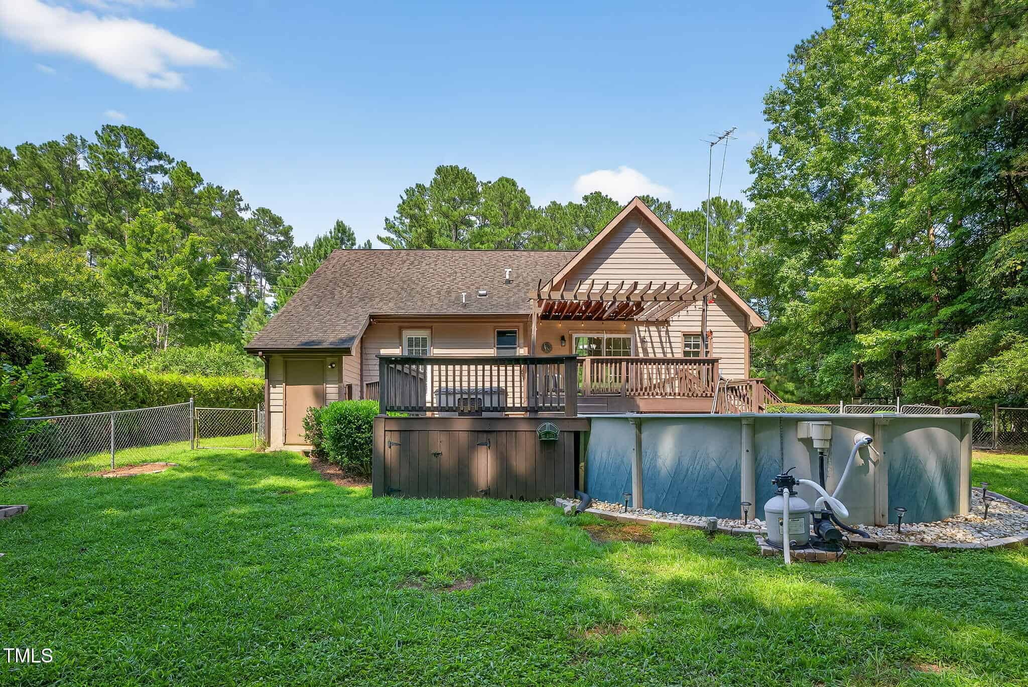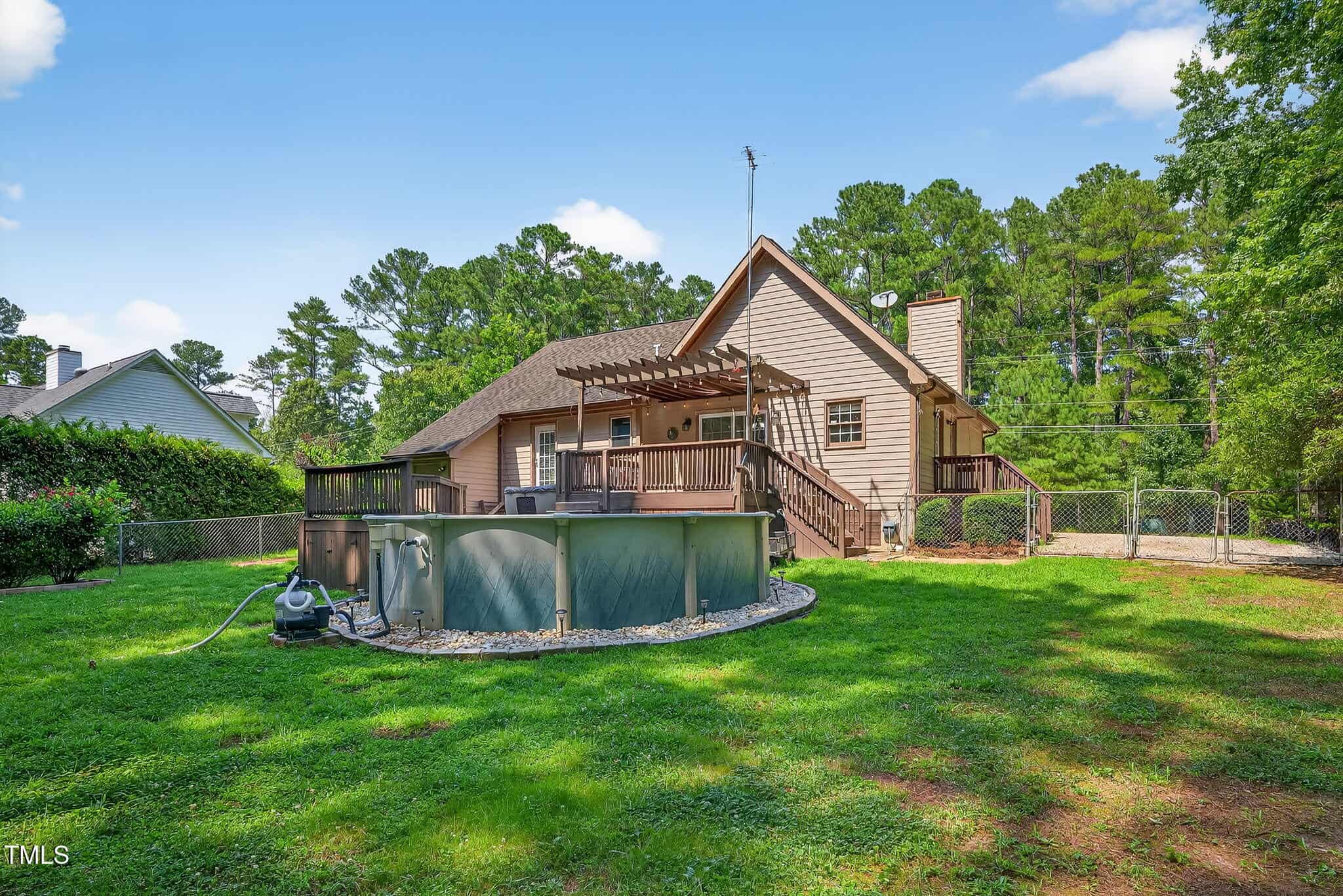 Another Lake Royale beauty with a backyard unlike any other! This custom 3 bedroom, 2 bathroom home has all you could need and more. The vaulted ceilings in the living room, plus the floor to ceiling stone fireplace is welcoming and cozy. The updated kitchen boasts granite countertops, elevated cabinetry with soft-close, and stainless steel appliances. The primary suite is an oasis in itself with your own private access to the back deck, plus a custom bathroom with a full tile shower. The secondary bedrooms and hall bath are oversized with plenty of storage. Step onto the oversized back deck for your own private retreat. Your backyard sanctuary includes a stunning above ground pool, wired workshop, and even a whole-home generator. And don’t forget the amenities included with your membership at Lake Royale: golf, pickleball, beach access, community pool, and so much more! This one truly has it all.