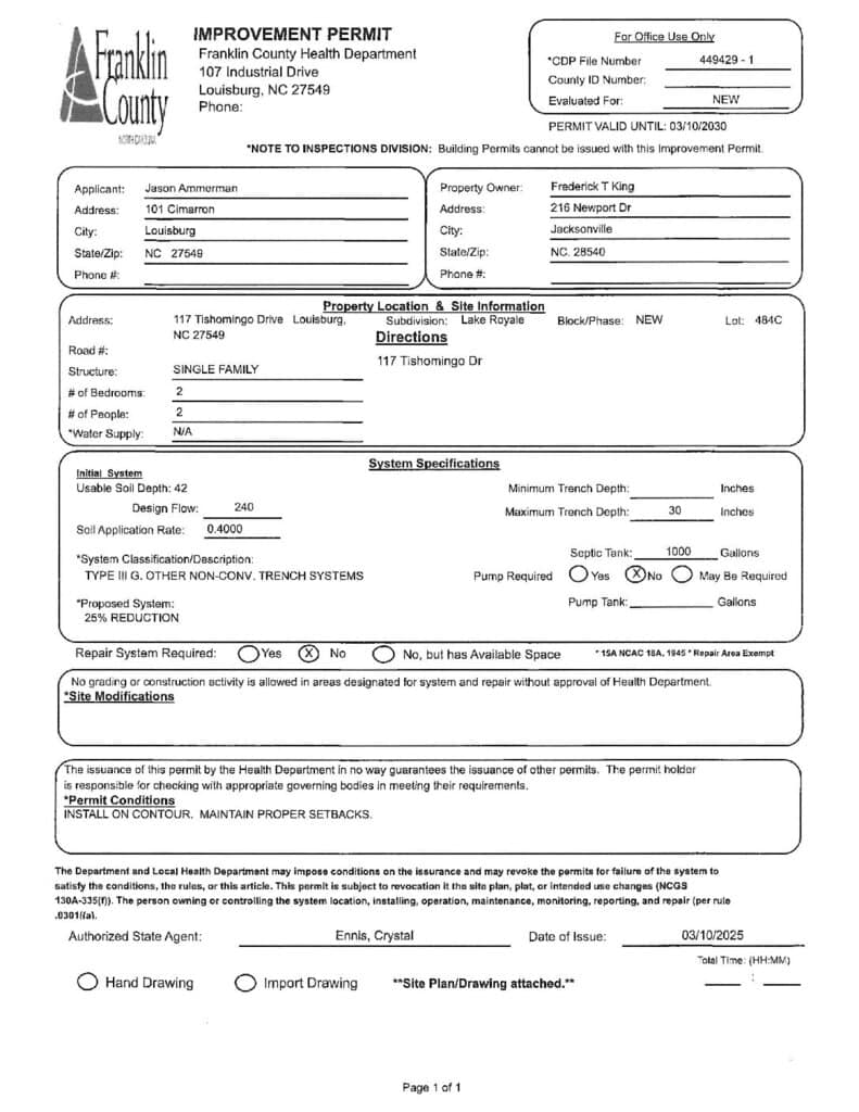 Gorgeous Lot at Coveted Lake Royale – Owner FInancing COnsidered, Imagine a pristine parcel nestled in the highly sought-after community of Lake Royale—a cleared and meticulously maintained lot just one block from shimmering lake water, close to the main gate, with a professionally installed water tap and a discrete, fully integrated driveway pipe. Every detail has been thoughtfully executed to make your transition seamless. Trees have been neatly trimmed, and with zoning and septic permits already secured for a 2-bedroom septic. This lot offers immediate potential for building your parking your RV and start to enjoy tranquility and a peaceful setting with lush green space in the rear of the property…Your Gateway to an Active and Luxurious Lifestyle – This lot isn’t just a piece of land—it’s your ticket to a vibrant lifestyle. Picture yourself effortlessly hooking up your mobile home, inviting your boat and jet ski for spontaneous lake adventures, and fully immersing in the many lavish amenities Lake Royale has to offer. Enjoy the security of a gated community complete with a private police force, indulge in the serene ambiance provided by boating, beaches, and marinas, and spend your days exploring a 3.25-mile stretch of pristine lakefront. Whether you’re an avid golfer drawn to a professionally designed 18-hole course, a food enthusiast eager for gourmet experiences at the on-site restaurant, or someone who loves staying active with volleyball, tennis, shuffleboard, miniature golf, pickle ball, and basketball—the possibilities are endless for all ages…An Investment in Comfort, Convenience, and Community This exceptional lot is not only a sound investment but a canvas for your ideal lifestyle. Every element—from the pre-installed utilities to the thoughtfully obtained permits—has been designed to simplify your journey to leisure living within one of the region’s most exclusive communities. It invites you to immediately embrace a carefree lifestyle, where daily living effortlessly transitions into adventures on serene waters and quality leisure time with family and friends.