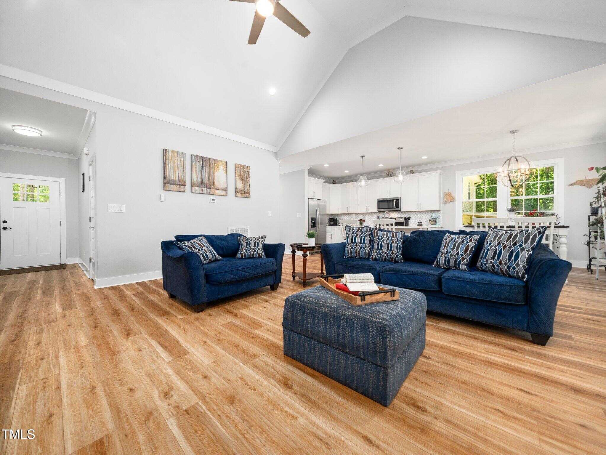 Resort-style living awaits in this beautifully crafted 2023 Craftsman home, nestled in one of the area’s most scenic lake communities. This 3BR/3BA home offers an open-concept design with vaulted ceilings, gas fireplace, and abundant natural light. The gourmet kitchen features quartz countertops, large island, stainless steel appliances, and soft-close cabinetry.