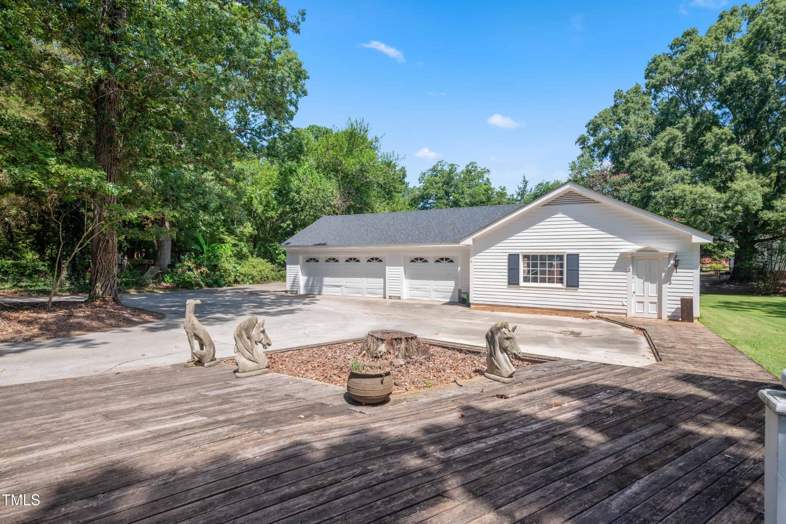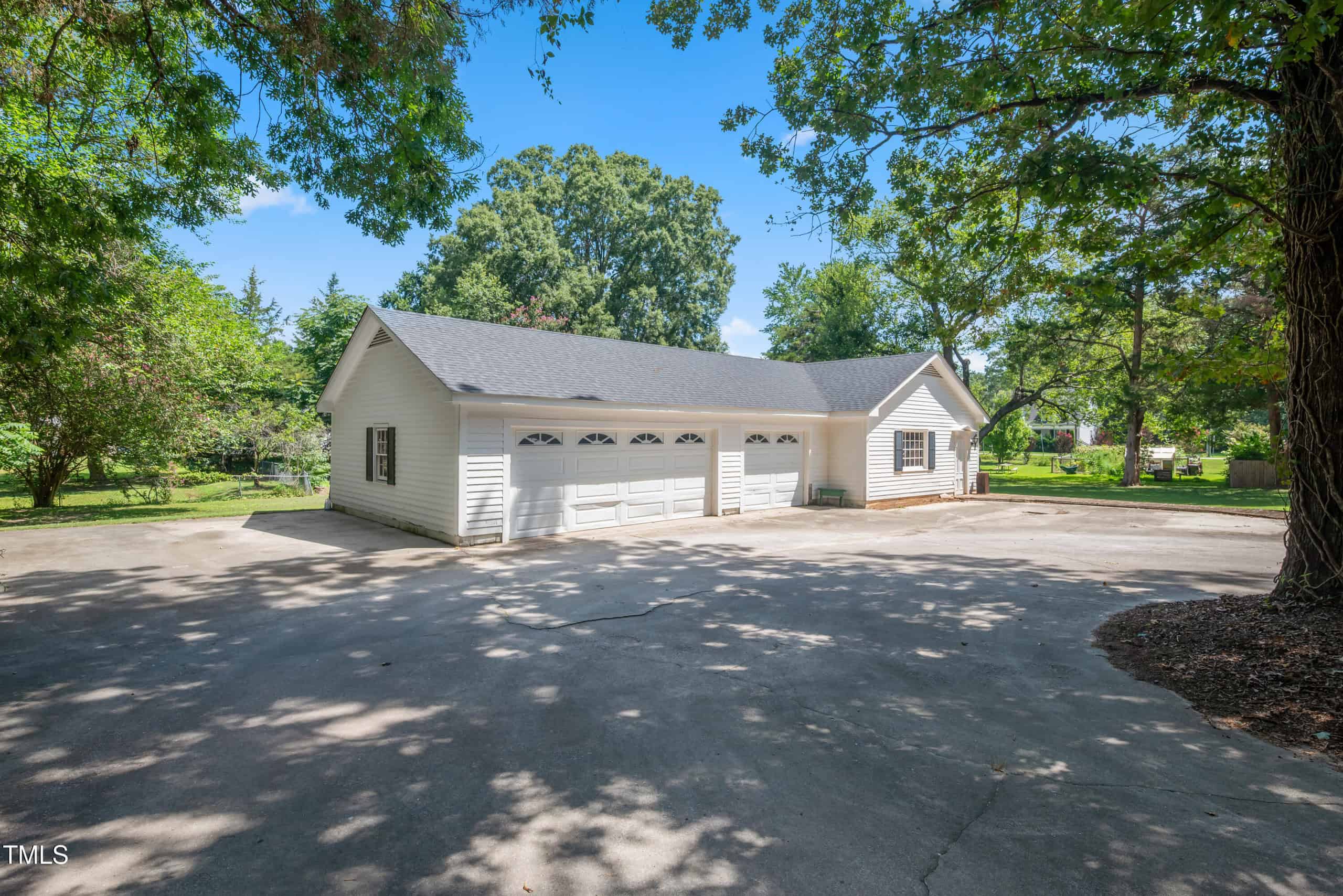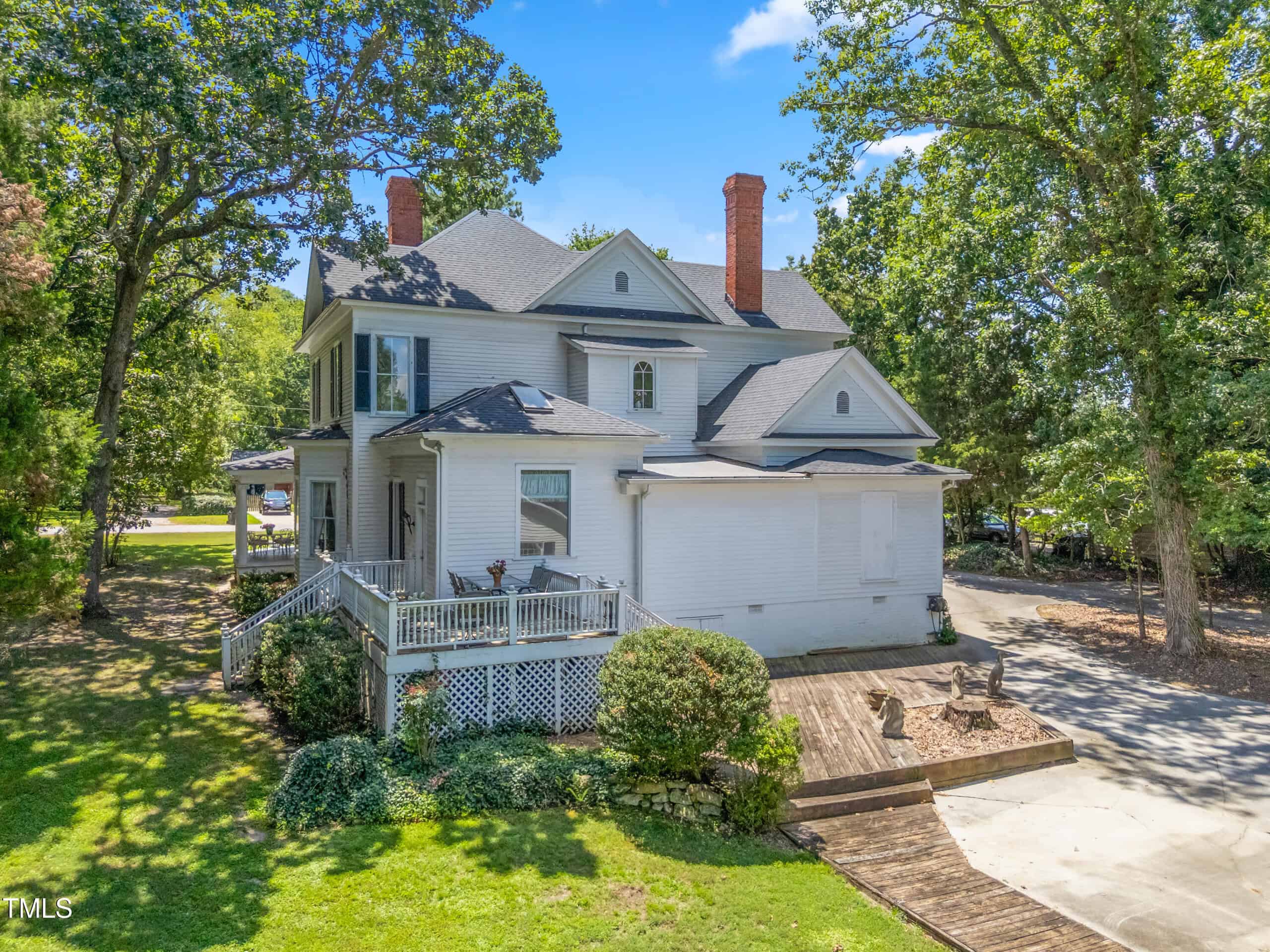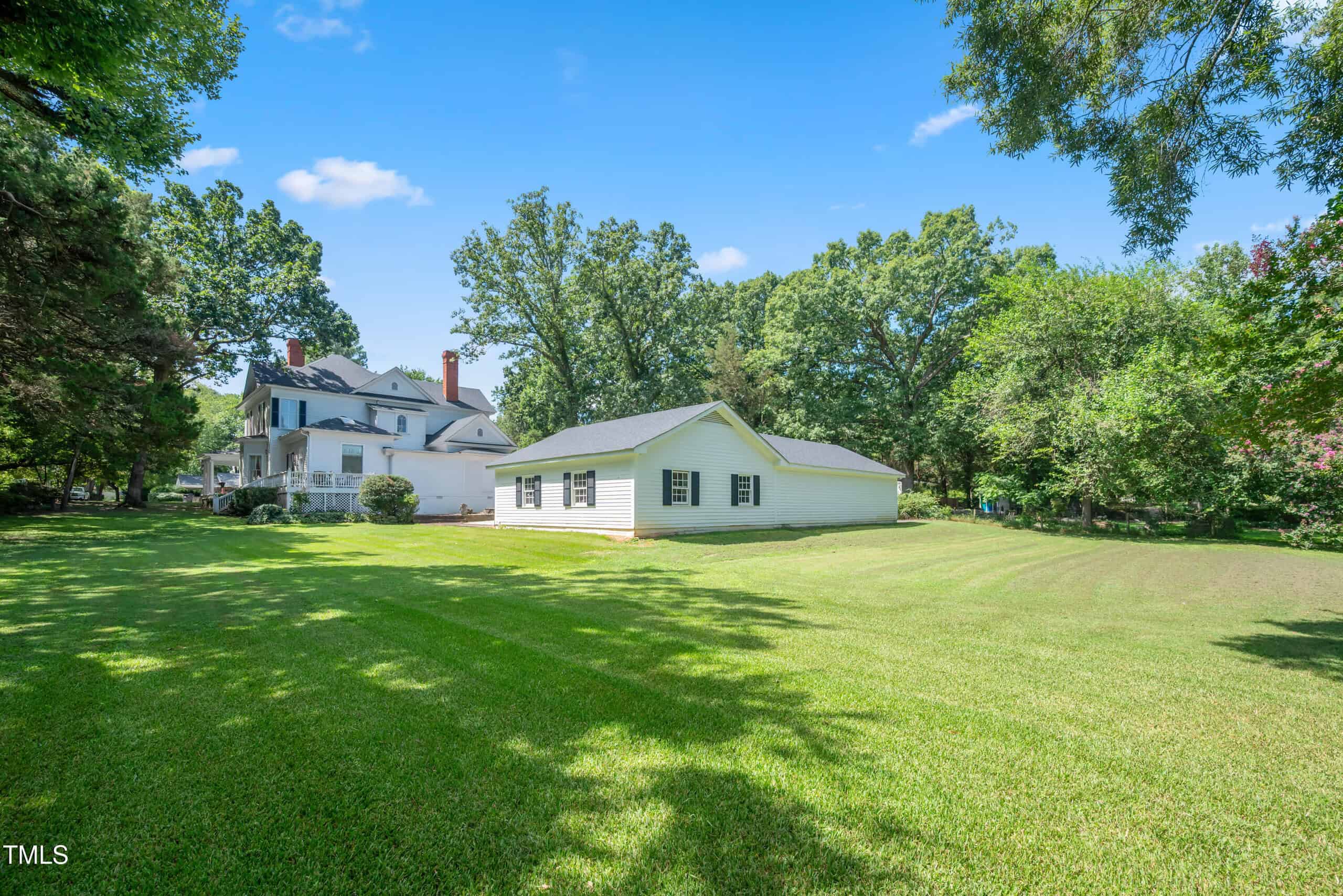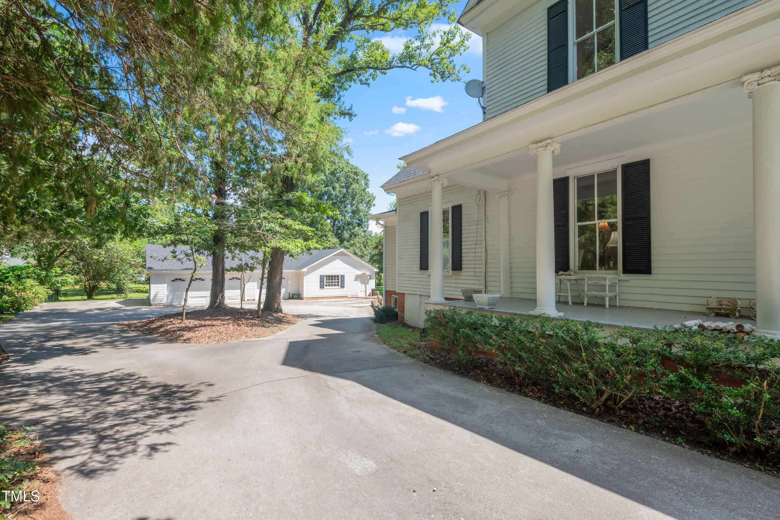 A detached three-car garage with a workshop provides ample space for vehicles, projects, or storage. All accessible with a huge driveway that provides easy access. With its preserved architectural charm and modern amenities, this home blends historic allure with contemporary functionality, making it a rare find in vibrant Youngsville. Experience this captivating piece of history!