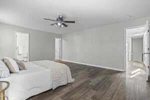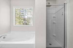The front flex room flows into an open living room and eat in kitchen so you can cook, hang out, and host without feeling cramped. Upstairs you will find a bright loft, two secondary bedrooms, and a generous primary suite with soaking tub, separate shower, and walk in closet.