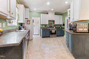Charming ranch-style modular home built in 2010, offering 3 bedrooms and 2 full baths. Step inside to find 9-ft ceilings, a spacious primary suite with double closets and a large bath, plus a roomy kitchen with plenty of cabinet space. All appliances conveyโincluding washer and dryer!
