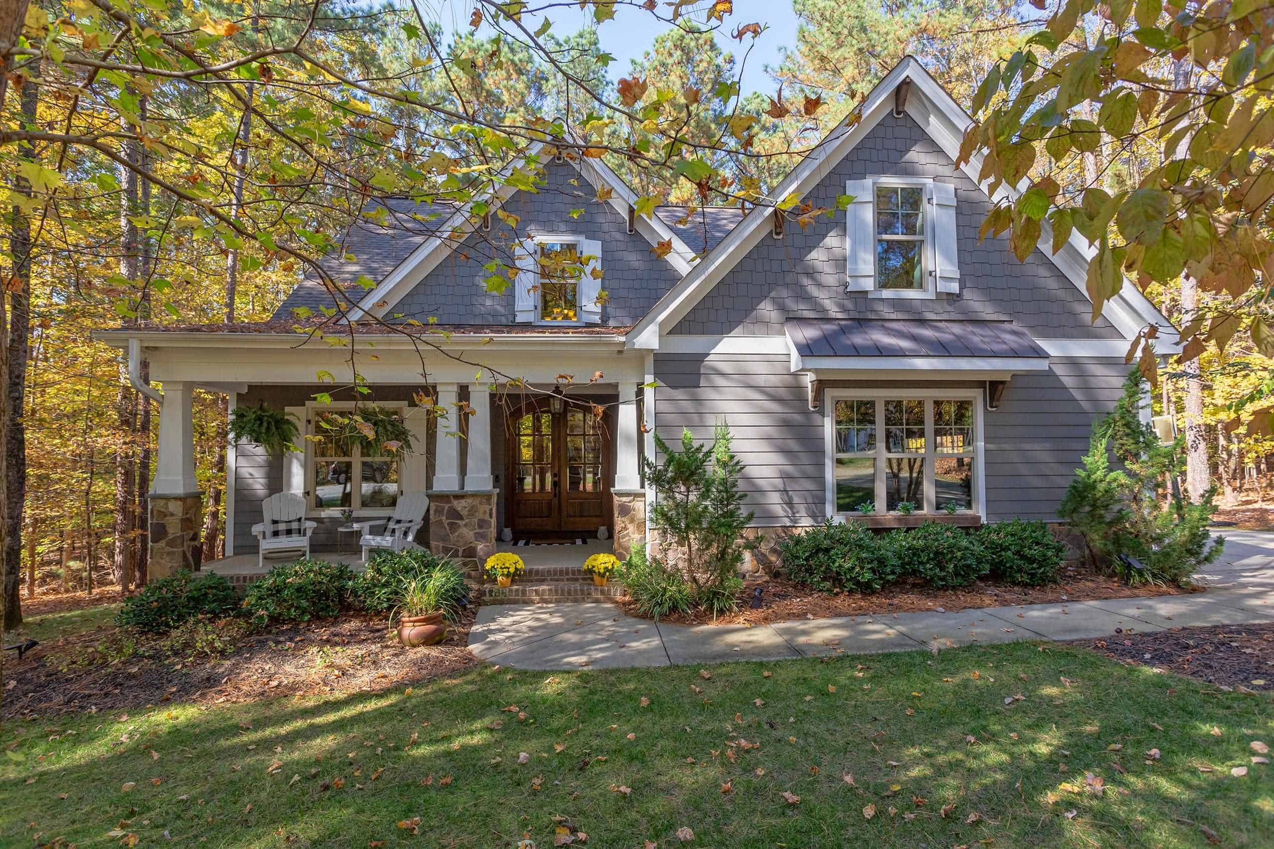 New Interior Paint. Charming Custom Craftsman with four bedrooms and three full bathrooms. Master and guest room with adjacent bathroom on the main level and two spacious secondary bedrooms on the upper level. Two bonus rooms give lots of space to entertain, play or hang out in comfort. Use one as a media room and the other as a giant office, craft room, playroom or whatever you can imagine. The fenced flat backyard, screened porch, rocking chair front porch & large play structure will encourage everyone to the amazing North Carolina weather. Upscale features include: site finished oak hardwood floors, mahogany front door, dining room w/ coffered ceiling, stacked stone fireplace, unique granite counter tops, & soaring ceilings. Other features include: oversized two car garage with heavy duty above car shelving, huge master closet & rustic barn doors adorn the pantry & master bathroom. Bonus room #1 has new carpet, bonus #2 is plumbed to add a wet bar or a kitchenette. Community pool & playground. Refrigerator & basketball goal convey.