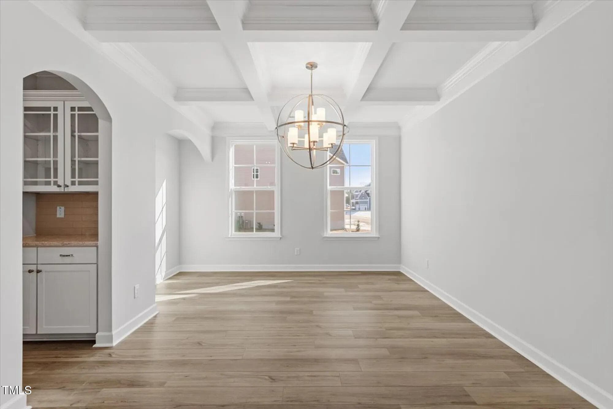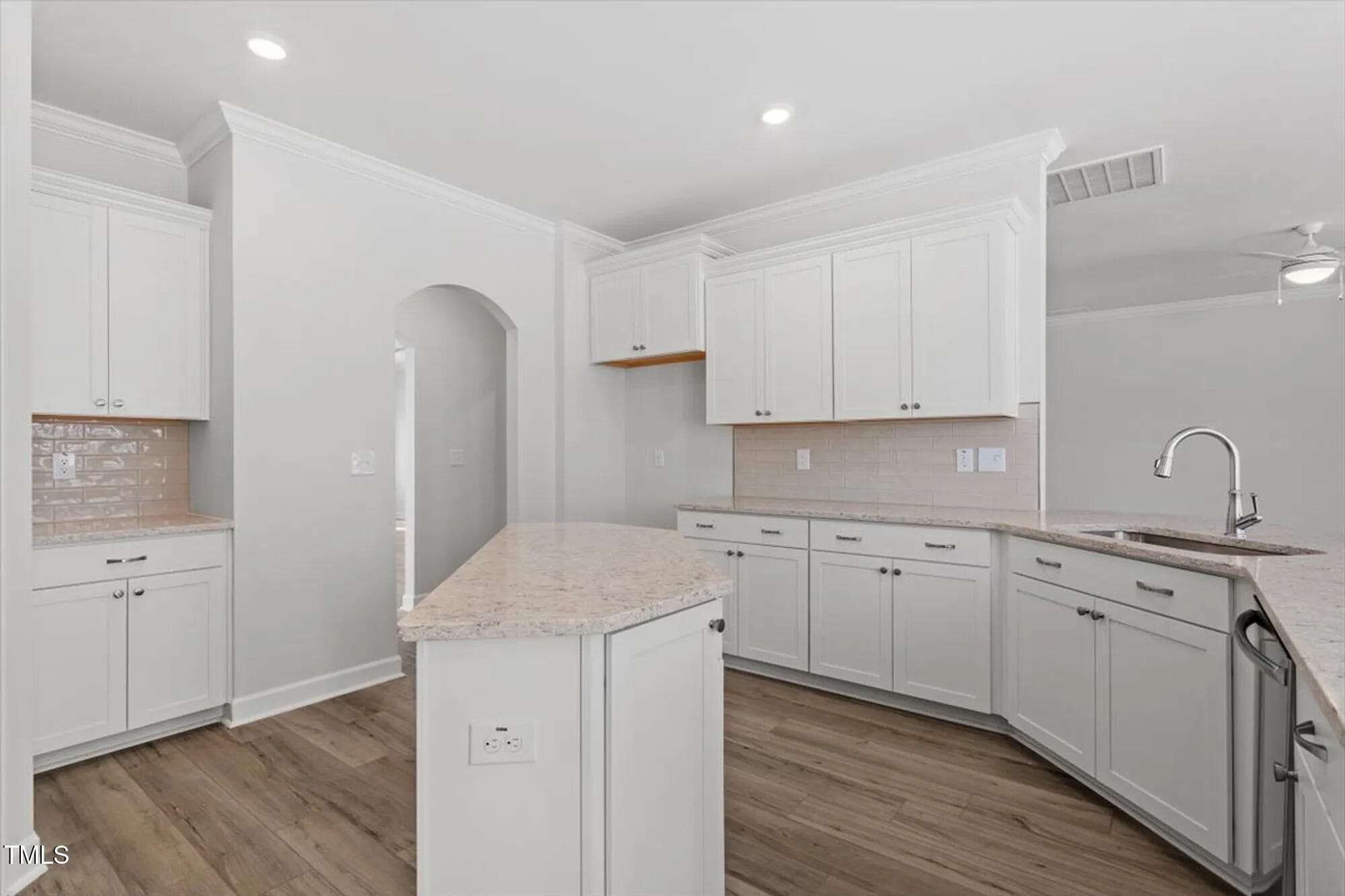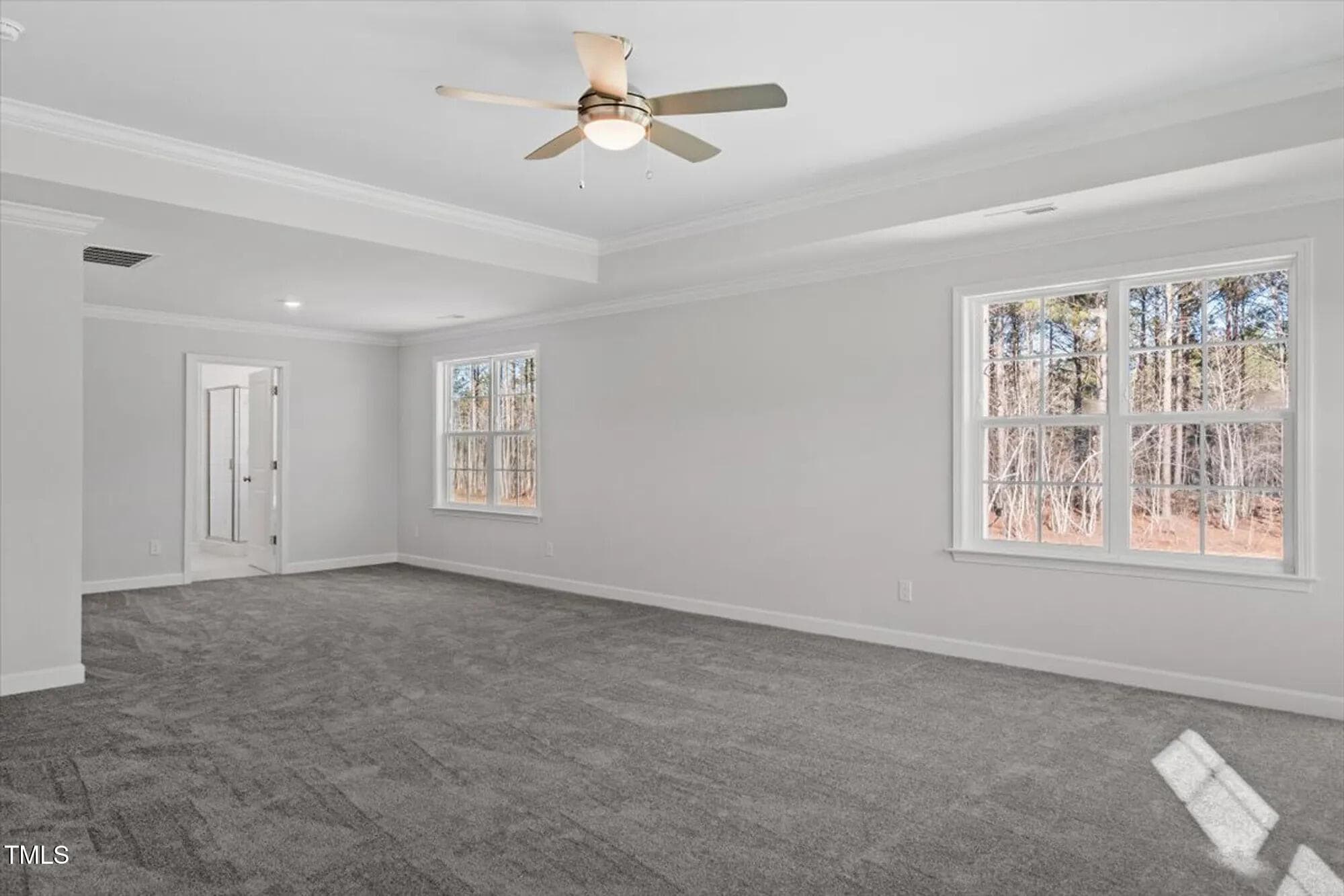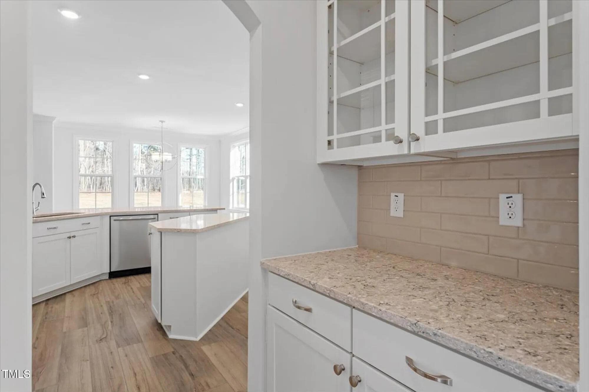 WELCOME TO MAISON RIDGE! Main Level Guest Bedroom! ”Driftwood” LVP Flooring in Open Areas Downstairs! Kitchen: Gas Cooktop & Built-in Oven/Microwave Combo, Custom White Cabinets w/Soft Close Feature, Center Island, ”Pietra” Quartz Countertops, Stylish Tile Backsplash, Butler’s Pantry & Crown! Dining Room: Arched Entry & Coffered Ceiling w/Crown! Primary Bed: offers Sitting Room, Tray Ceiling w/Crown, Plush Carpet & Ceiling Fan! Primary Bath: Tile Flooring, Separate Vanities w/Quartz Countertops, Tiled Shower, Freestanding Soaking Tub, Dual Walk in Closets & Linen Closet! Great Room: w/Arched Entry, Gas Log Fireplace, Crown, Lots of Windows, Ceiling Fan & Access to Rear Porch! Home Office w/French Doors! Enormous Rear Yard Backing to Wooded Buffer!