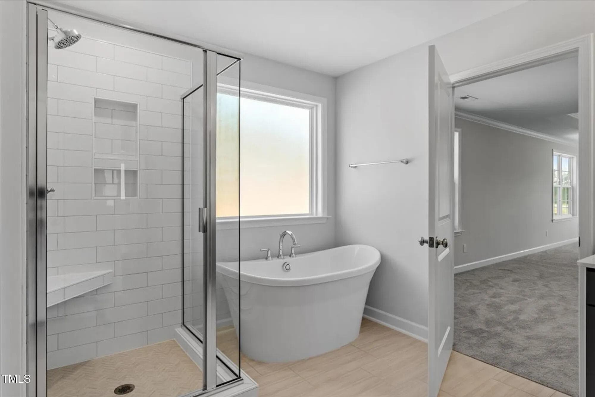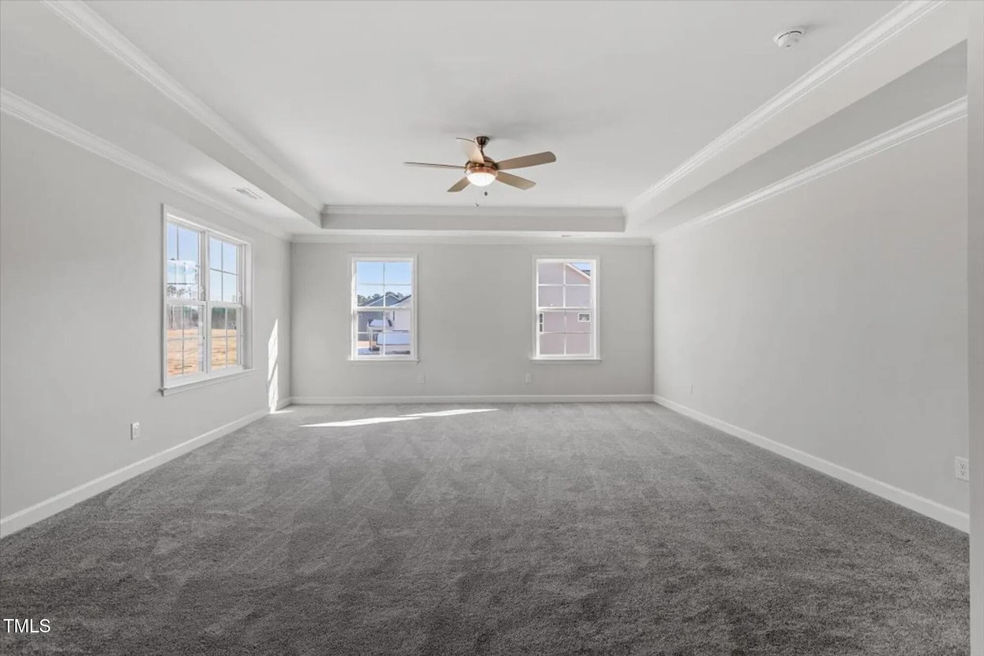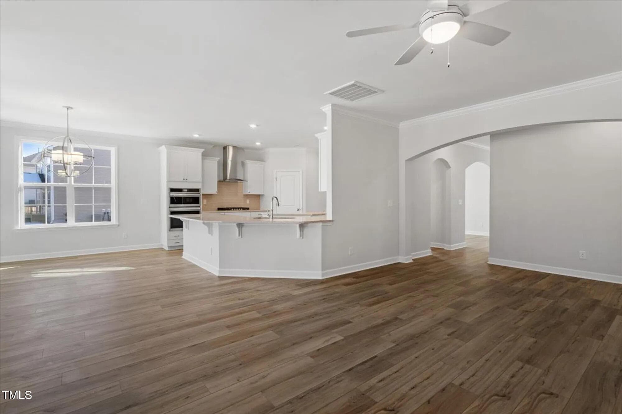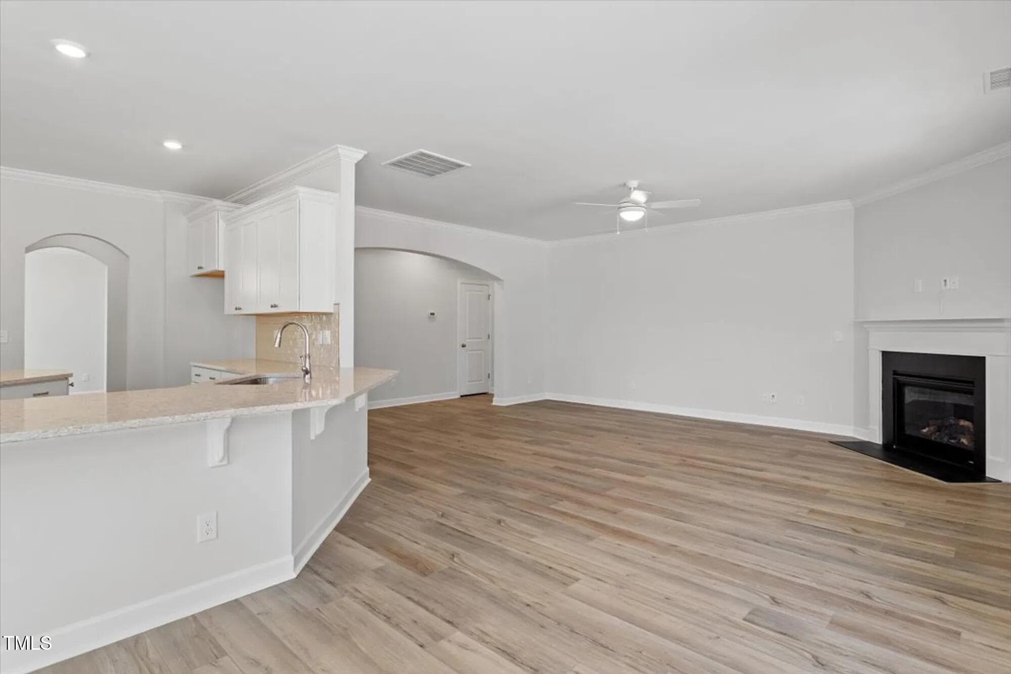 WELCOME TO MAISON RIDGE! Main Level Guest Bedroom! ”Driftwood” LVP Flooring in Open Areas Downstairs! Kitchen: Gas Cooktop & Built-in Oven/Microwave Combo, Custom White Cabinets w/Soft Close Feature, Center Island, ”Pietra” Quartz Countertops, Stylish Tile Backsplash, Butler’s Pantry & Crown! Dining Room: Arched Entry & Coffered Ceiling w/Crown! Primary Bed: offers Sitting Room, Tray Ceiling w/Crown, Plush Carpet & Ceiling Fan! Primary Bath: Tile Flooring, Separate Vanities w/Quartz Countertops, Tiled Shower, Freestanding Soaking Tub, Dual Walk in Closets & Linen Closet! Great Room: w/Arched Entry, Gas Log Fireplace, Crown, Lots of Windows, Ceiling Fan & Access to Rear Porch! Home Office w/French Doors! Enormous Rear Yard Backing to Wooded Buffer!