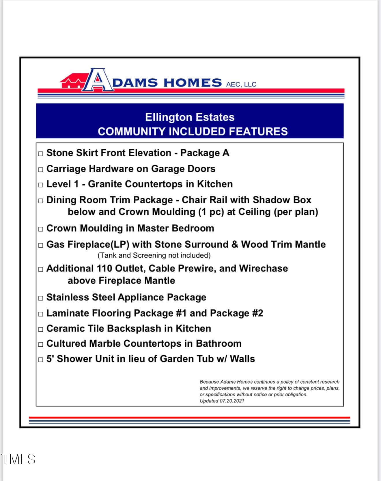 Model Home Hours: Mon-Sat 11am-5pm, Sun 1pm-5pm. Walk-Ins Welcome! *Estimated to finish in Spring/Summer 2025* Welcome to Ellington Estates, a charming new-build community that offers both unparalleled privacy and luxurious living. Tucked away along a secluded no-access road, Ellington Estates features just 37 meticulously crafted homes, each set on a generously sized lot to provide ample space and serene surroundings. Discover a perfect balance of elegance and seclusion at Ellington Estates, where refined living meets peaceful serenity. Stunning 4-bedroom, 2.5-bath home on a spacious 0.72-acre lot in a quiet cul-de-sac. This home features a formal dining room with elegant chair rail shadow box detailing and a coffered ceiling, creating a sophisticated atmosphere. The open-concept living area is perfect for both relaxing and entertaining, and an optional office with stylish glass double doors offers a private, quiet workspace. The gourmet kitchen is a chef’s dream, with granite countertops, upgraded stainless steel appliances, and ample storage space. The luxurious primary suite includes a tray ceiling and a spa-like en suite bathroom with a 5-foot tile shower, providing a serene retreat. Outside, enjoy the expansive 16×14 covered patio—ideal for outdoor dining, lounging, or entertaining—while overlooking the large, private lot. This home blends modern design, quality finishes, and plenty of space, both inside and out, for a lifestyle of comfort and luxury.