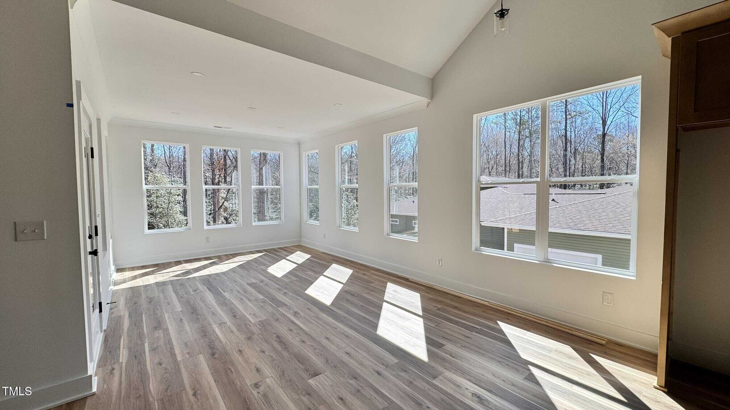 The sunroom, just off the kitchen, offers stunning views of the expansive, wooded backyard. Inside, enjoy high-end upgrades including tile bathrooms, stainless steel appliances, upgraded honey wheat shaker cabinetry, and premium LVP flooring throughout.