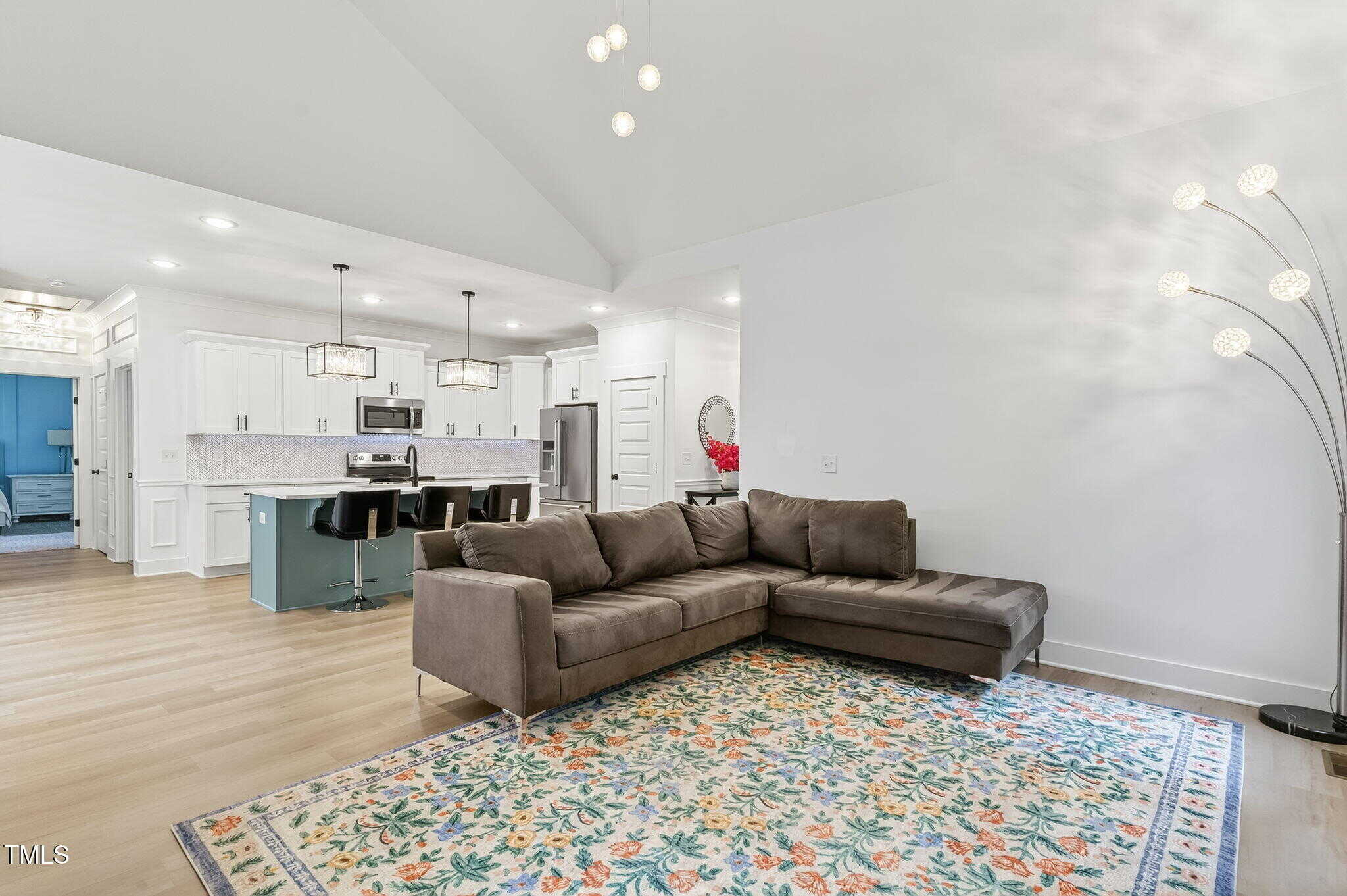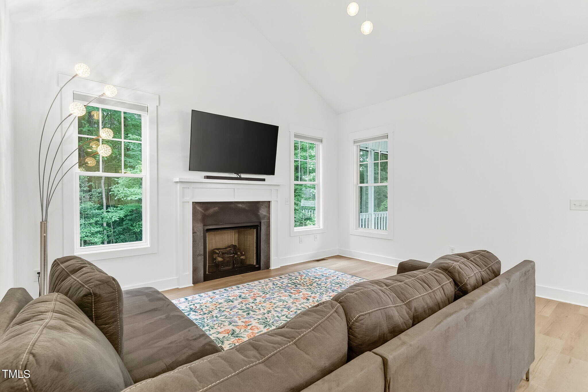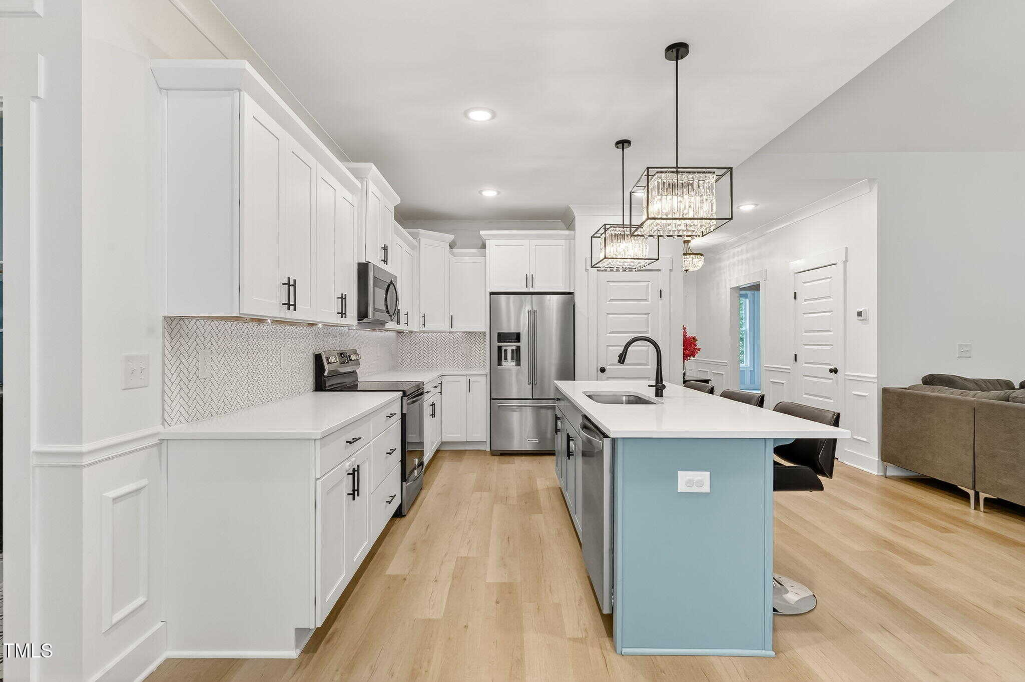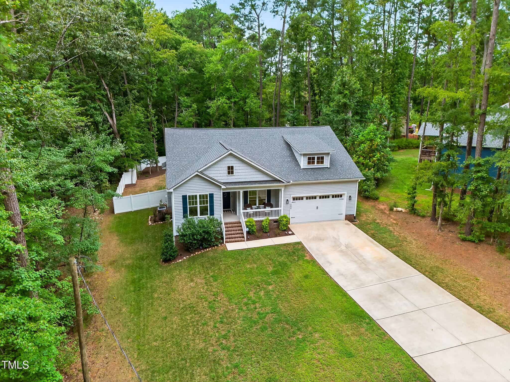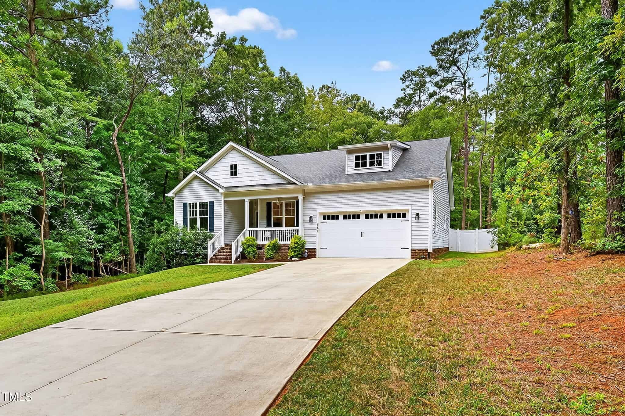 121 Buffalo Dr: where custom character meets craftsman charm. Tucked away just 1 block from the lake, this home has all you can imagine. Step into this open floor plan with vaulted ceilings, quartz countertops, and soft close cabinets throughout. The eat-in kitchen welcomes you with natural lighting and custom picture-frame molding. The primary bedroom welcomes you with tall ceilings, a walk-in closet with custom built-ins, and a stunning accent wall. The primary bathroom is a true retreat with a full tile shower, and a chandelier + accent wall combo that you’ll have to see to believe. Both secondary bedrooms host oversized windows and excess closet space. The screened-in porch and fenced backyard are perfect for enjoying the lake life. Lake Royale is home to amenities galore: a free 18-hole golf course, community pool, beach access, pickleball, basketball, and so much more! 121 Buffalo Dr in Lake Royale is where you can truly have it all.