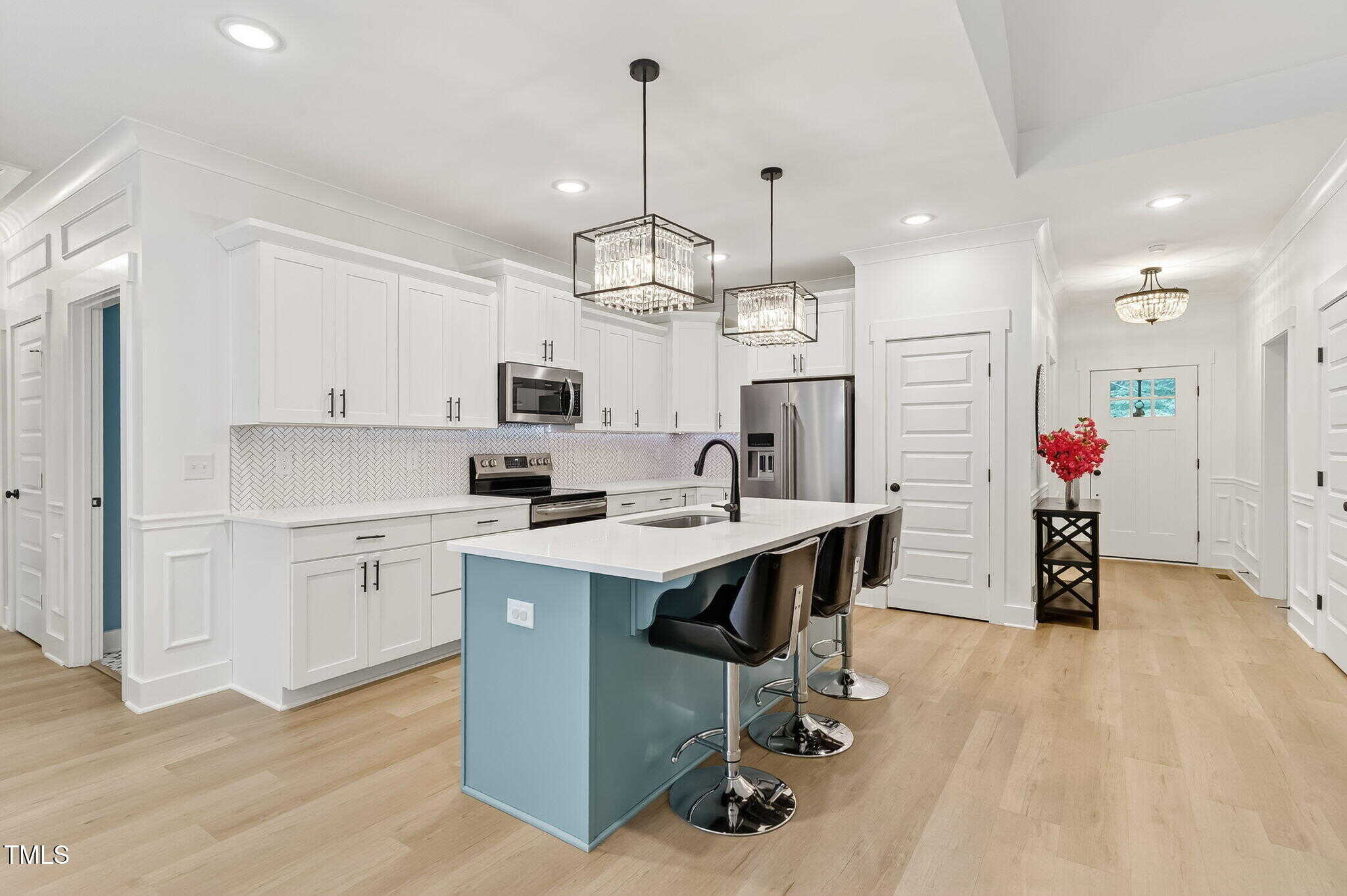 121 Buffalo Dr: where custom character meets craftsman charm. Tucked away just 1 block from the lake, this home has all you can imagine. Step into this open floor plan with vaulted ceilings, quartz countertops, and soft close cabinets throughout. The eat-in kitchen welcomes you with natural lighting and custom picture-frame molding.