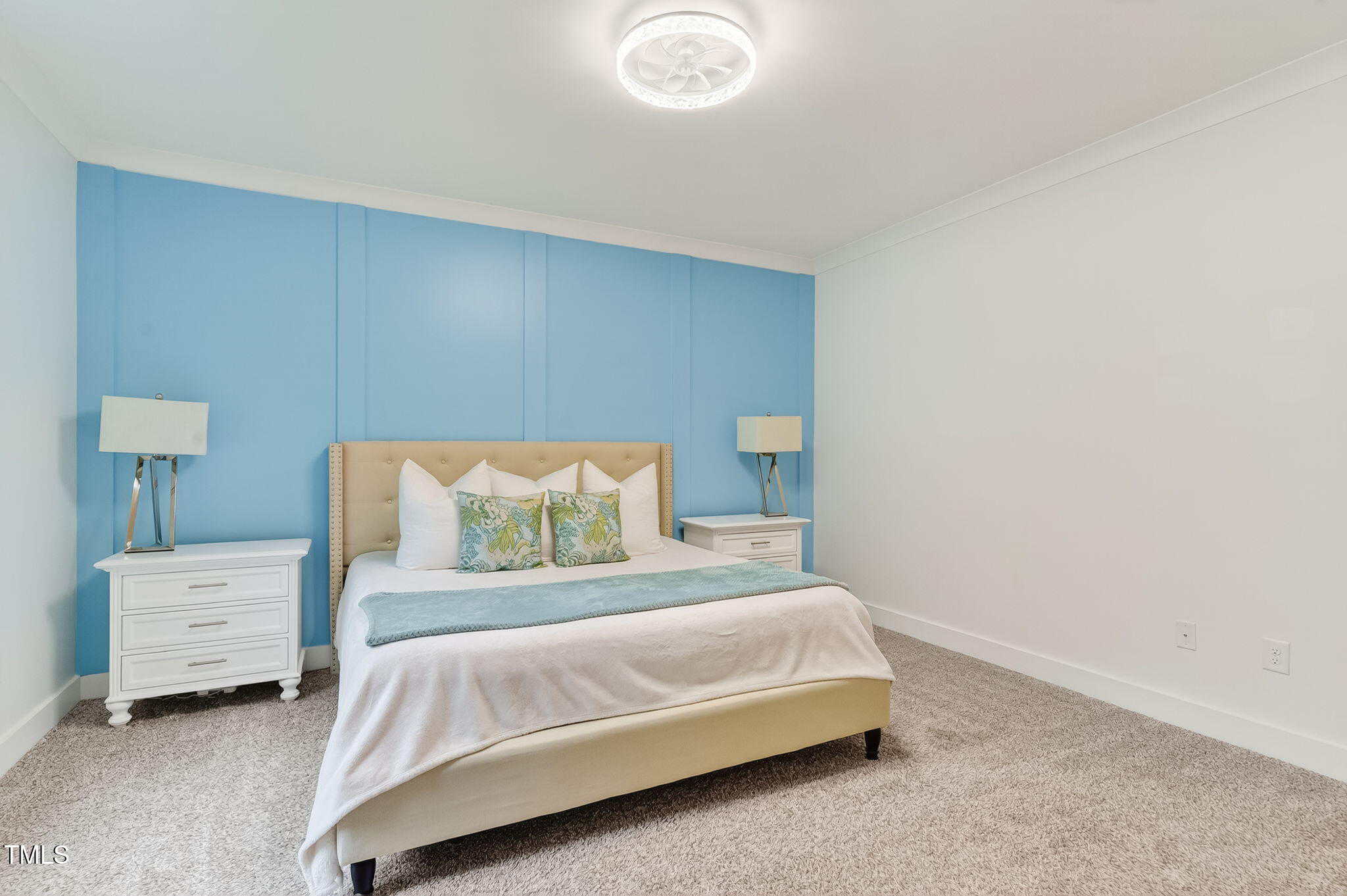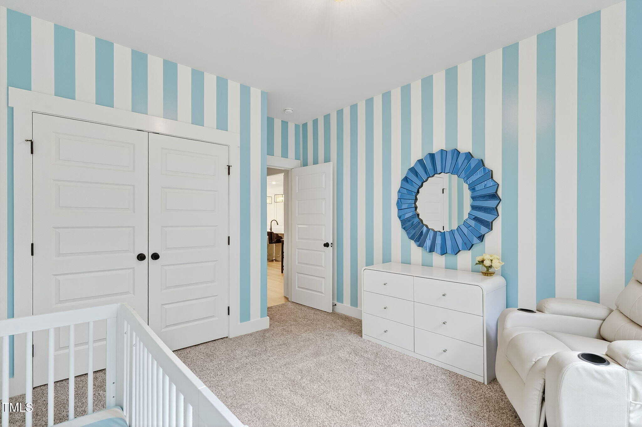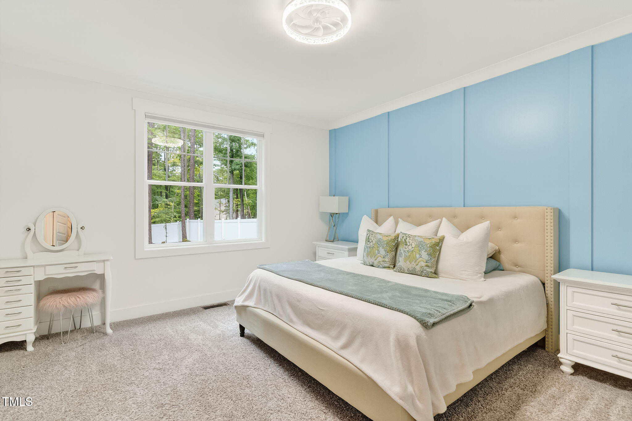 The primary bedroom welcomes you with tall ceilings, a walk-in closet with custom built-ins, and a stunning accent wall. The primary bathroom is a true retreat with a full tile shower, and a chandelier + accent wall combo that you’ll have to see to believe. Both secondary bedrooms host oversized windows and excess closet space.