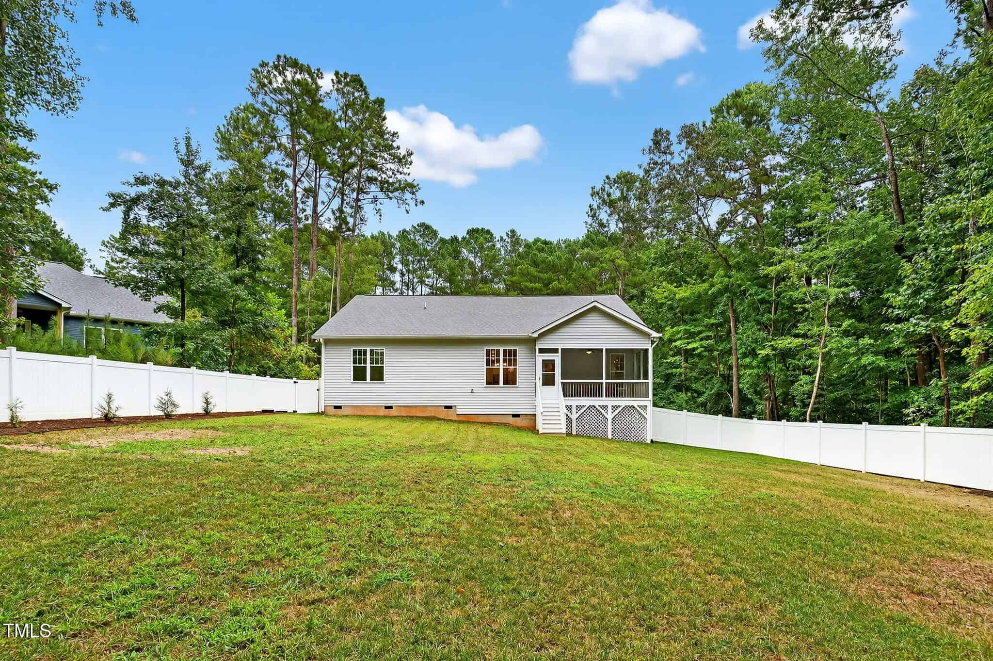 The screened-in porch and fenced backyard are perfect for enjoying the lake life. Lake Royale is home to amenities galore: a free 18-hole golf course, community pool, beach access, pickleball, basketball, and so much more! 121 Buffalo Dr in Lake Royale is where you can truly have it all.