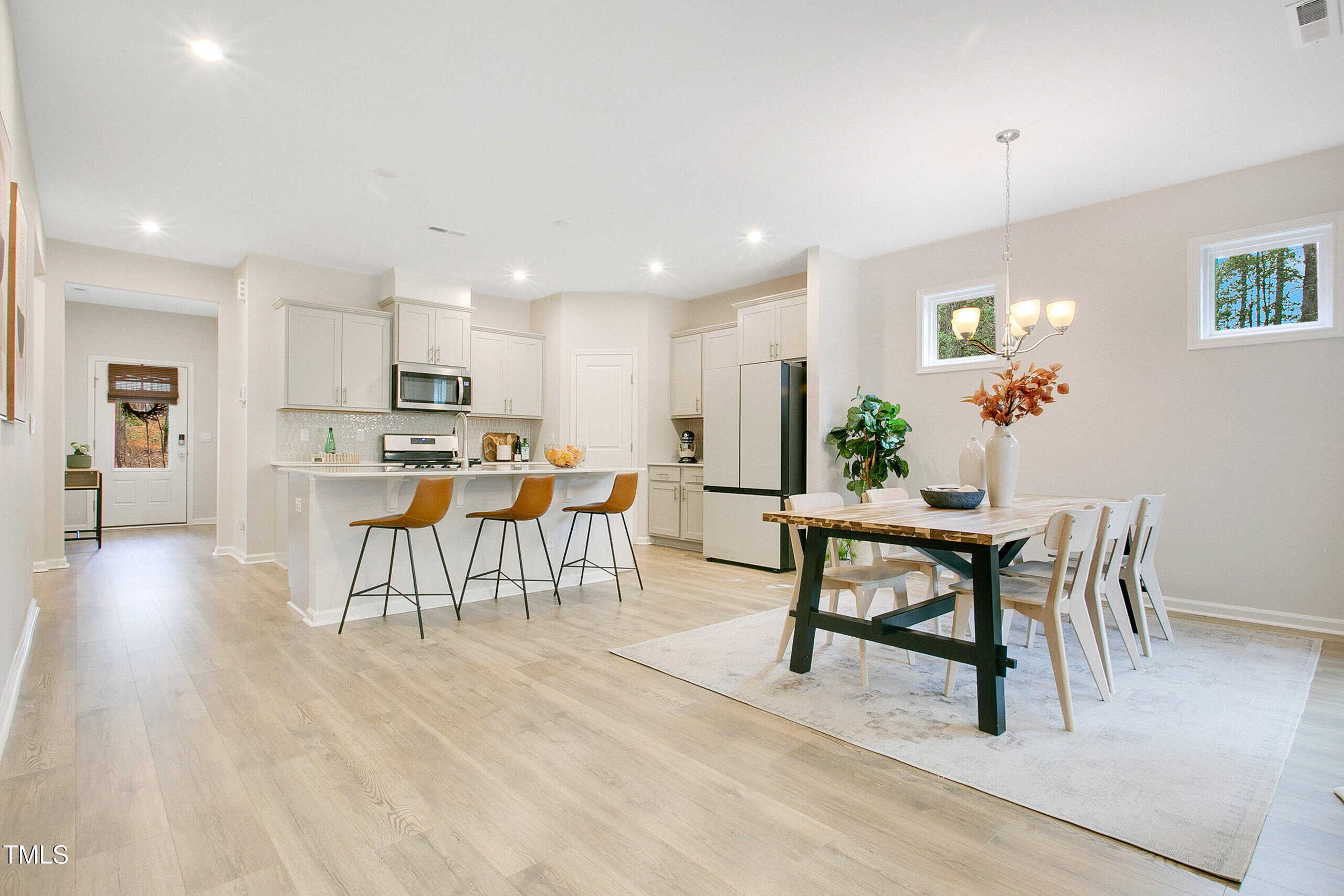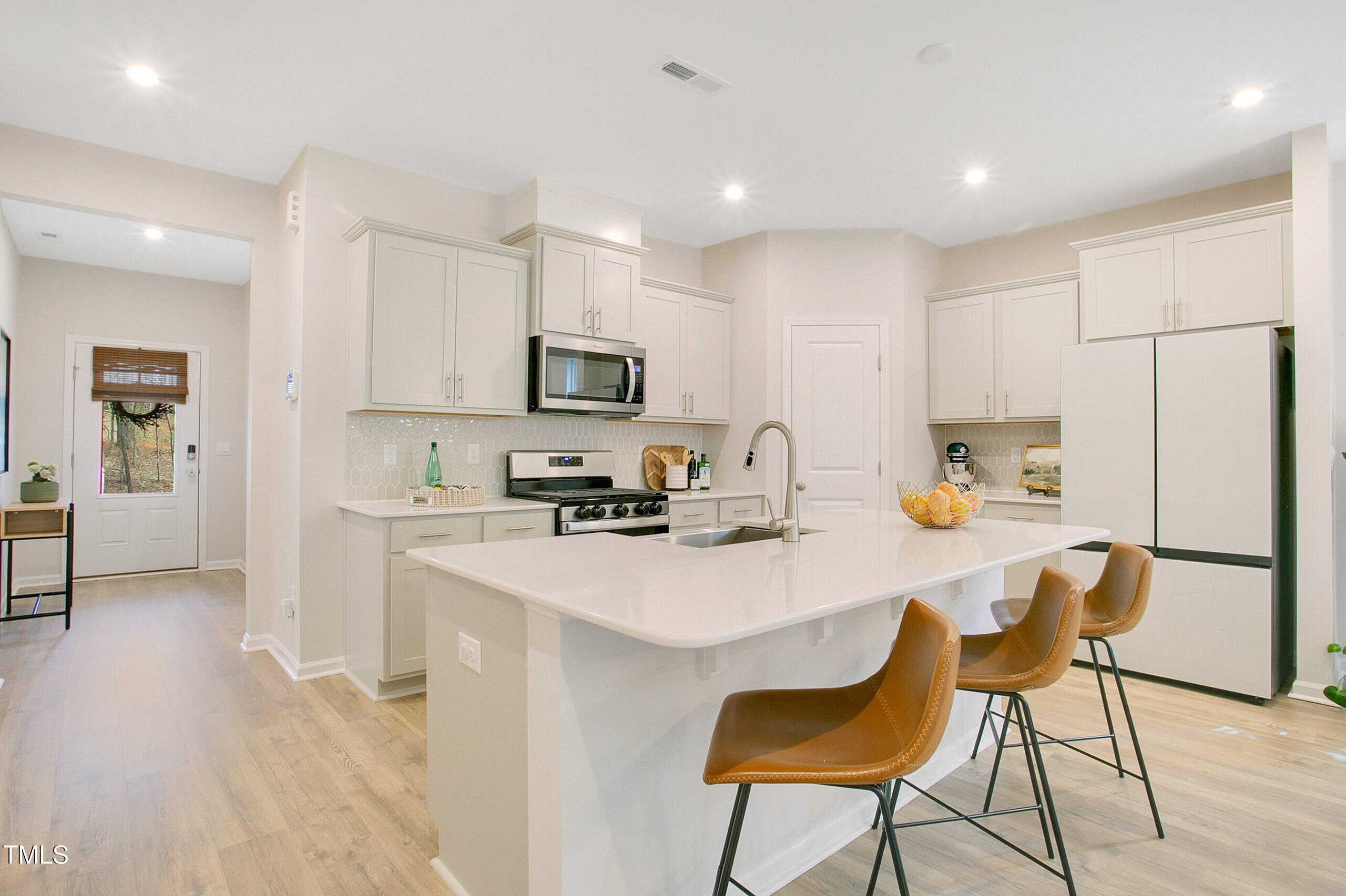 Freshly painted walls & trim, and professionally cleaned carpets will allow you to move right in and just relax and enjoy. The open concept floor plan makes entertaining a breeze. The beautiful Kitchen features Quartz counters, oversized island, cabinets galore and a walk-in Pantry. Stunning Samsung Bespoke French Door Refrigerator may convey with an acceptable offer. The Kitchen overlooks the Family Rm, Dining Rm & a lovely Screened Porch. The porch is the perfect place to relax, unwind and enjoy the peace and quiet after a long day. It offers privacy and a gorgeous, wooded backdrop.