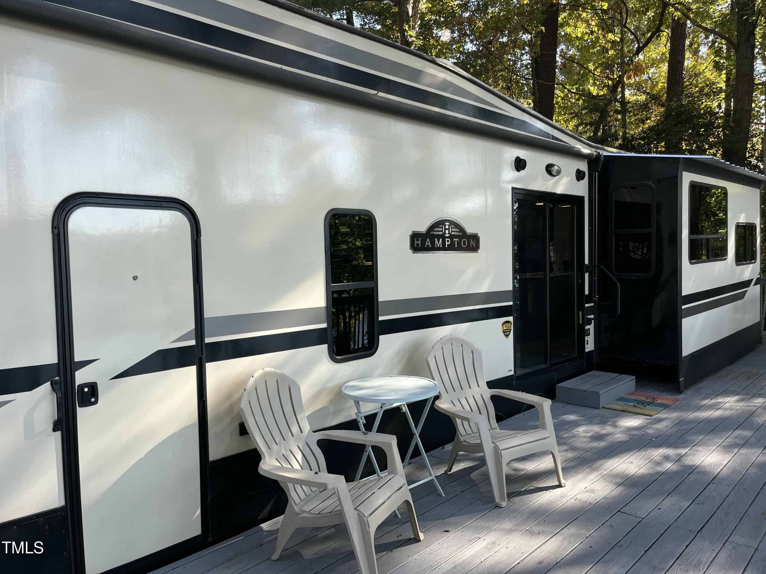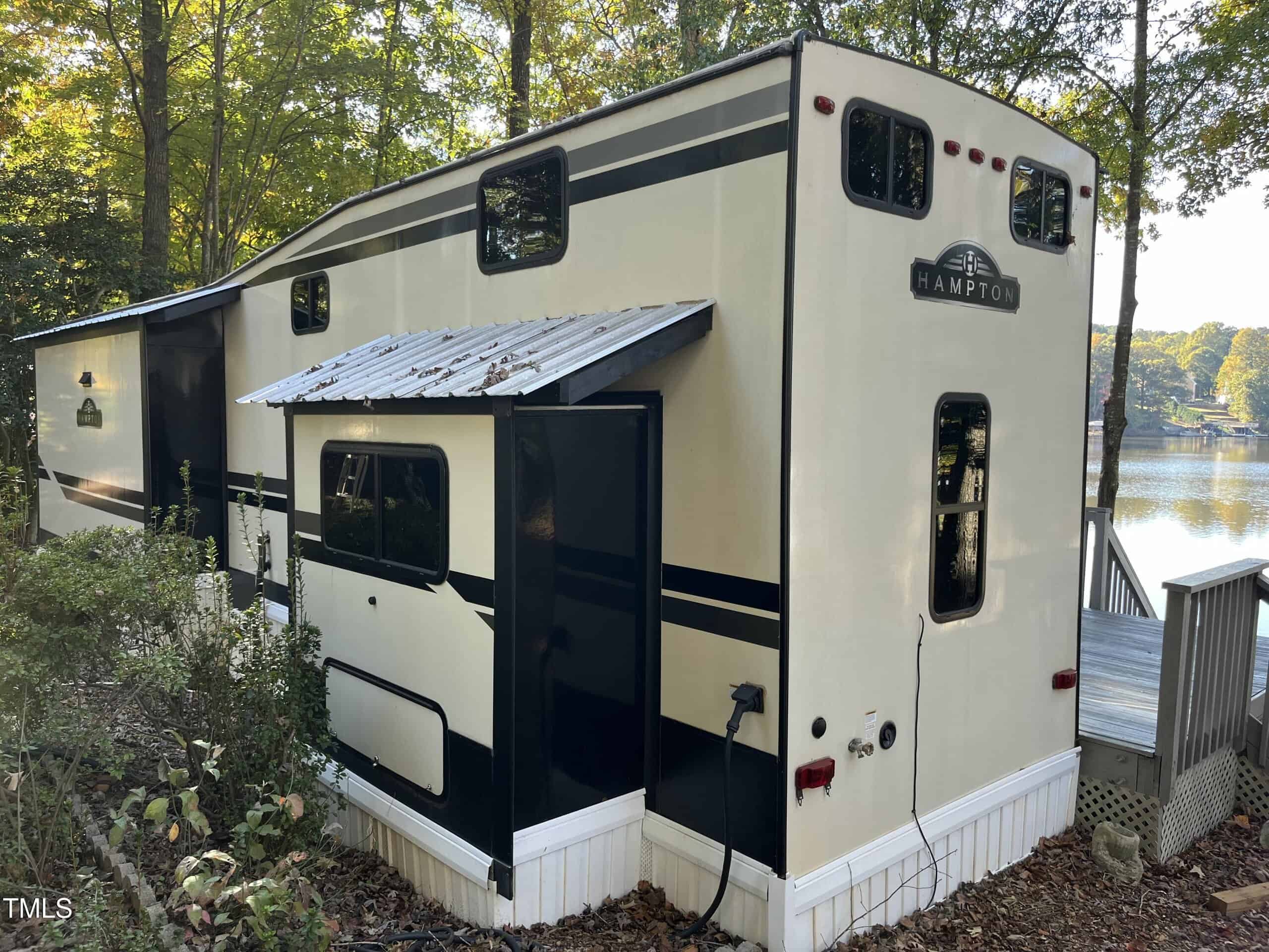 Waterfront Camp Lot with an incredible view. This beautiful waterfront camp lot features a 37-foot Destination Camper with a spacious 12×30 deck overlooking the lake. Inside, you’ll find a king-size bed, a loft, a washer/dryer, and a cozy fireplace. The camper is fully connected to water, electricity, and septic. Located in Lake Royale, a gated resort community, you’ll enjoy access to a stunning 345-acre lake, two beaches, an 18-hole golf course, a clubhouse, pavilion, pool, and plenty of sports facilities, including pickleball, tennis, basketball, and volleyball courts. Don’t miss out on this incredible opportunity to own a slice of paradise!