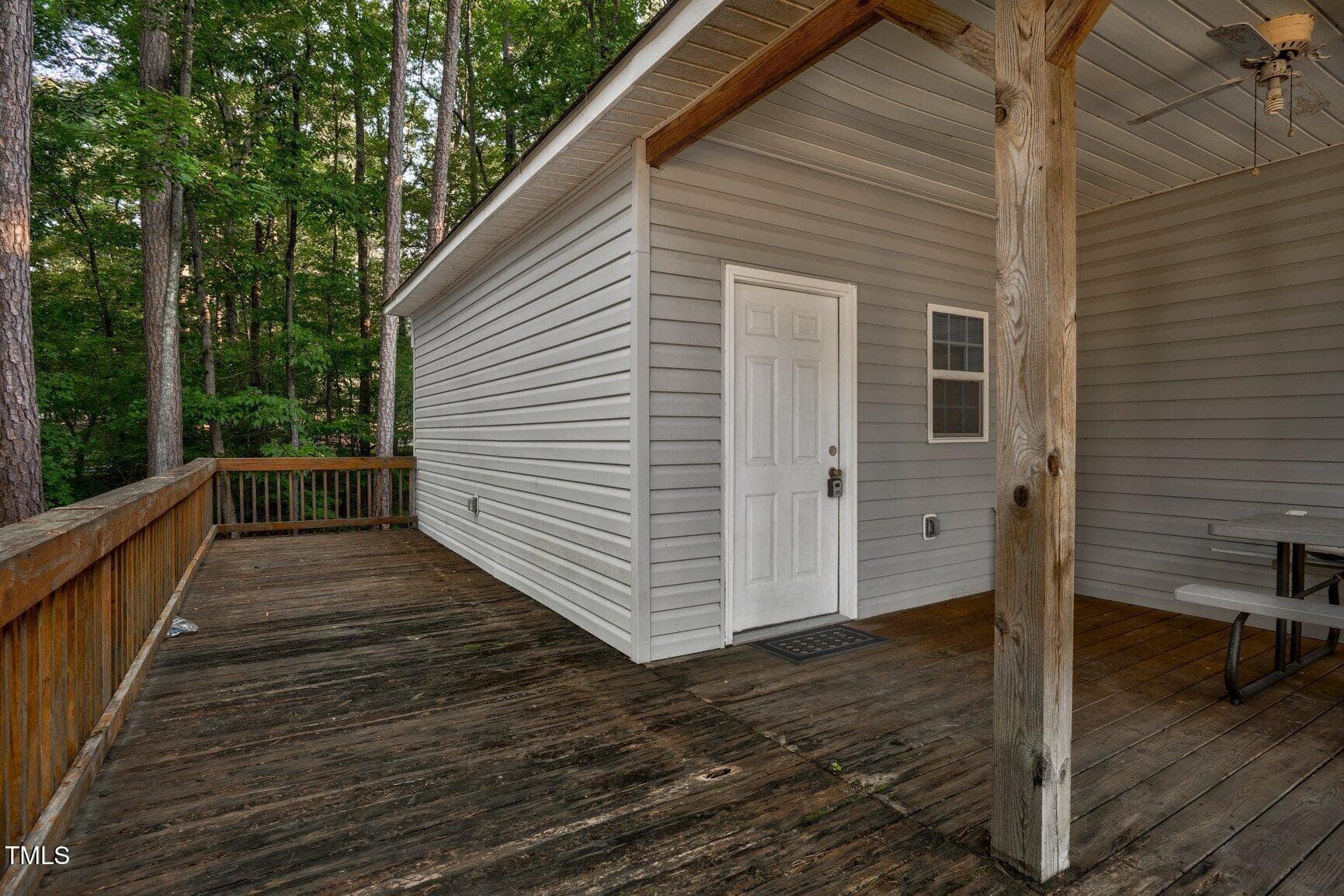 Welcome to Lake Royale! This .28-acre lot includes an enclosed camper with 2 bedrooms, 1 bath, kitchen, and living room—perfect for a weekend getaway or downsizing. Enjoy outdoor living with a spacious deck for entertaining and a covered porch for relaxing. Nestled among trees and just minutes from water access and fishing docks, this property offers the ideal blend of privacy and convenience. Seller financing is available! Lake Royale is a private, gated, golf cart-friendly community with endless amenities: tennis and pickleball courts, beach volleyball, putt-putt, basketball, community pool, laundry center, bathhouses, clubhouse, pavilion, playground, and exercise shelter. Experience the best of lake living in a secure, vibrant community!