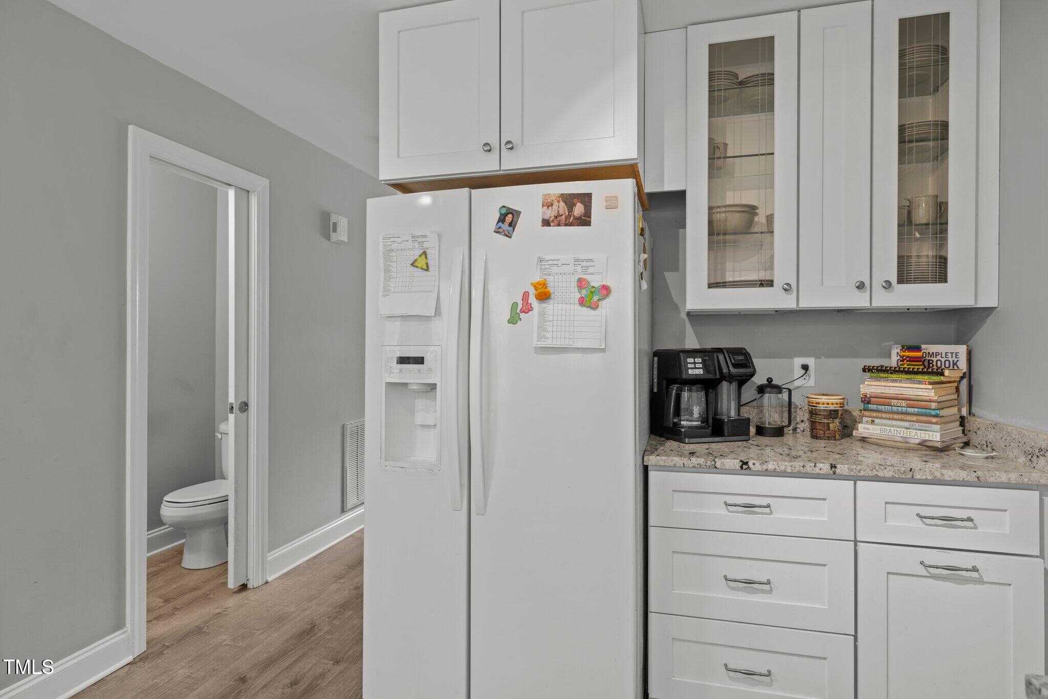 This property features a spacious, fenced yard of 1.77 acres at the end of the street, providing ample room for play and storage for your outdoor equipment. It includes a garden shed and workshop (unpermitted) as well. The home has been thoughtfully updated with new kitchen cabinets, granite countertops, a farmhouse sink, microwave, and dishwasher. The entire first floor has been upgraded with easy-to-clean LVP flooring, new light fixtures, a custom pantry, and a pocket door.