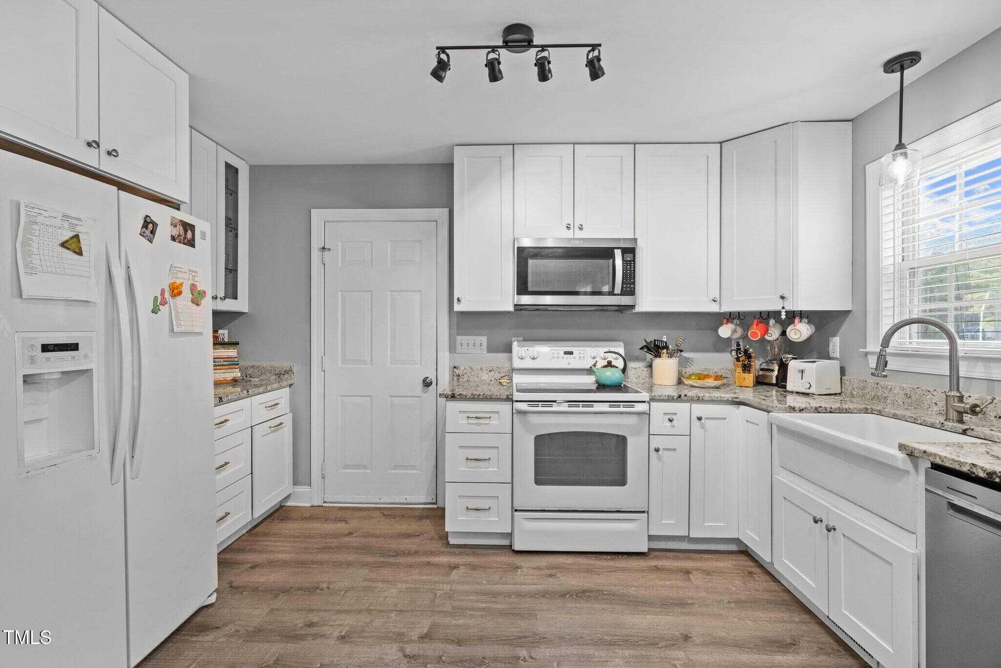 **Looking for a Large Lot and Private Location?** This property features a spacious, fenced yard of 1.77 acres at the end of the street, providing ample room for play and storage for your outdoor equipment. It includes a garden shed and workshop (unpermitted) as well. The home has been thoughtfully updated with new kitchen cabinets, granite countertops, a farmhouse sink, microwave, and dishwasher. The entire first floor has been upgraded with easy-to-clean LVP flooring, new light fixtures, a custom pantry, and a pocket door. Upstairs, you’ll find 3 bedrooms and a BONUS ROOM! There’s also a convenient laundry area. The primary suite boasts a cathedral ceiling, walk-in closet, garden tub, separate shower, and a private commode area. The garage has been enhanced with new windows, fresh paint, and shiplap wainscoting, making it a versatile space. It can be used as a play area for kids, a craft space, a home gym, or simply as a more appealing place to park your car or motorcycle. Concrete Parking Pad on the side as well. Get ready to entertain on your recently updated deck. Spencer’s Gate is located just 10-15 minutes from Wake Forest, Rolesville, Louisburg, and Bunn. The community features its own pool near the entrance and hosts several events each year, fostering an active neighborhood atmosphere. Home geographically qualifies for 100% USDA Financing