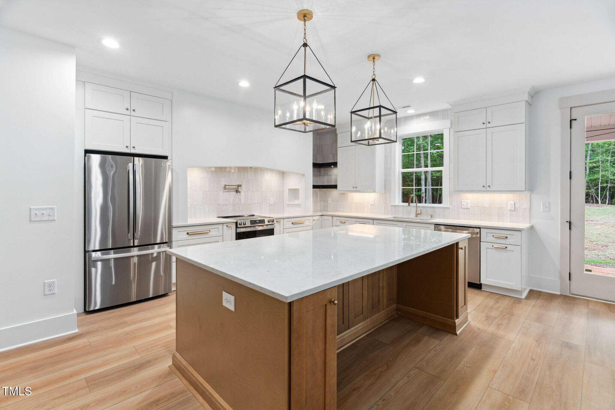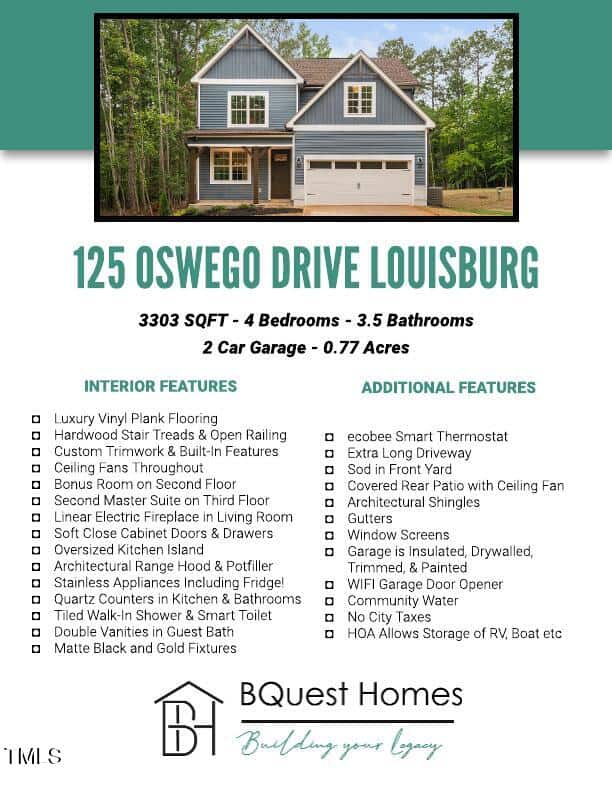 Beautiful New Build Home on 0.77 Acres in the Amenity-Rich Community of Lake Royale! Builder Incentives: Includes a 2-10 Home Buyer’s Warranty and 1% Toward Closing Costs/Rate Buy-Down. You’ll love the bright, open floorplan with wide plank LVP flooring, designer black & gold fixtures, boxed oak stair treads with open railings, and smart home features like an Ecobee thermostat, WiFi garage door opener, and smart toilet/bidet.