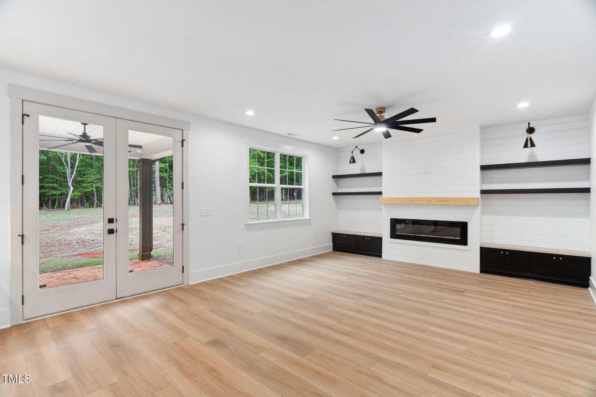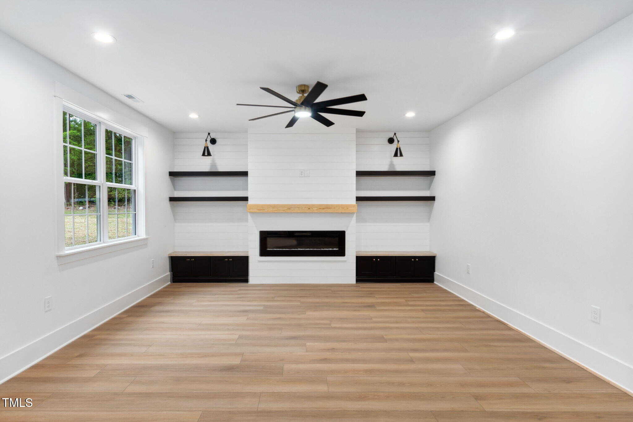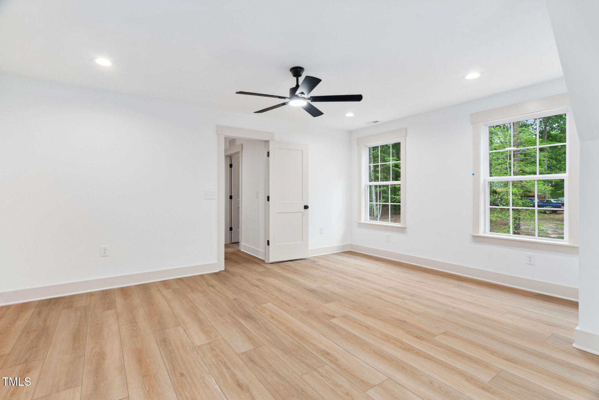 Beautiful New Build Home on 0.77 Acres in the Amenity-Rich Community of Lake Royale! Builder Incentives: Includes a 2-10 Home Buyer’s Warranty and 1% Toward Closing Costs/Rate Buy-Down. You’ll love the bright, open floorplan with wide plank LVP flooring, designer black & gold fixtures, boxed oak stair treads with open railings, and smart home features like an Ecobee thermostat, WiFi garage door opener, and smart toilet/bidet. The Dream Kitchen features oversized island, quartz countertops, custom cabinetry with built-in garbage/recycling & spice rack drawers, architectural range hood with niches and pot filler, electric slide-in range, wood-shelved pantry, and the refrigerator is included. Living room highlights include shiplap feature wall with floating shelves, built-in storage, linear electric fireplace, and French doors leading to the covered patio. Upstairs the primary suite features a stunning tiled shower (rain head + handheld), framed mirrors, sconces, private water closet with Smart toilet and Walk-In Closet with custom shelving. Don’t miss the Large laundry room with cabinets and floating shelf! Two spacious bedrooms with a full bath (double vanity) and Huge bonus room—perfect for a theater, gym, or game room. The Third Floor holds a 20′ x 30′ second master suite with full bath and closet—ideal for guests, in-laws, or private workspace. Enjoy the covered patio (ready to be screened) while admiring your flat backyard with tons of potential! You’re allowed to store your RV, boat, or jet skis right on your property—rare find! Lake Royale is a gated, year-round vacation-style community with a 3.5-mile lake, two beaches, boat ramps, clubhouse, pool, tennis & pickleball, volleyball, basketball, mini golf, shuffleboard, campsites, comfort centers, and free River Golf Course membership. Tons of Events: Food trucks, concerts, bingo, karaoke, movies on the beach, and 4th of July fireworks—you’ll never run out of things to do!