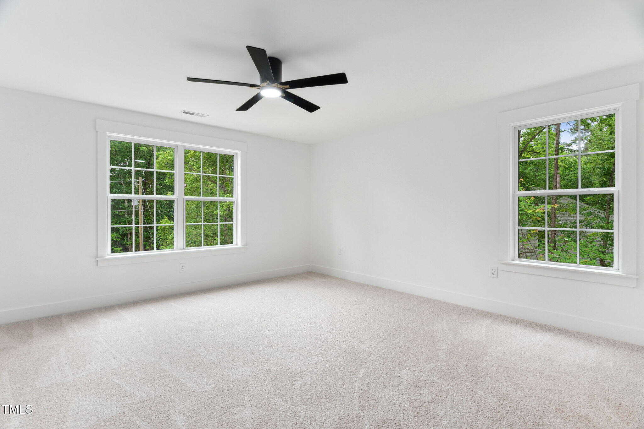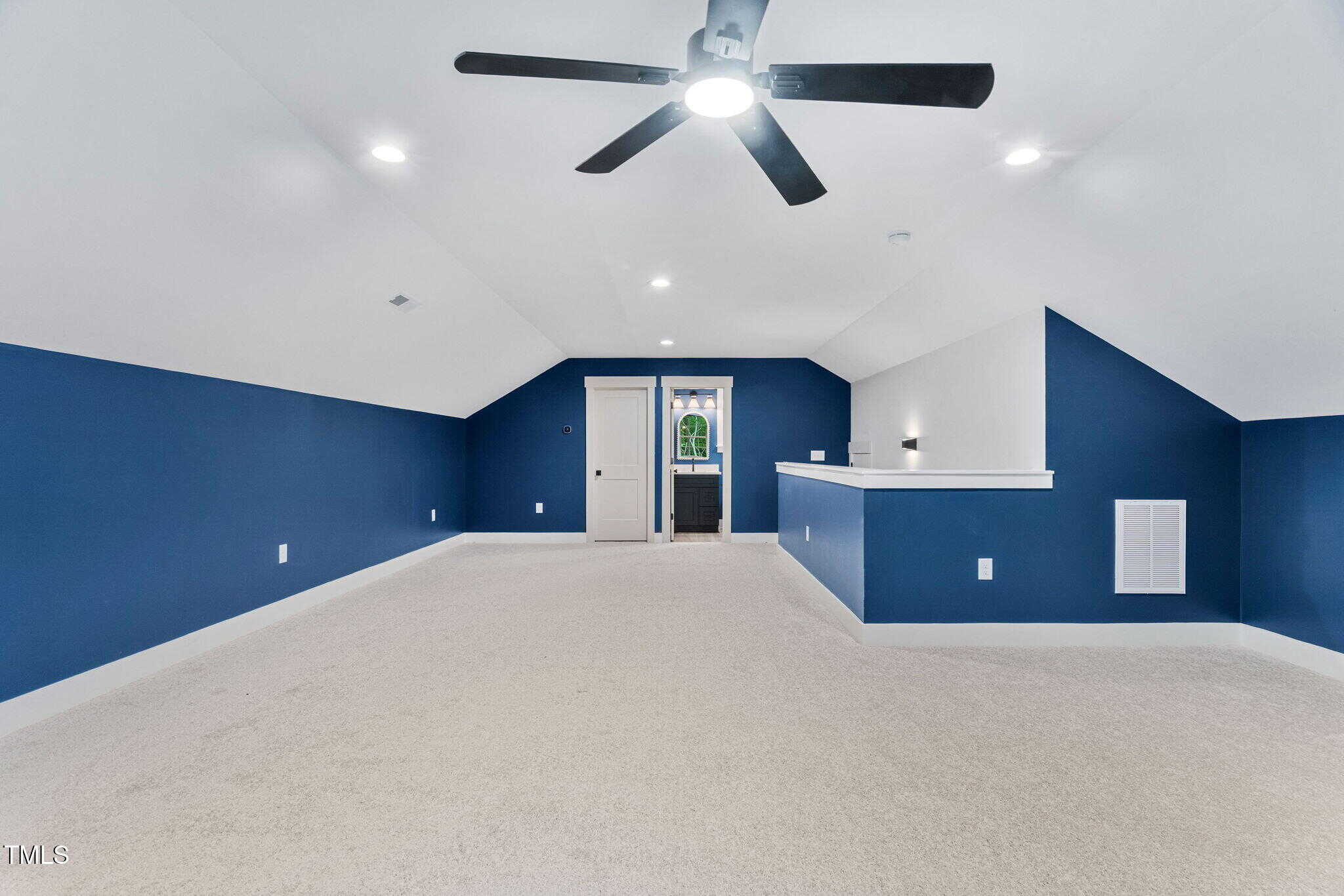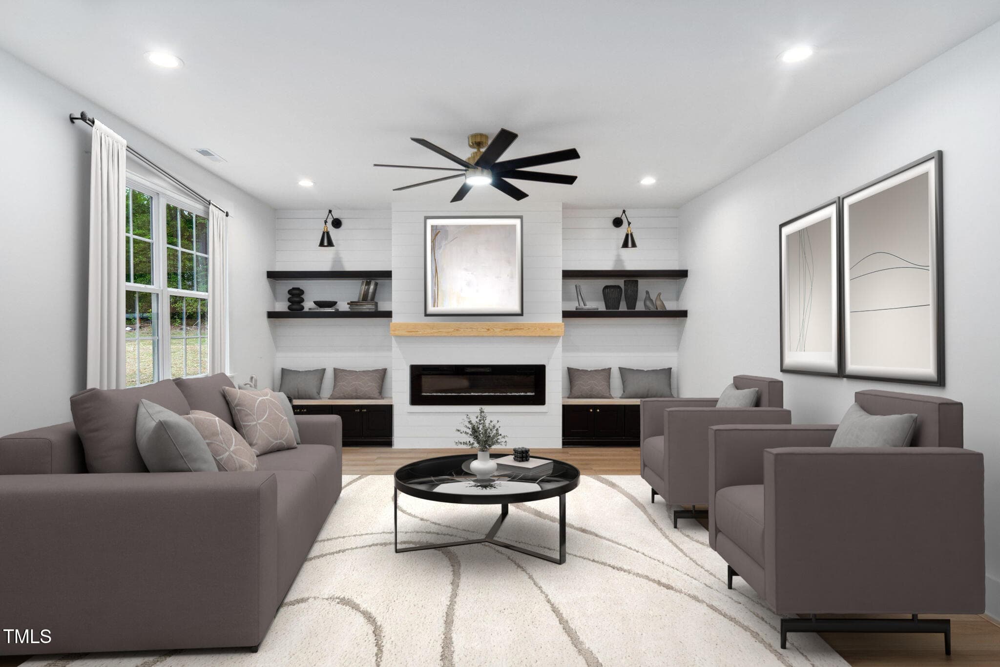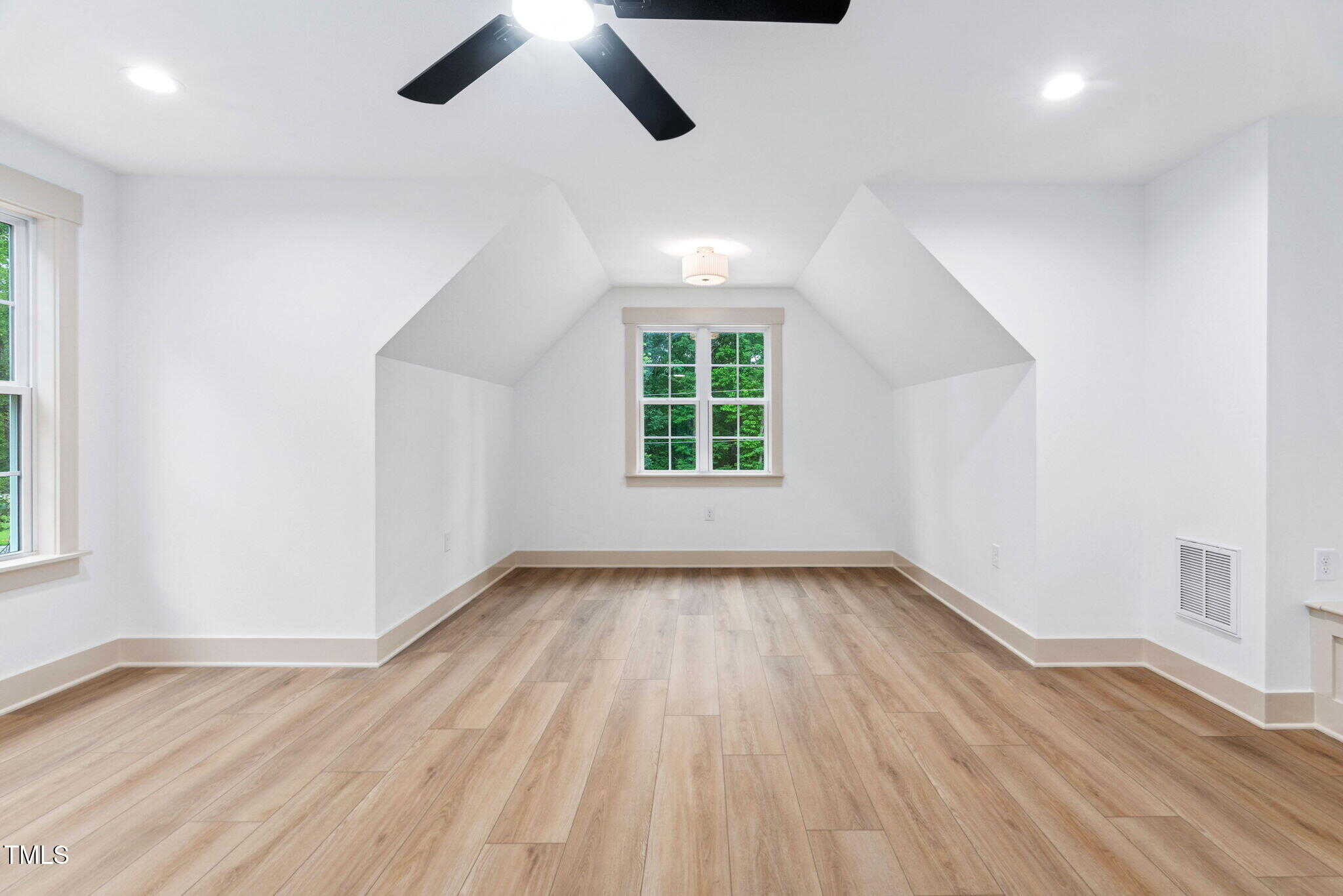Beautiful New Build Home on 0.77 Acres in the Amenity-Rich Community of Lake Royale! Builder Incentives: Includes a 2-10 Home Buyer’s Warranty and 1% Toward Closing Costs/Rate Buy-Down. You’ll love the bright, open floorplan with wide plank LVP flooring, designer black & gold fixtures, boxed oak stair treads with open railings, and smart home features like an Ecobee thermostat, WiFi garage door opener, and smart toilet/bidet. The Dream Kitchen features oversized island, quartz countertops, custom cabinetry with built-in garbage/recycling & spice rack drawers, architectural range hood with niches and pot filler, electric slide-in range, wood-shelved pantry, and the refrigerator is included. Living room highlights include shiplap feature wall with floating shelves, built-in storage, linear electric fireplace, and French doors leading to the covered patio. Upstairs the primary suite features a stunning tiled shower (rain head + handheld), framed mirrors, sconces, private water closet with Smart toilet and Walk-In Closet with custom shelving. Don’t miss the Large laundry room with cabinets and floating shelf! Two spacious bedrooms with a full bath (double vanity) and Huge bonus room—perfect for a theater, gym, or game room. The Third Floor holds a 20′ x 30′ second master suite with full bath and closet—ideal for guests, in-laws, or private workspace. Enjoy the covered patio (ready to be screened) while admiring your flat backyard with tons of potential! You’re allowed to store your RV, boat, or jet skis right on your property—rare find! Lake Royale is a gated, year-round vacation-style community with a 3.5-mile lake, two beaches, boat ramps, clubhouse, pool, tennis & pickleball, volleyball, basketball, mini golf, shuffleboard, campsites, comfort centers, and free River Golf Course membership. Tons of Events: Food trucks, concerts, bingo, karaoke, movies on the beach, and 4th of July fireworks—you’ll never run out of things to do!
