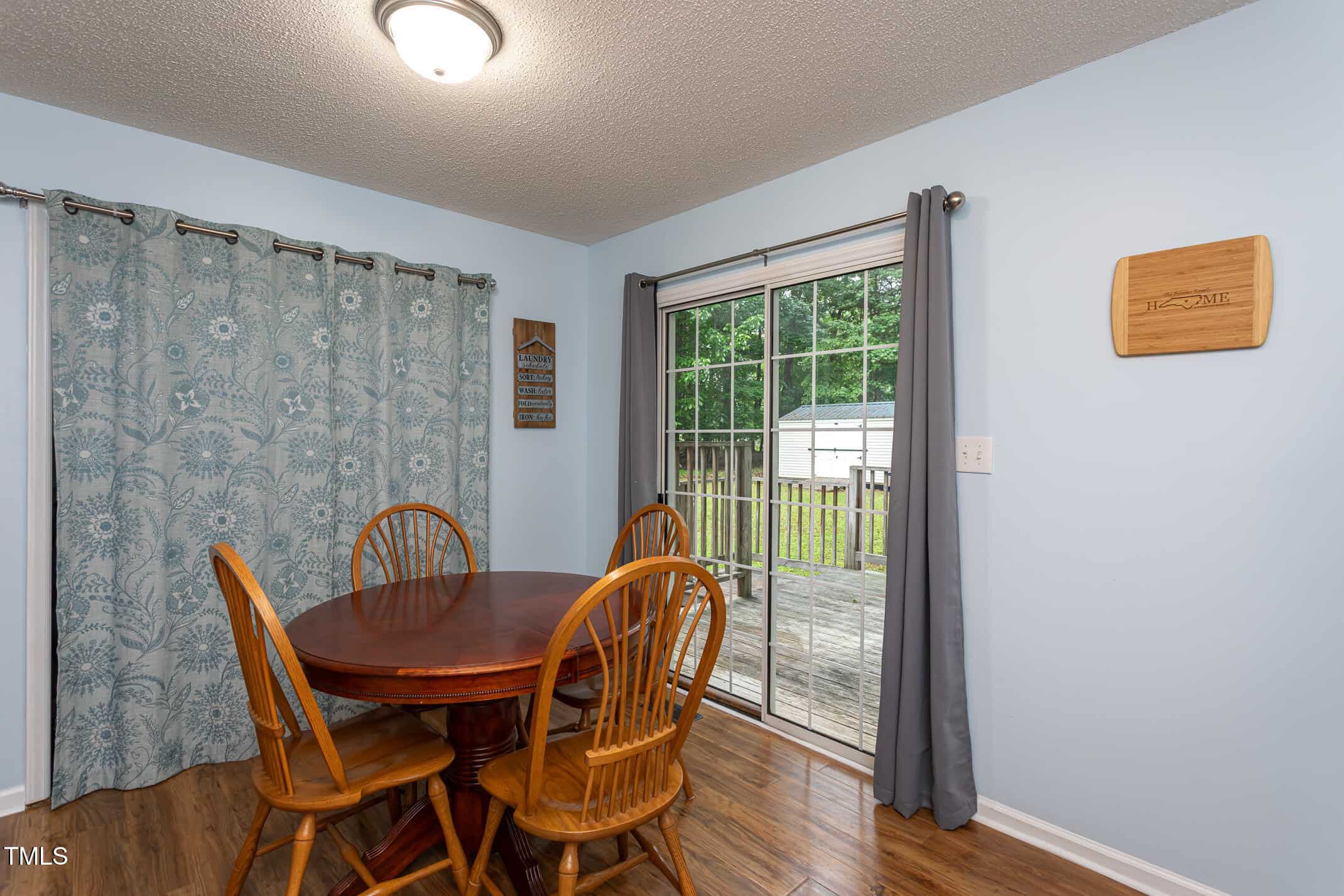 Tucked away on a private 0.69-acre lot lined with mature trees, this charming home offers a peaceful retreat in the friendly Mill Creek neighborhood—with no HOA! Step inside to discover fresh updates including a new roof and gutters (2022), Pergo Outlast flooring, new carpet, and updated lighting. The cozy living room features a wood-burning fireplace and beautiful laminate floors. The eat-in kitchen is equipped with stainless steel appliances, painted cabinets, a pantry, and a convenient laundry area. Down the hall, you’ll find a full bathroom and one bedroom, plus a flexible bonus room on the main floor—perfect for an office, playroom, or easily enclosed for an extra bedroom. Upstairs, the spacious layout continues with a large primary suite, a generous secondary bedroom, and another full bathroom. Step out onto the back deck to enjoy your morning coffee while watching deer wander through the yard. Two storage sheds convey and provide plenty of space for tools and toys. Just a short drive to downtown Wake Forest and with quick access to US-1 for commuting into Raleigh—this move-in ready gem won’t last long!