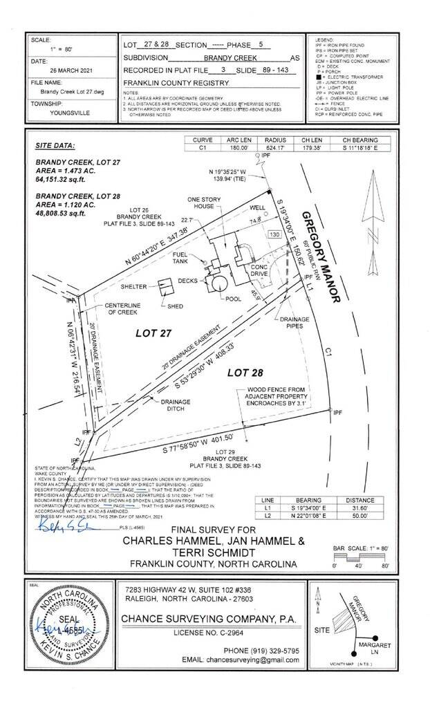 Recent updates include new windows (2025), main HVAC (2025), and roof (2020). Just minutes from downtown Youngsville, and centrally located near Wake Forest and US-1, this property truly has it all. Sale is for Lot 27 (1.47 acres where house sits) and Lot 28 (vacant 1.12 acres) combined. Don’t miss this gem!