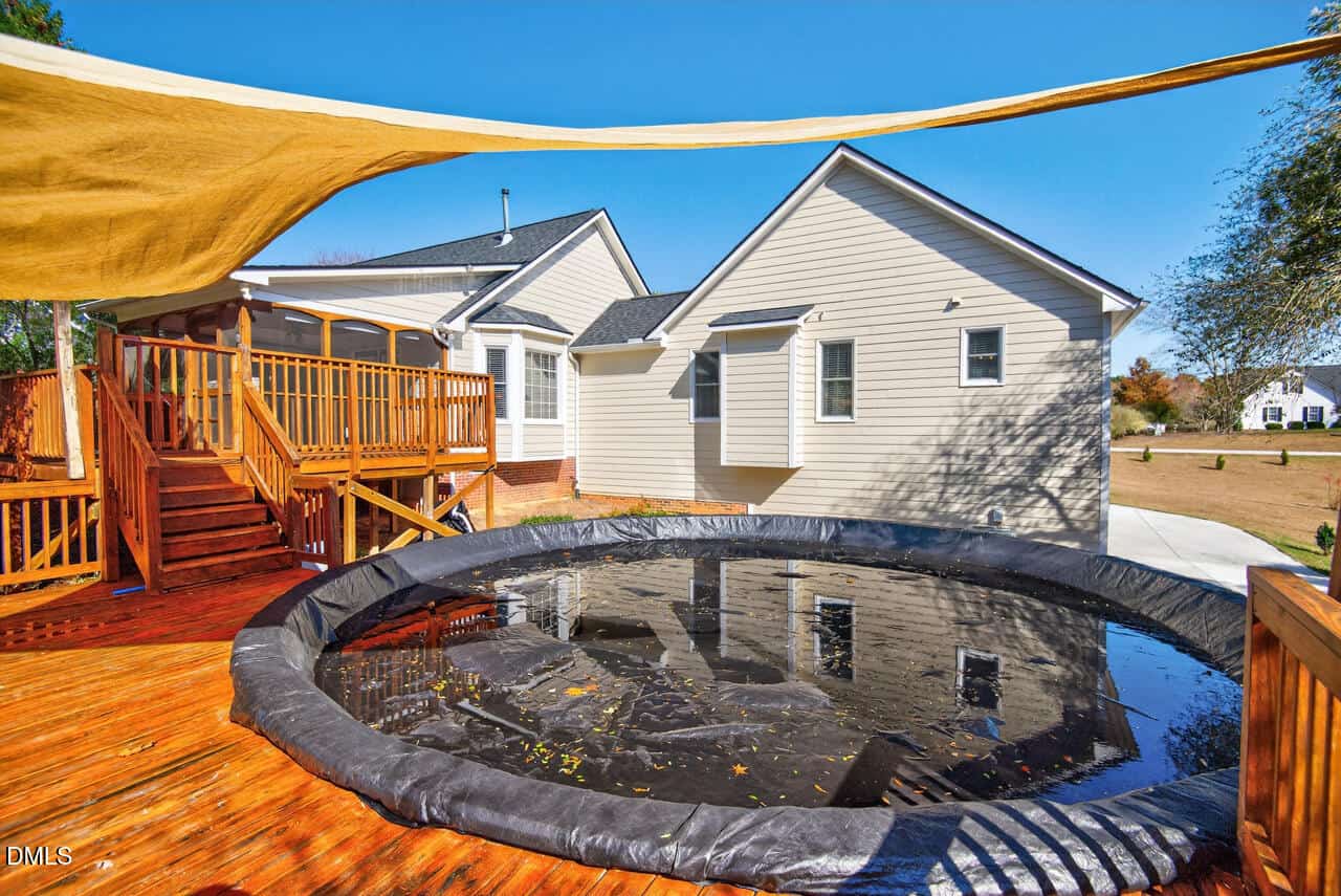 Charming one-of-a-kind ranch on 2.5 acres! Discover this beautifully maintained, single-level home offering the perfect blend of comfort, versatility, and charm. Situated on two combined lots totaling 2.5+ acres, this property provides generous space and privacy while keeping you close to everything you need. Inside, you’ll find 4 spacious bedrooms and 3 full baths, including two en-suite bedrooms—a rare find that provides ideal flexibility for guests, family, office space, or a private retreat. One en-suite is part of a separate living area with its own bedroom and bath, perfect for multi-generational living or hosting visitors. Enjoy peaceful mornings on the inviting front porch (with porch swing!), unwind on the screened porch overlooking the picturesque acreage, or relax by the pool with a sprawling deck—your own backyard oasis! A wired shed is perfect for tools and projects, while the newly expanded driveway offers plenty of parking, including room for an RV or boat. The 2-car garage adds even more convenience and storage. Recent updates include new windows (2025), main HVAC (2025), and roof (2020). Just minutes from downtown Youngsville, and centrally located near Wake Forest and US-1, this property truly has it all. Sale is for Lot 27 (1.47 acres where house sits) and Lot 28 (vacant 1.12 acres) combined. Don’t miss this gem!