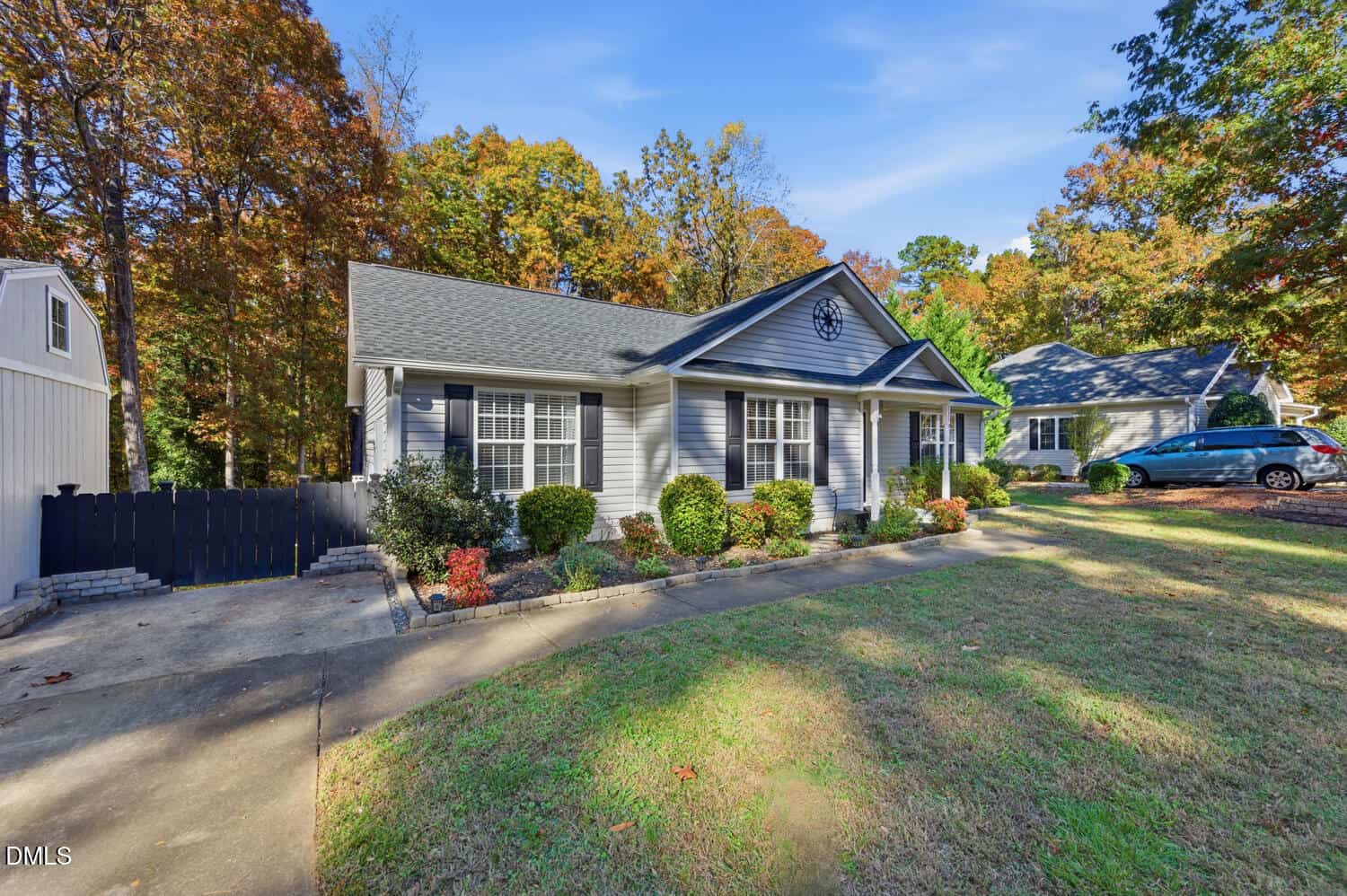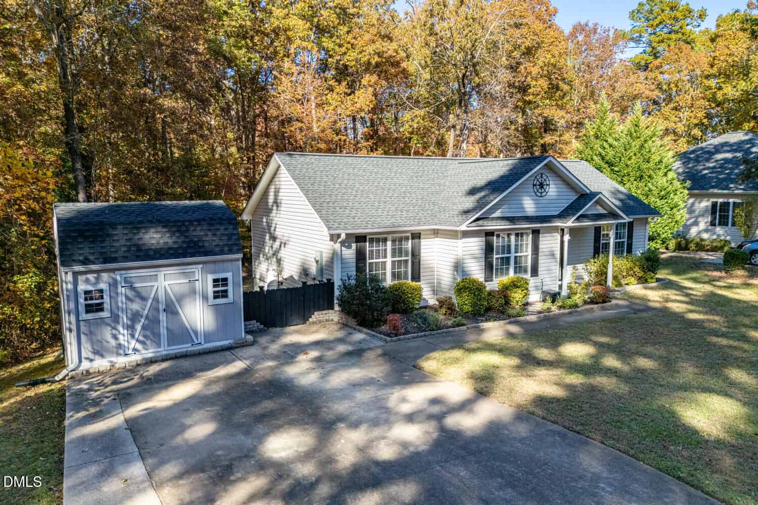 Amazing Value for This charming Lake Royale RANCH, offers the perfect blend of comfort, style, and fun. Enjoy easy one-level living on a spacious, private .73 lot tucked inside a vibrant gated lake community. Updated home makes this home move-in ready, with white painted cabinets, newer microwave, granite countertops in the kitchen. Family Room with vaulted ceiling. Three bedrooms with Plush Carpet! Large Primary Bedroom with Private Bathroom that has two sinks, garden tub/shower. Deck. Two Sheds, one has power. Generator for the House is included! The neighborhood amenities truly shine — two beaches, boating and fishing on the lake, a pool, clubhouse, pickleball, basketball, volleyball, mini golf, parks, and even a golf course! Hop in your golf cart and join in the community gatherings, clubs, and year-round events that make Lake Royale feel like home. Super Charming and ready for its next chapter — this one’s a keeper! Bonus: One Year Home Warranty with HVAC coverage to transfer to buyer at closing! Up to $2500 Closing Cost Incentive! Call Listing Agent for more info!