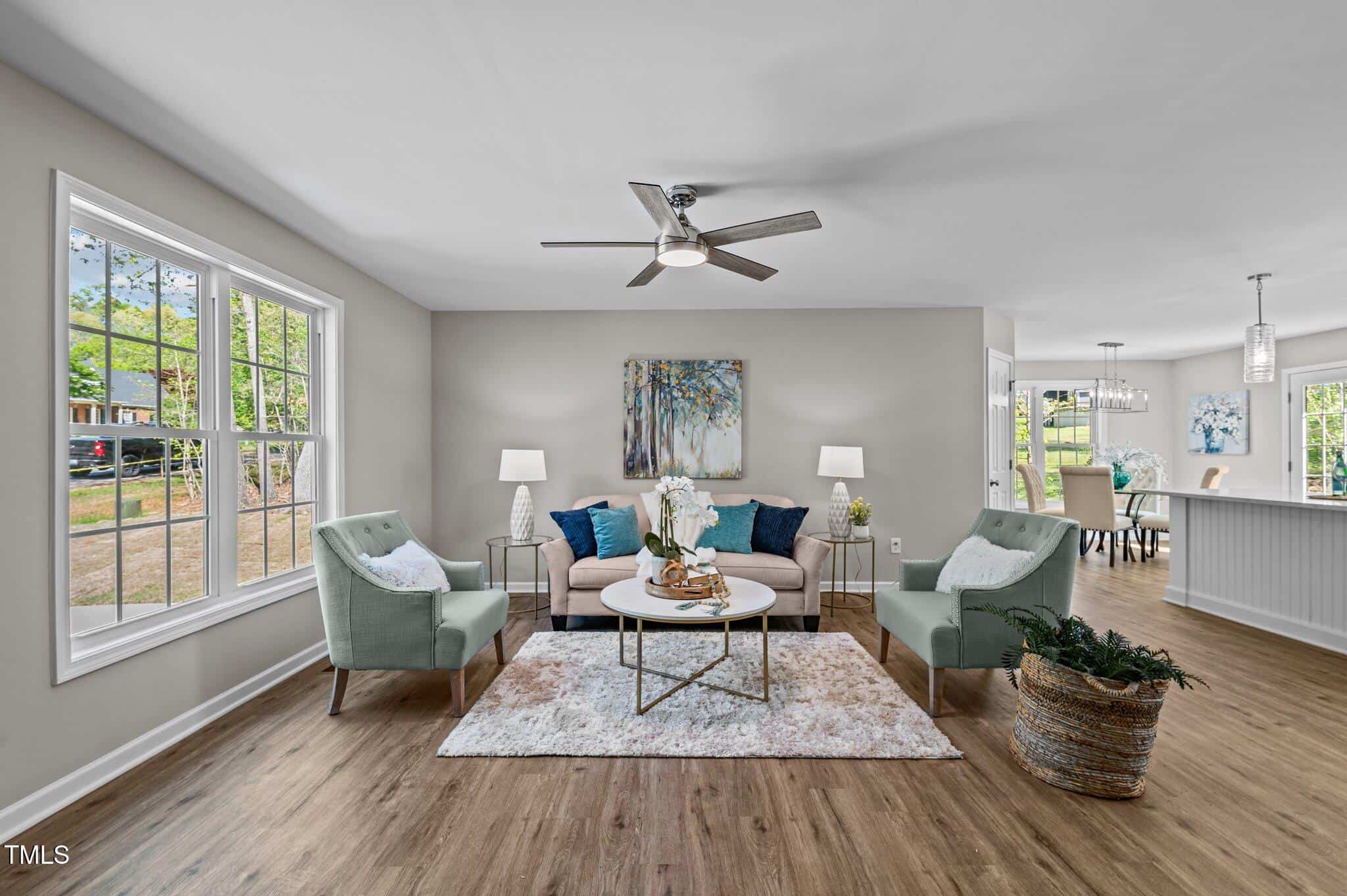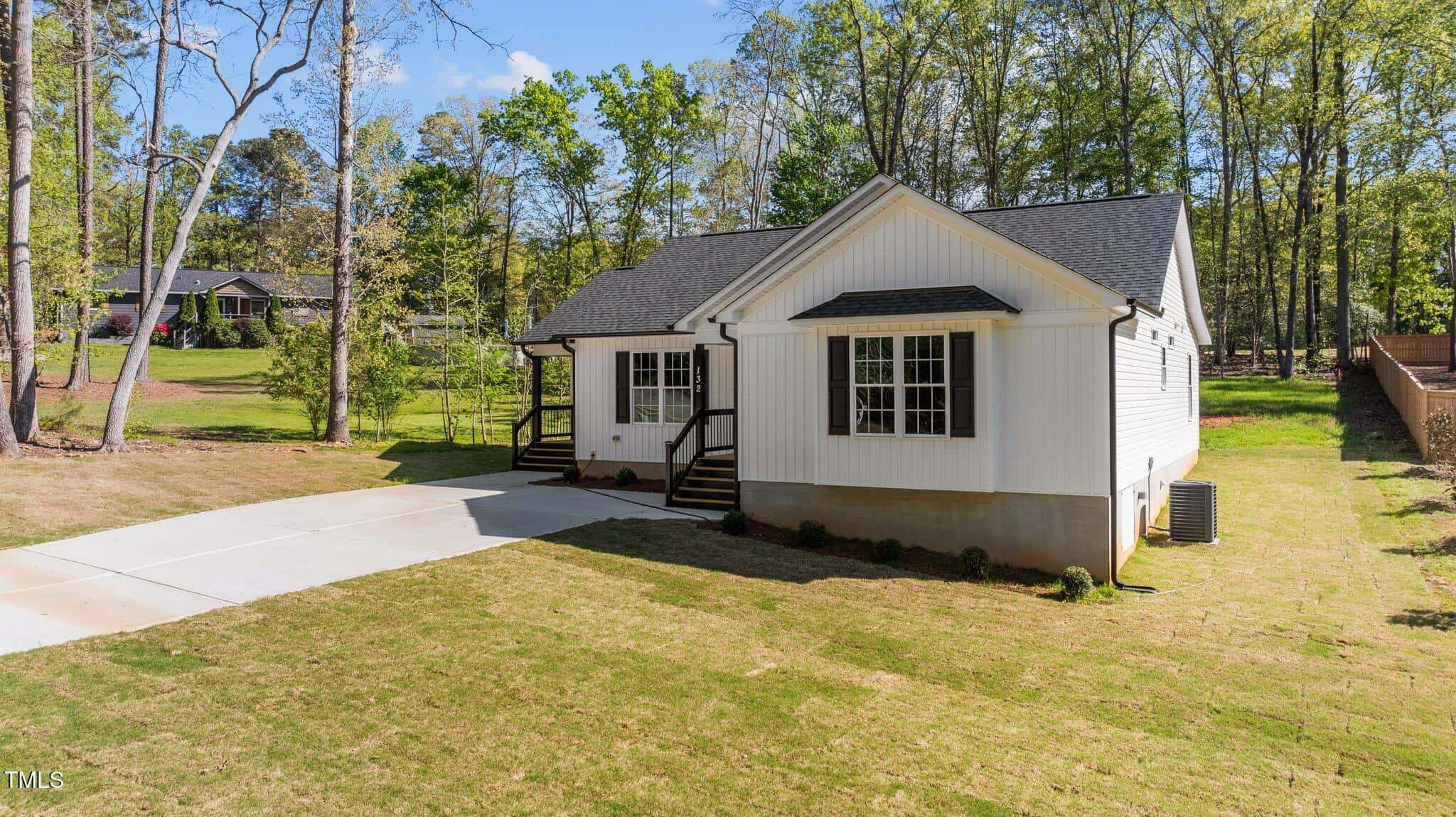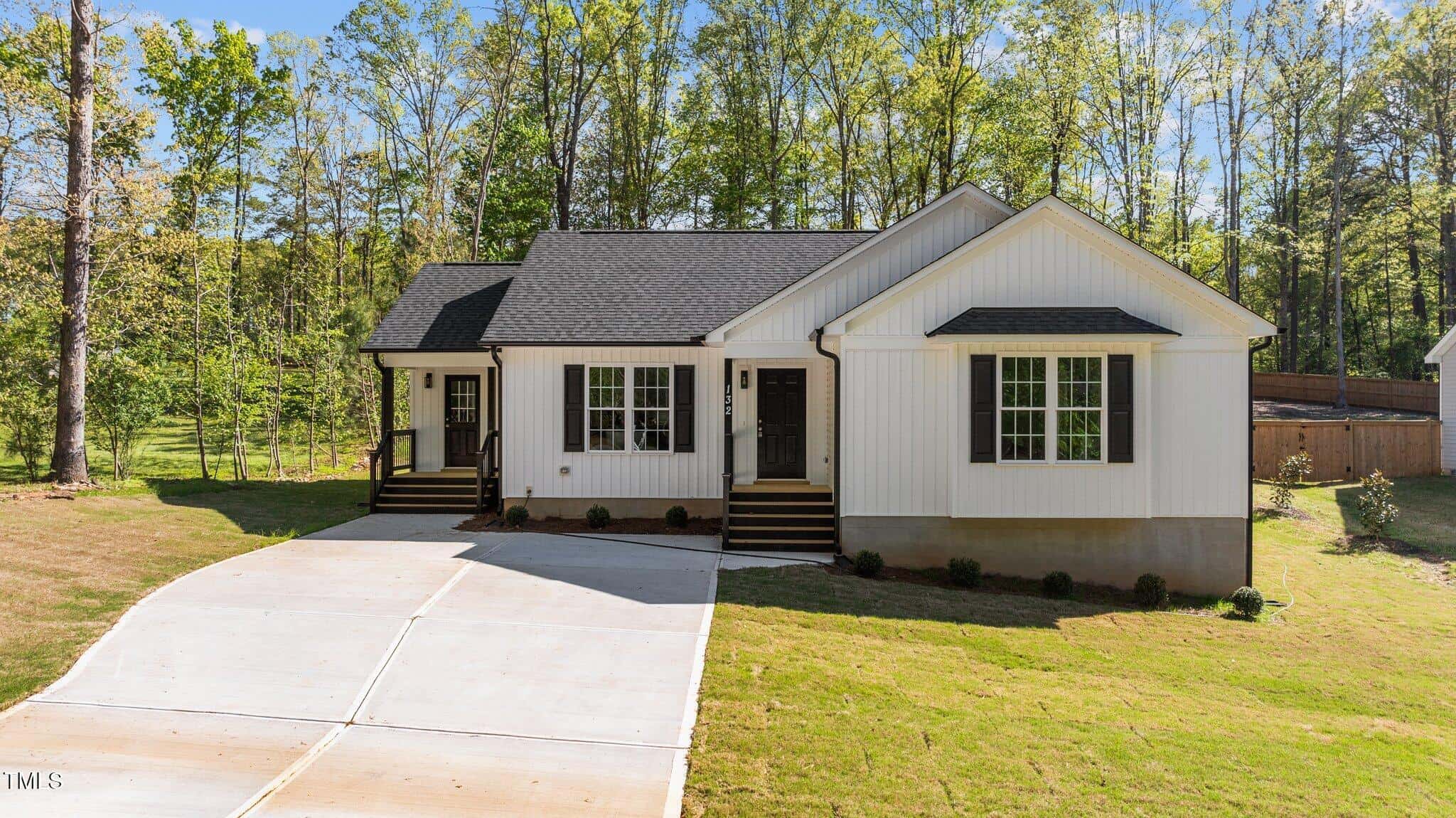 Welcome to golf course living! A thoughtfully designed new construction home perfectly positioned on a golf course lot in the sought-after Lake Royale community. This home offers serene views, elegant finishes, and a relaxed lifestyle you’ll love coming home to. Step inside to find a bright, open floor plan filled with abundant LVP flooring throughout the main living areas—both beautiful and low-maintenance. The kitchen is an entertainer’s dream, featuring a huge center island, tons of cabinetry, quartz countertops, and a spacious walk-in pantry—perfect for all your cooking and storage needs. The primary suite is a private sanctuary with his and hers separate walk-in closets and a spa-inspired bath with dual vanities and a walk-in shower. Each secondary bedroom is generously sized and includes its own walk-in closet, offering plenty of space for everyone. The hall bathroom shines with natural light thanks to a transom window over the tub/shower combo. Outside, enjoy a large, ground-level deck that requires no railings—safer and perfect for easy outdoor living. There’s even an attached storage room for tools, lawn equipment, or lake toys. The home also features a sealed crawlspace for added energy efficiency and peace of mind. Additional highlights include a side-entry layout, an extra-wide driveway, an efficient mudroom, and elegant lighting that adds a refined touch throughout the home. Life at Lake Royale is about more than just a beautiful home—it’s about embracing a quaint, laid-back lifestyle where you can truly disconnect from the hectic pace of everyday life. Whether you’re enjoying a peaceful round of golf, boating on the 345 acre private lake, lounging at the beach, fishing, playing tennis, or watching the kids explore one of the community’s many play areas—there’s something here for everyone, and all at a fraction of the price you’d expect in a resort-style community. **Bonus: $5,000 in closing cost incentives available with an approved lender—ask for details! ** This is more than just a home—it’s a lifestyle. Come experience the charm of 132 Prairie Dog Drive today!