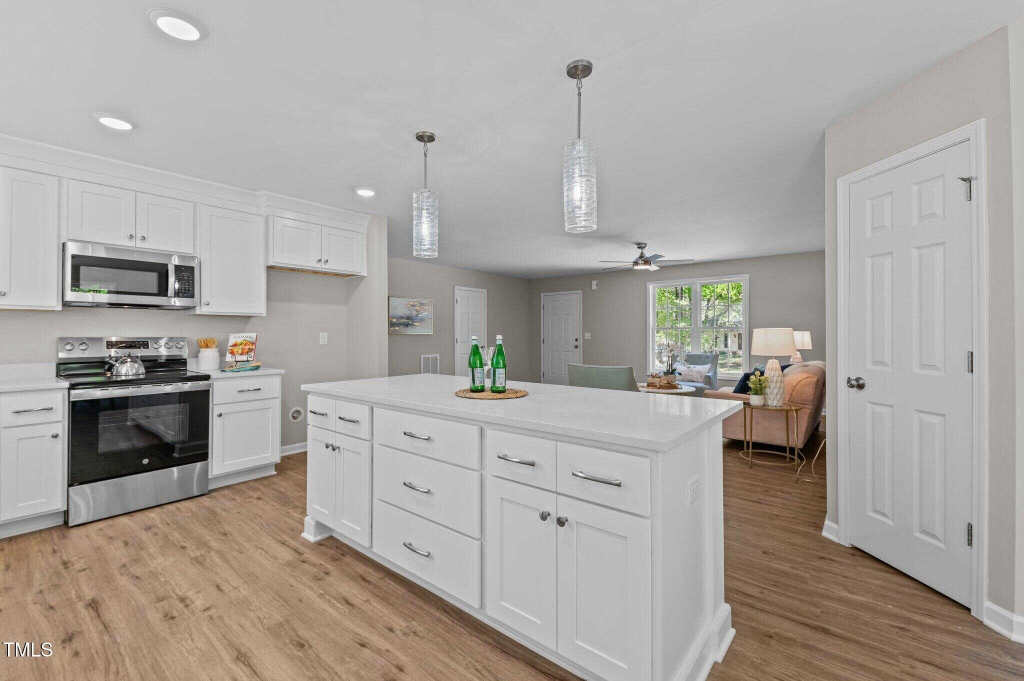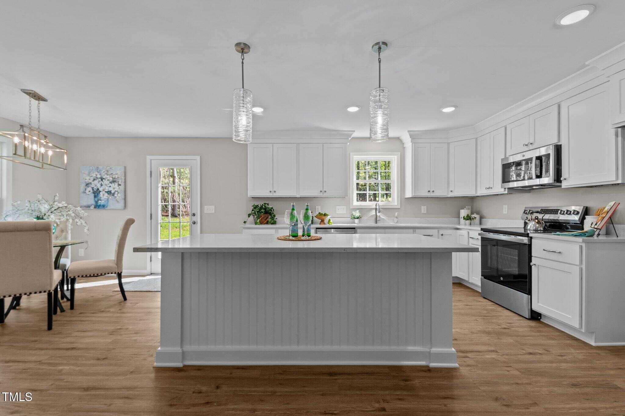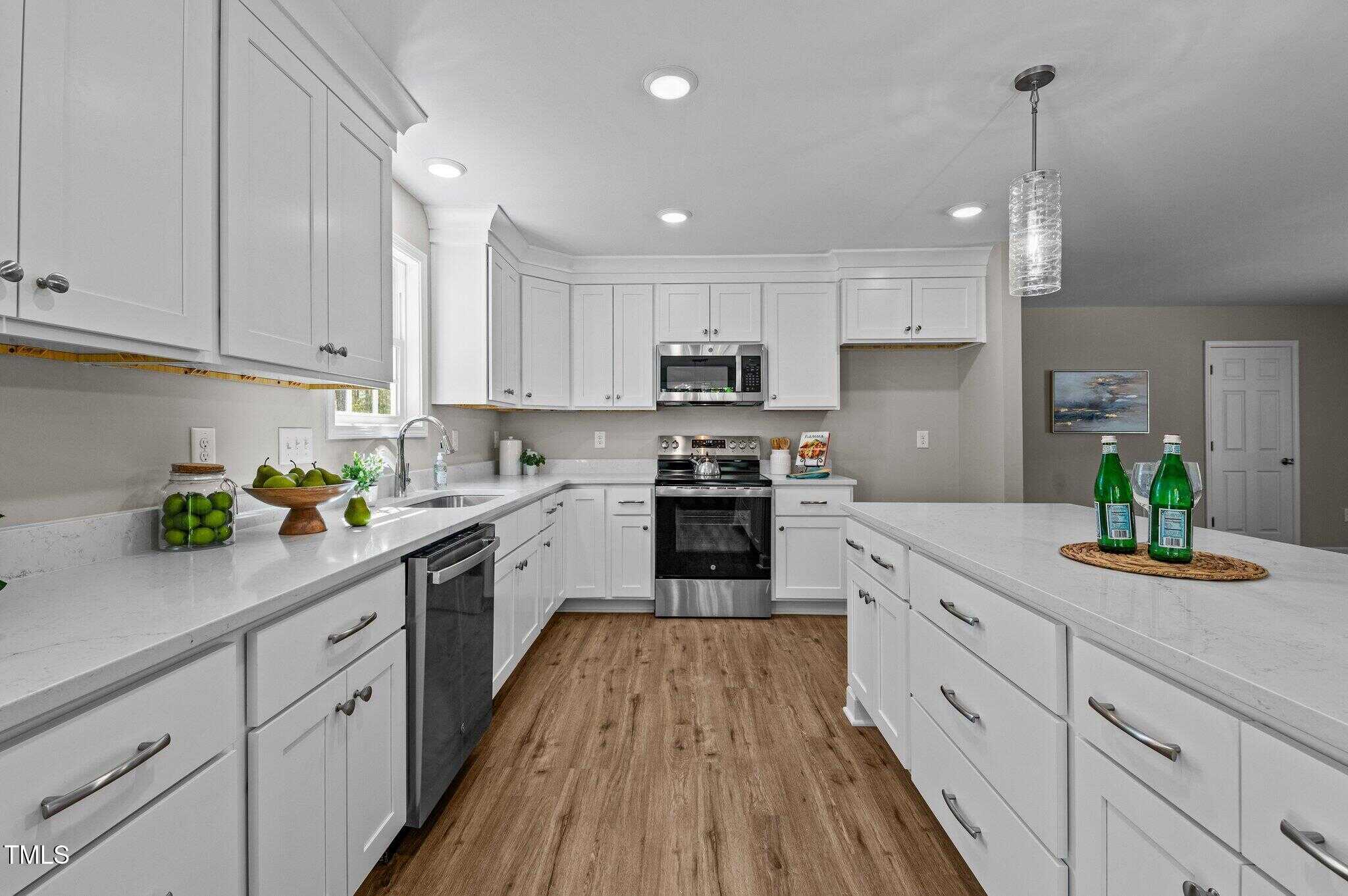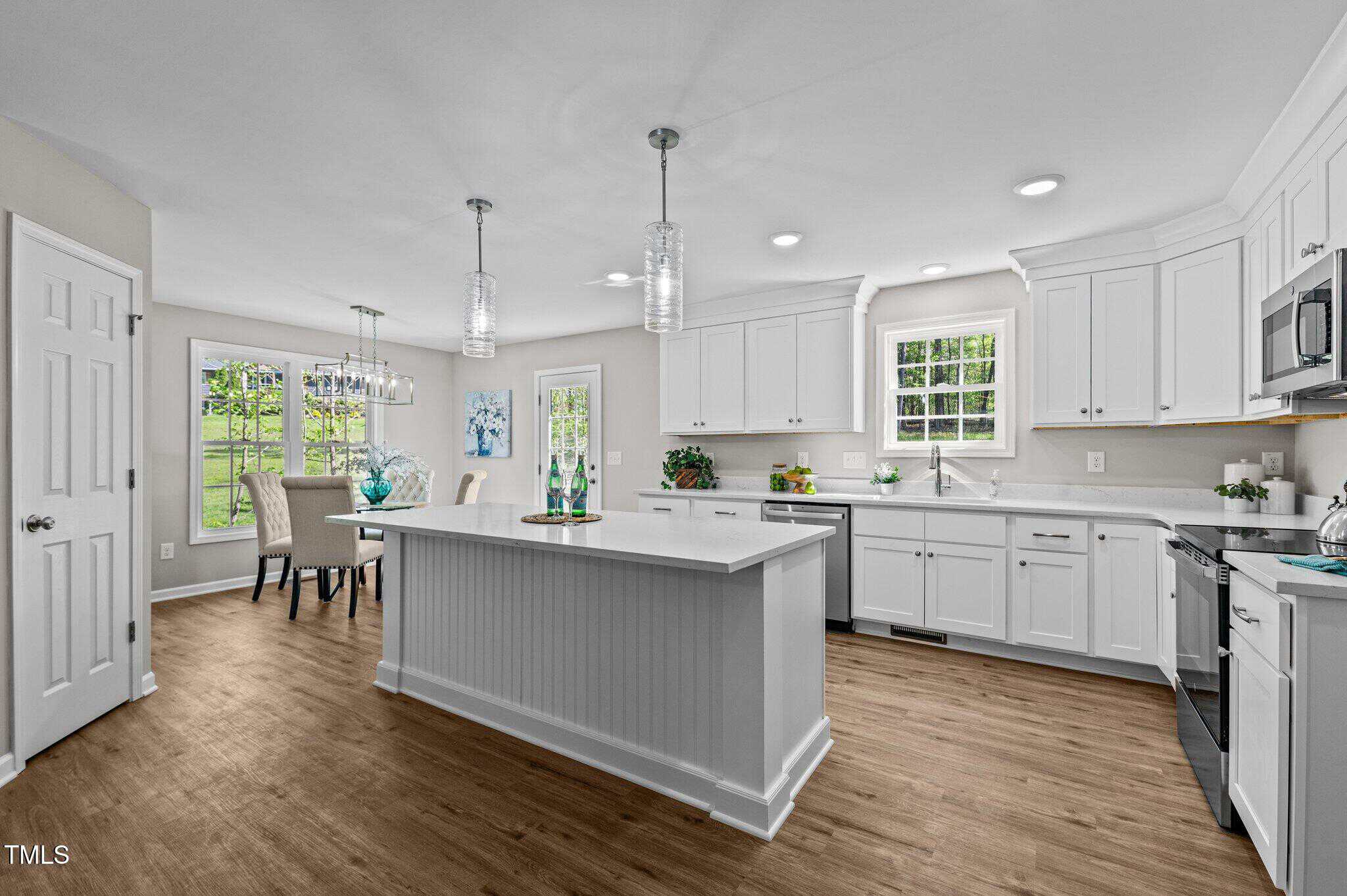 Step inside to find a bright, open floor plan filled with abundant LVP flooring throughout the main living areas—both beautiful and low-maintenance. The kitchen is an entertainer’s dream, featuring a huge center island, tons of cabinetry, quartz countertops, and a spacious walk-in pantry—perfect for all your cooking and storage needs.