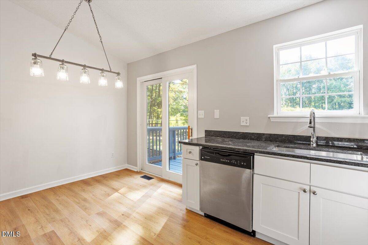 Welcome to 133 Clark Court in Youngsville, NC! This beautifully updated ranch-style home sits on a spacious 0.69-acre lot in the peaceful Mill Creek subdivision. The move-in-ready interior features brand-new luxury vinyl plank flooring, fresh paint in a neutral palette, and updated light fixtures throughout. The kitchen and bathrooms have been refreshed with new cabinets, granite countertops, and vanities for a modern touch. Washer, dryer, and refrigerator convey. Enjoy outdoor living on the freshly painted deck overlooking the private backyard. This property combines modern updates with serene rural surroundings. Schedule your showing today!