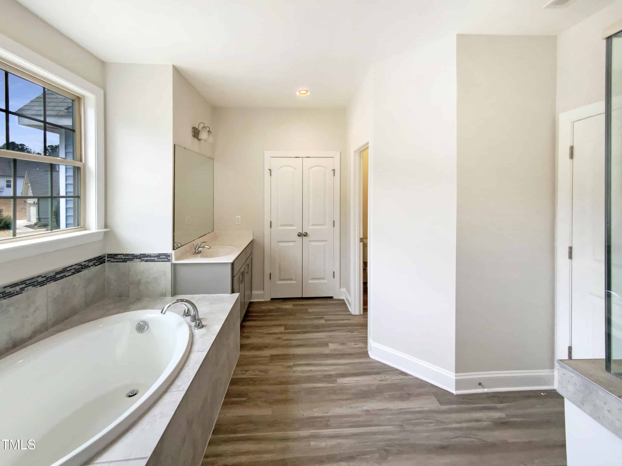 The primary bathroom is fully equipped with a separate tub and shower, double sinks, and plenty of under-sink storage. The backyard is the perfect spot to kick back with the included covered sitting area. Hurry, this won’t last long!