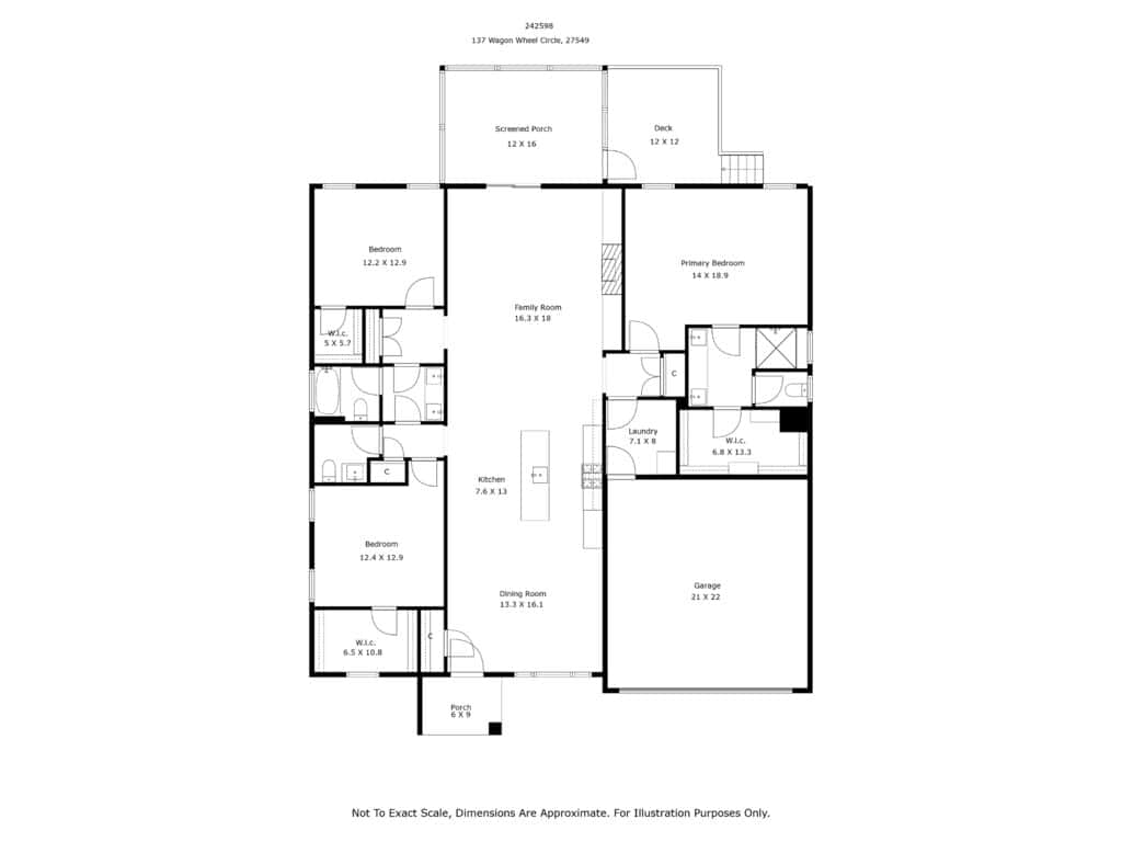 The primary suite is almost 19×14 w/a beautiful bathroom and extra large custom closet. The guest bedrooms are large as well, each with large custom closet and access to the bath from their own hallway. This is a 2.5 bath, their is a separate half bath for company.
