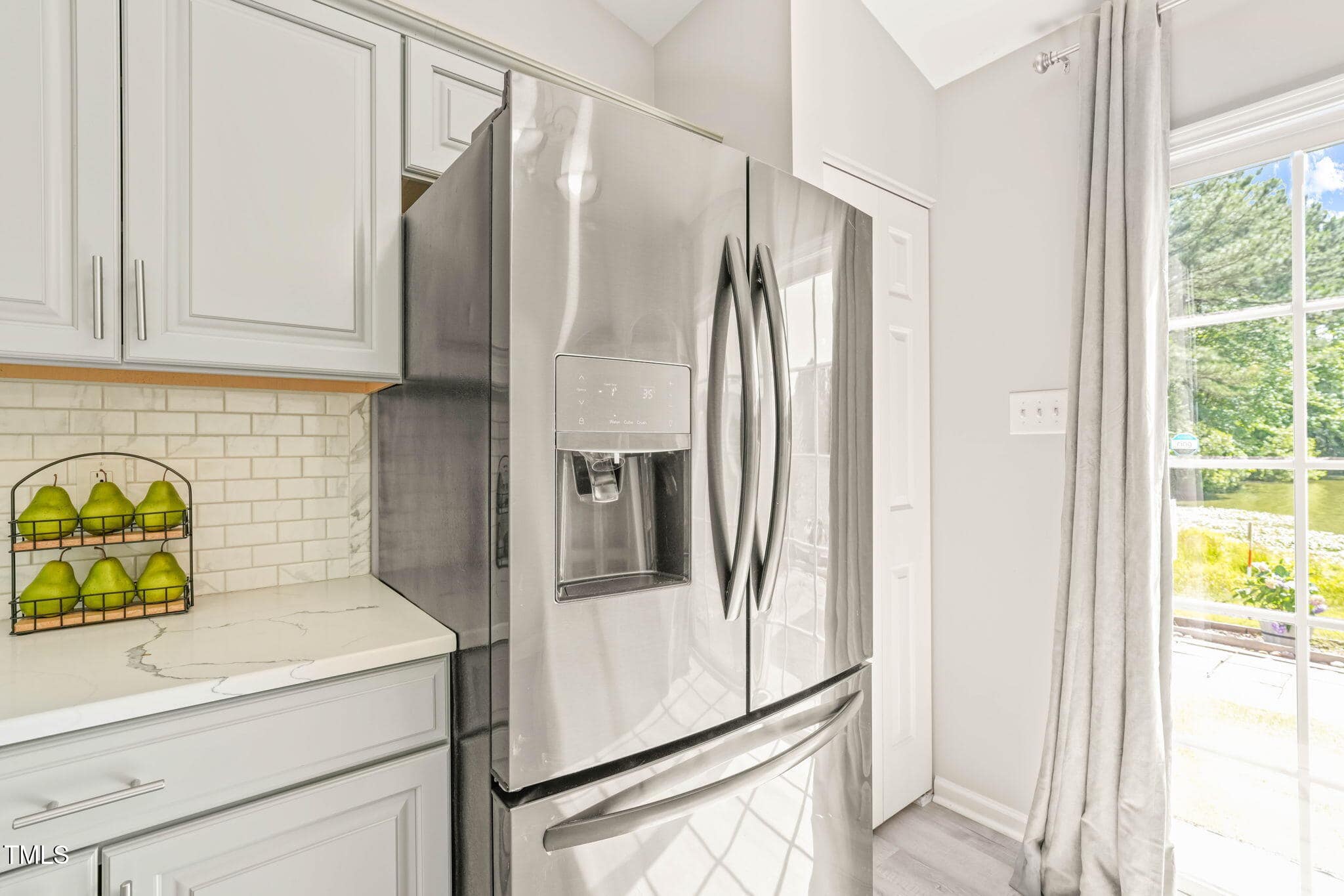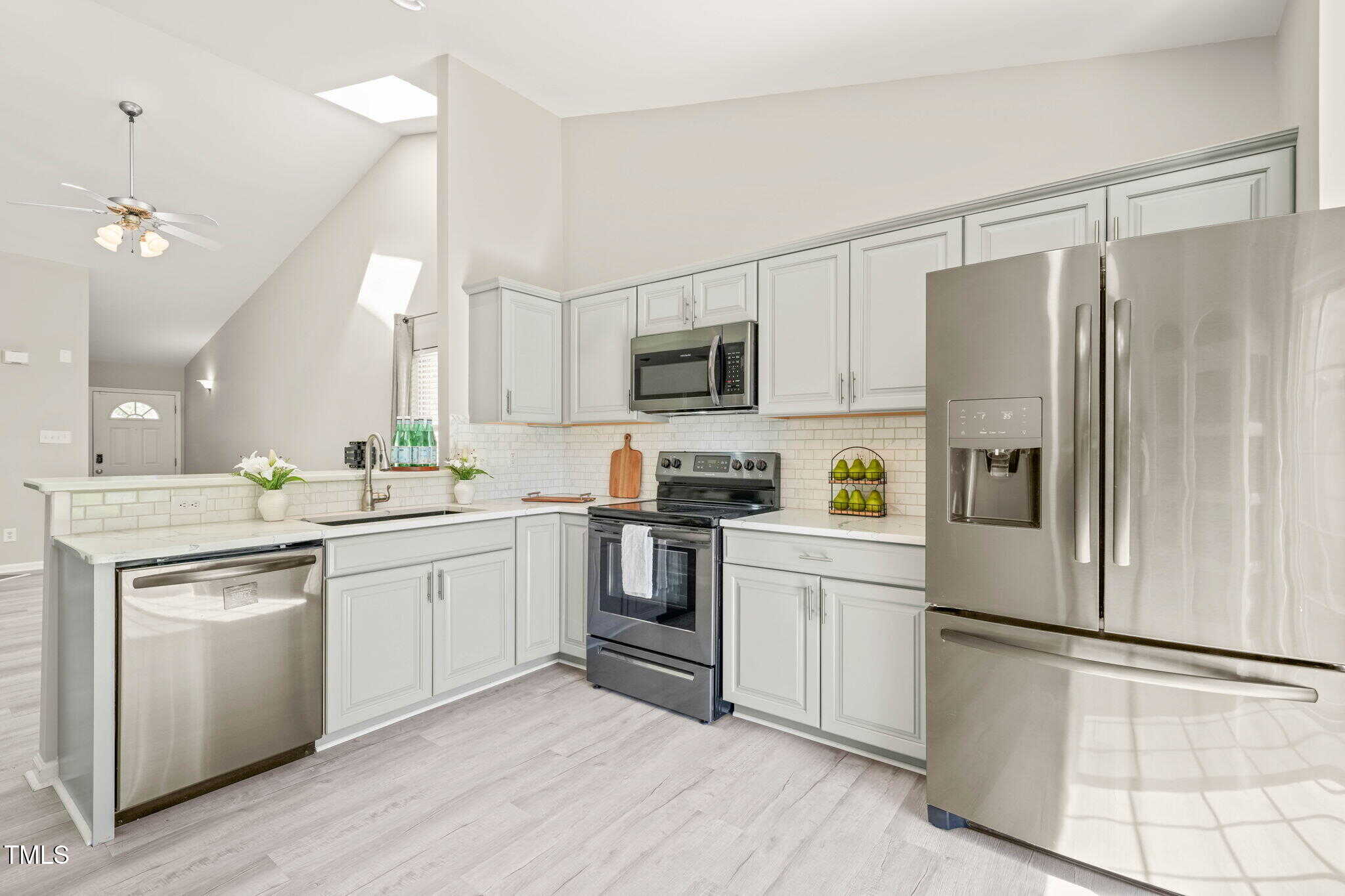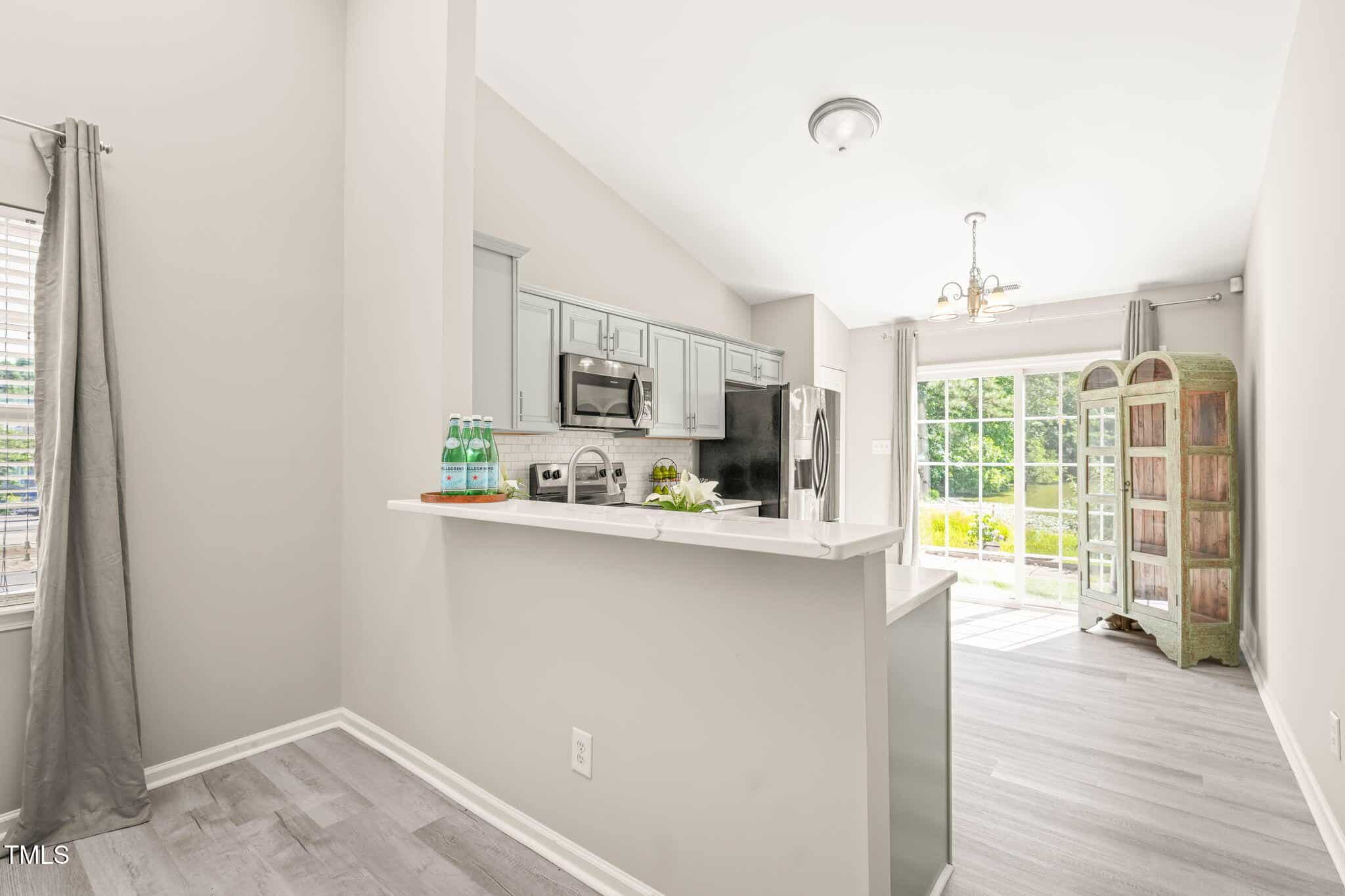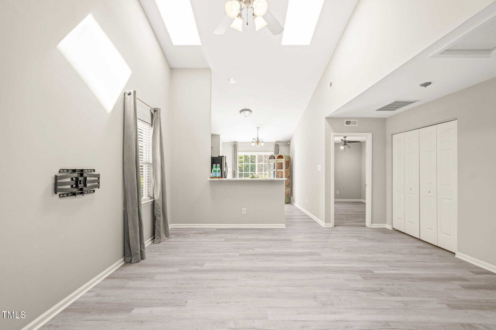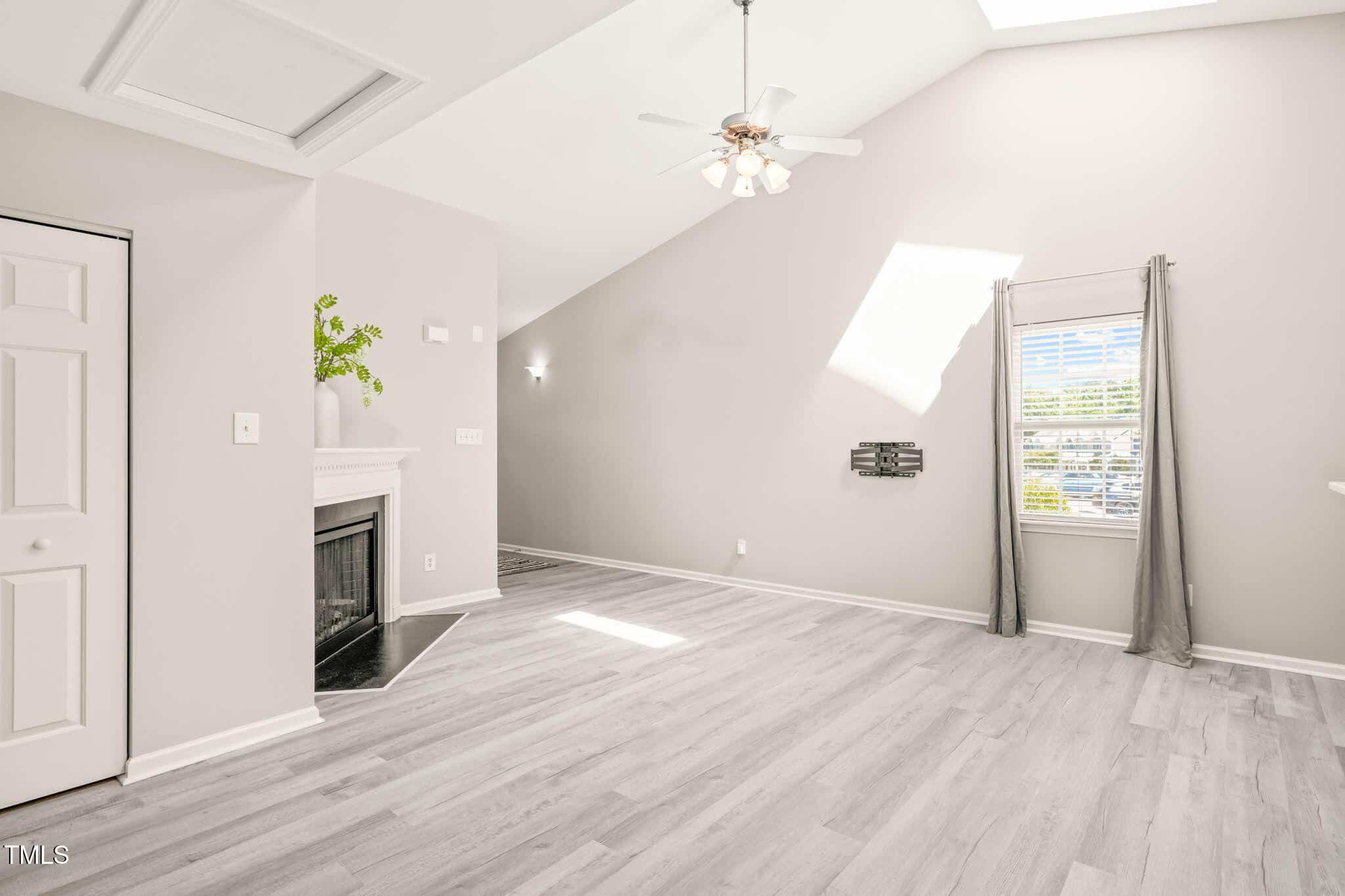 Beautifully renovated, all one level end unit townhome walking distance to Falls Lake Academy! This 2bd/2ba unit has fresh paint, LVP floors, new kitchen cabinets, new bathroom vanities, new toilets, new sinks/faucets, new quartz countertops and tile backsplash all in 2023. New complete kitchen appliance package 2023. New hot water heater 2025. Corner fireplace is electric and can be enjoyed as a visual feature or with heat option.