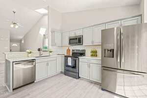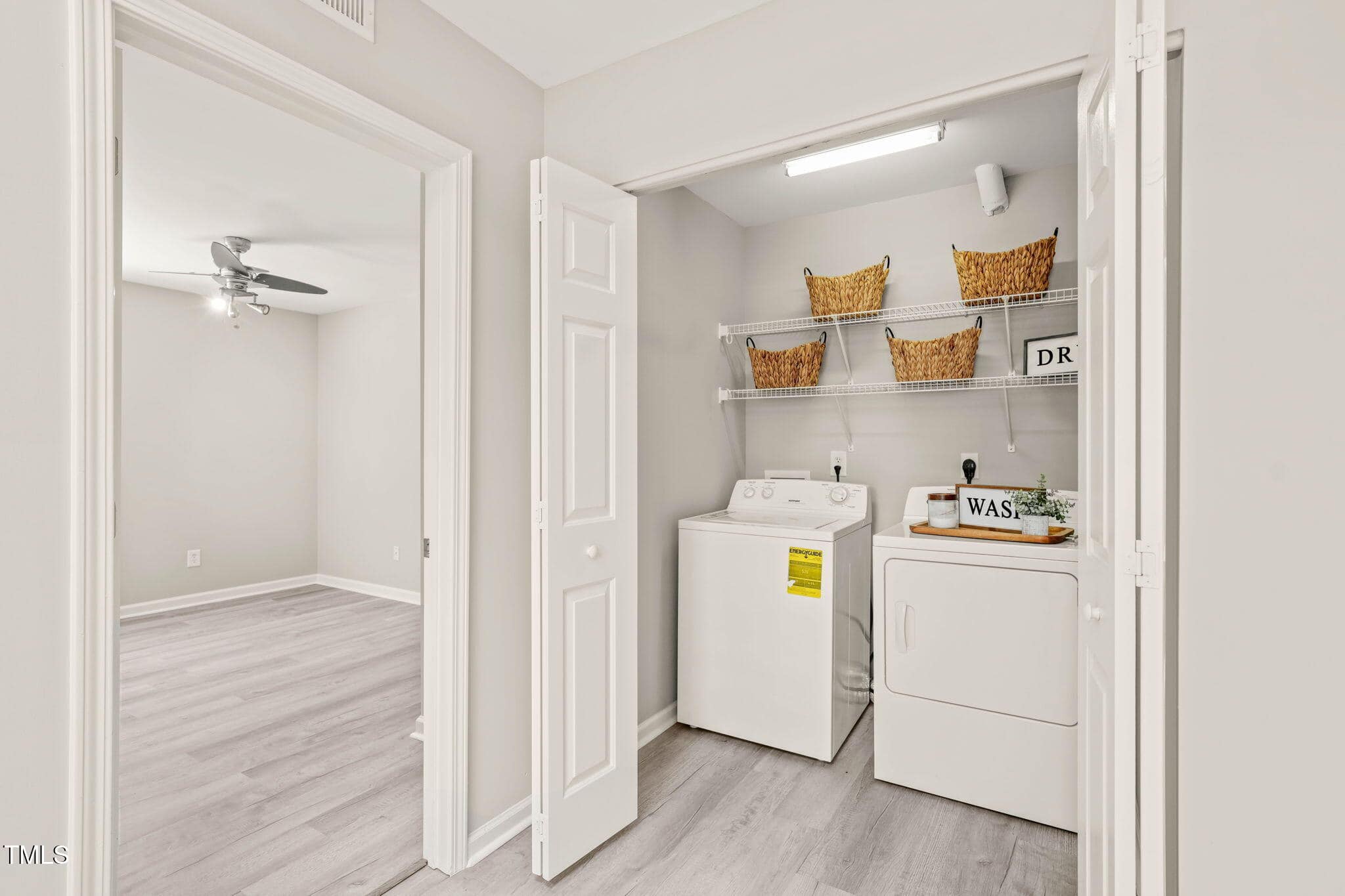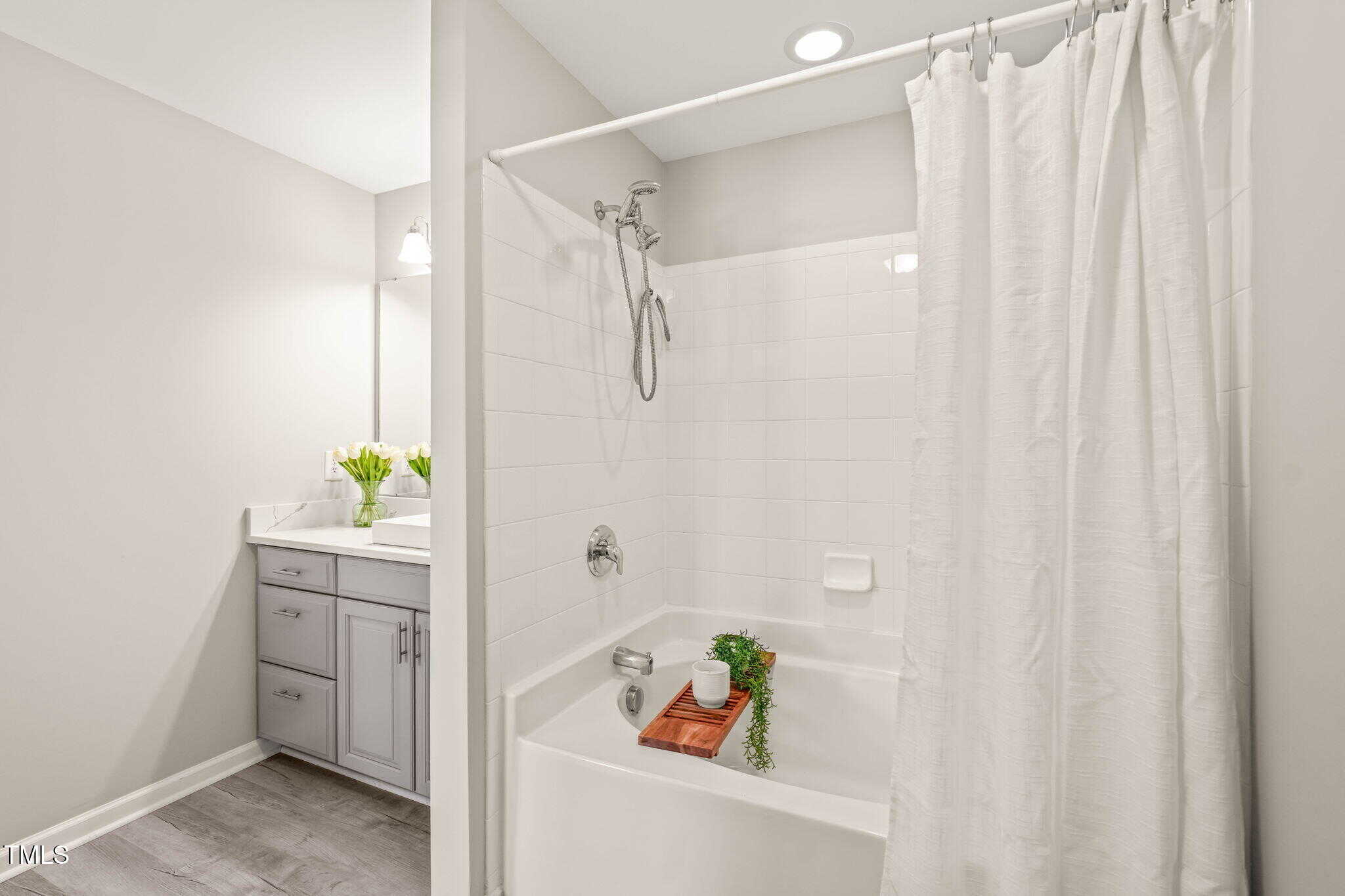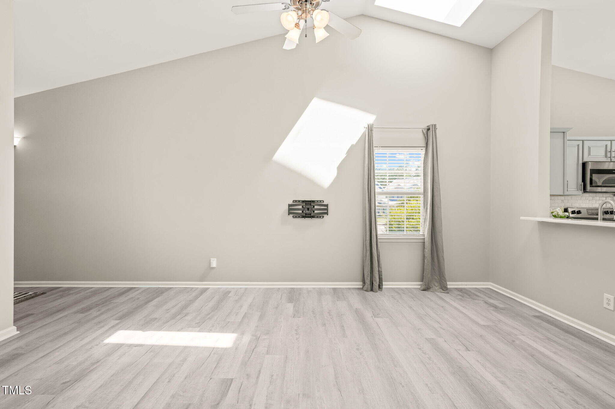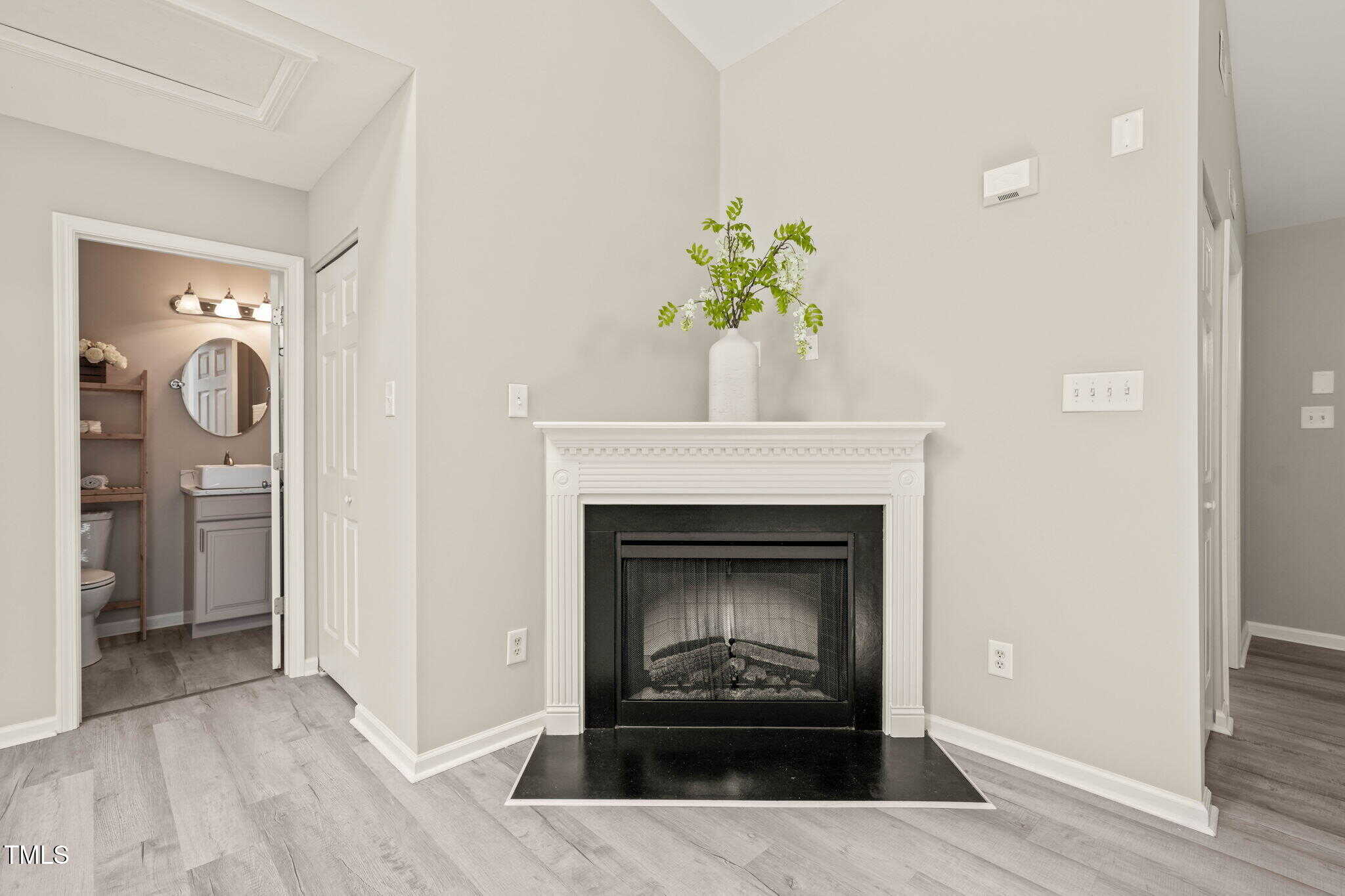 Beautifully renovated, all one level end unit townhome walking distance to Falls Lake Academy! This 2bd/2ba unit has fresh paint, LVP floors, new kitchen cabinets, new bathroom vanities, new toilets, new sinks/faucets, new quartz countertops and tile backsplash all in 2023. New complete kitchen appliance package 2023. New hot water heater 2025. Corner fireplace is electric and can be enjoyed as a visual feature or with heat option.