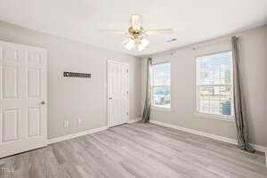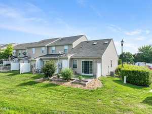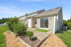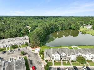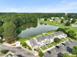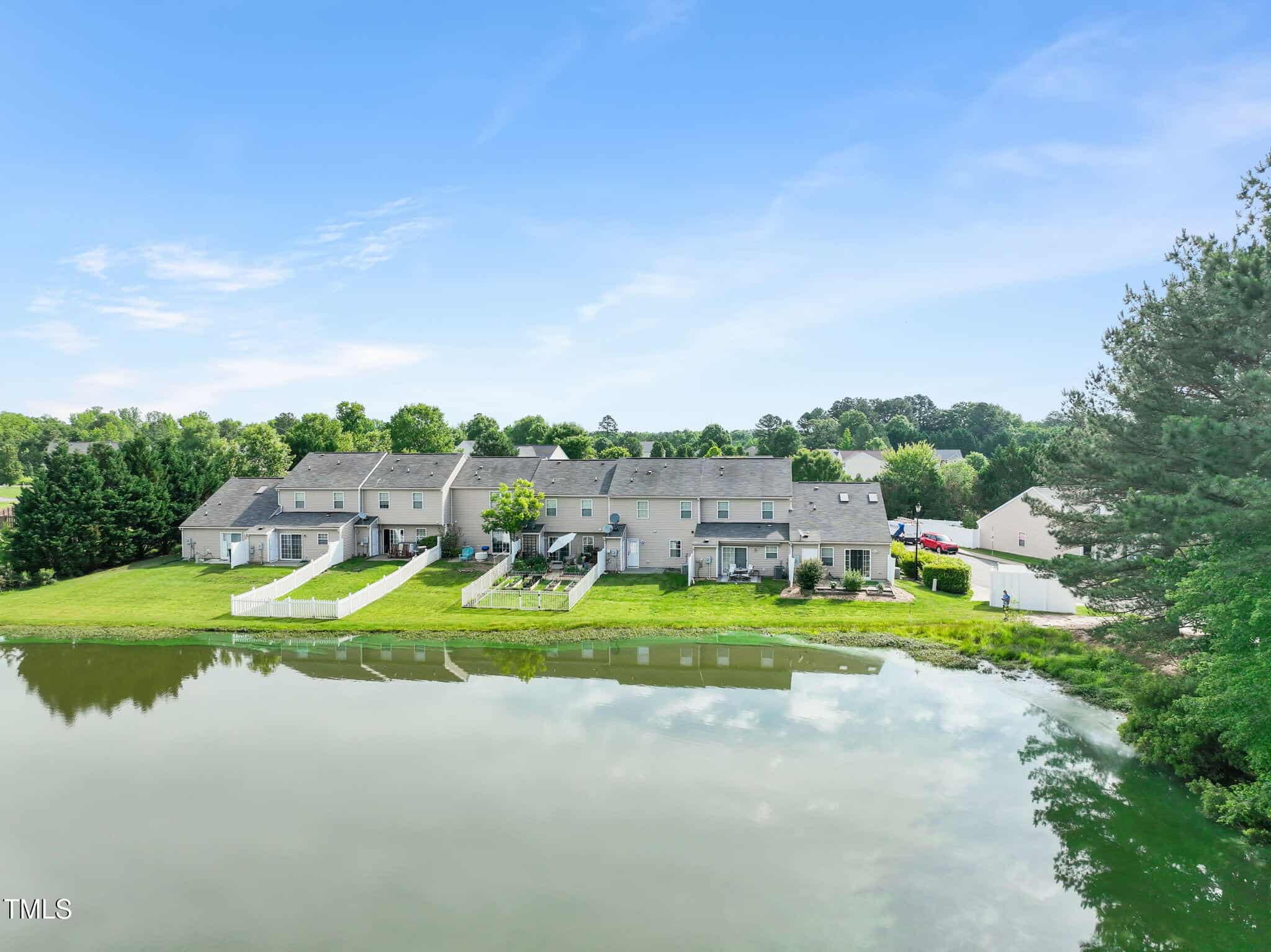 Beautifully renovated, all one level end unit townhome walking distance to Falls Lake Academy! This 2bd/2ba unit has fresh paint, LVP floors, new kitchen cabinets, new bathroom vanities, new toilets, new sinks/faucets, new quartz countertops and tile backsplash all in 2023. New complete kitchen appliance package 2023. New hot water heater 2025. Corner fireplace is electric and can be enjoyed as a visual feature or with heat option. Enjoy gorgeous summer sunsets overlooking the private neighborhood pond while listening to the toads croak and the fireflies light up the sky. Rentals of 6 months or longer allowed.