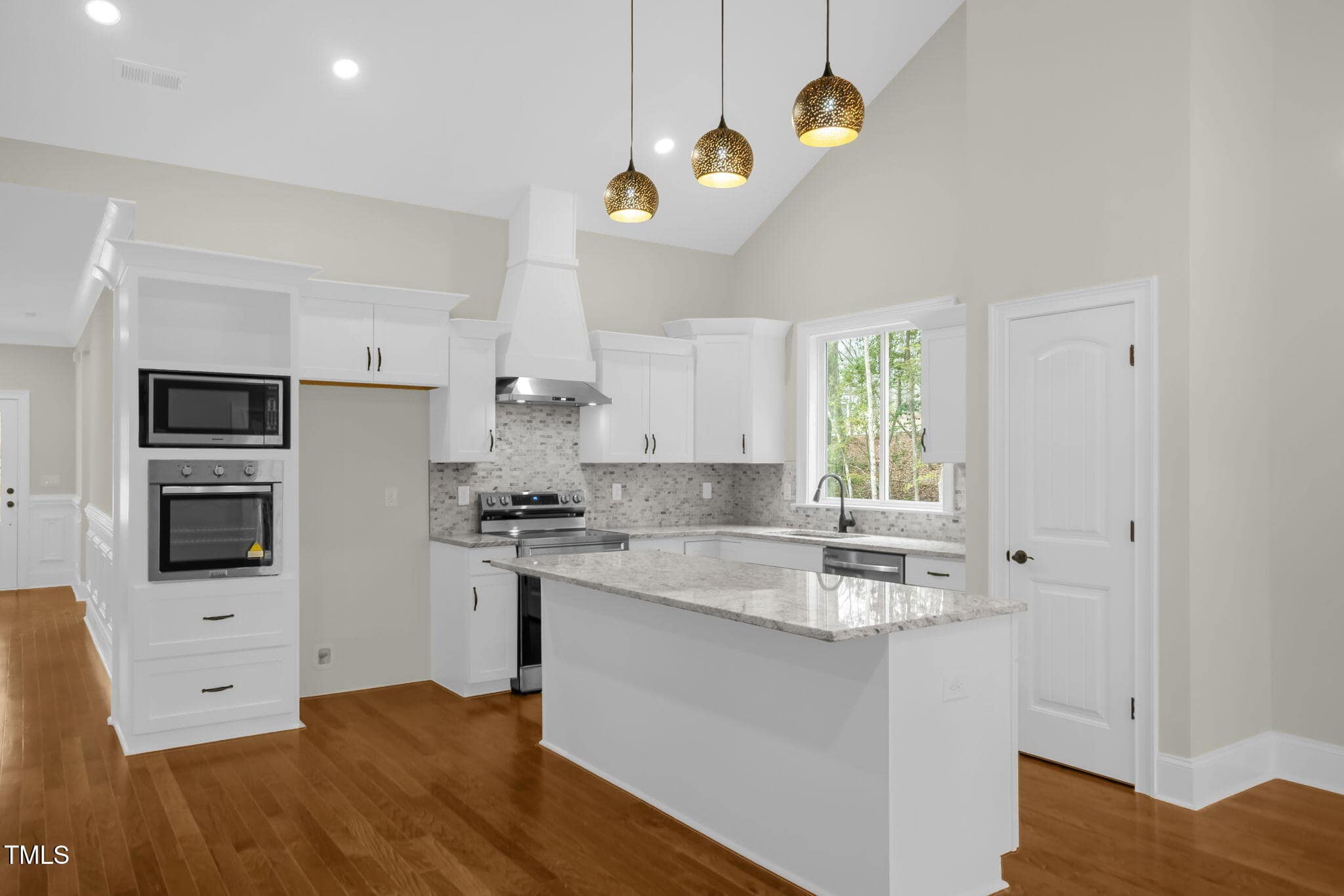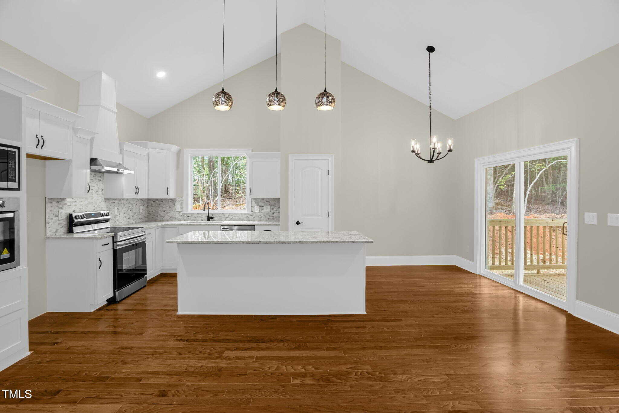 Welcome to this gorgeous thoughtfully designed home, crafted with your needs in mind. With 3 bedroom and a bonus room this house is ideal for anyone. Located in the desirable Lake Royale community of Louisburg, this beautiful modern house features elegant quartz countertops, a spacious kitchen, an open living room and deck perfect for entertaining.