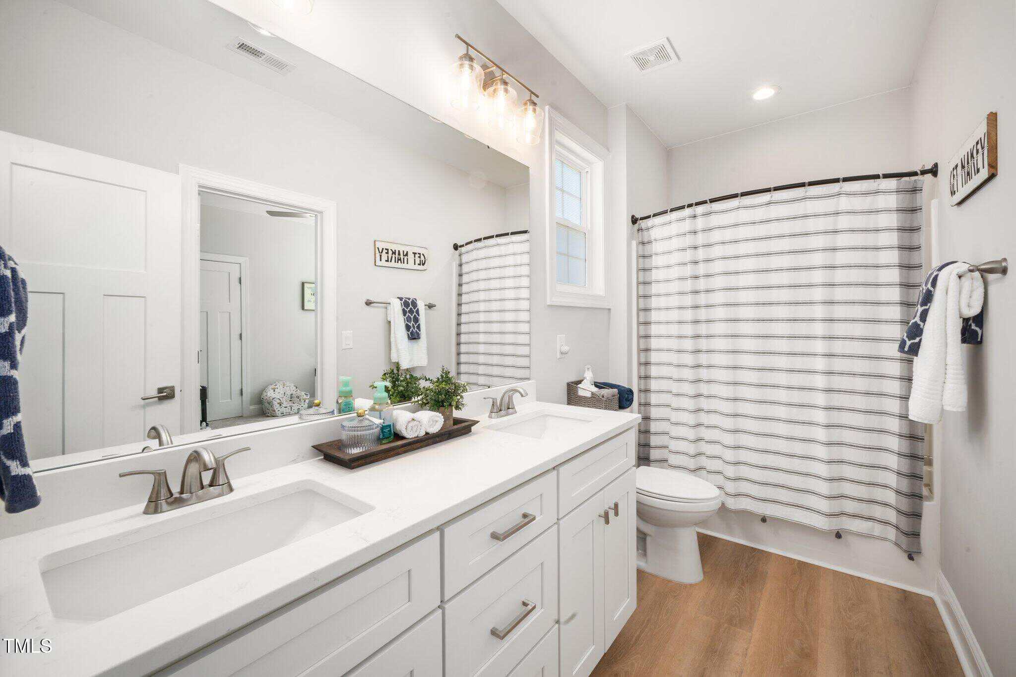 Just like new in the private, gated, lake community of Lake Royale! This home is just over one year old and has already undergone one-year builder repairs, so it’s just like new but with all the new home quirks already addressed. This home offers one-story living with a split floor plan separating the primary suite and secondary bedrooms, which are connected via dual entry bathroom. With 2.5 bathrooms, this home includes a dedicated powder room for guests that most homes this size do not offer. You’ll find top notch carpentry features around every corner — including wooden closet shelving, built-ins, a mud room, and spacious pantry with barn door. Looking for the tranquility of living with nature with an easy commute to the conveniences of the Capital city? This is the one!
