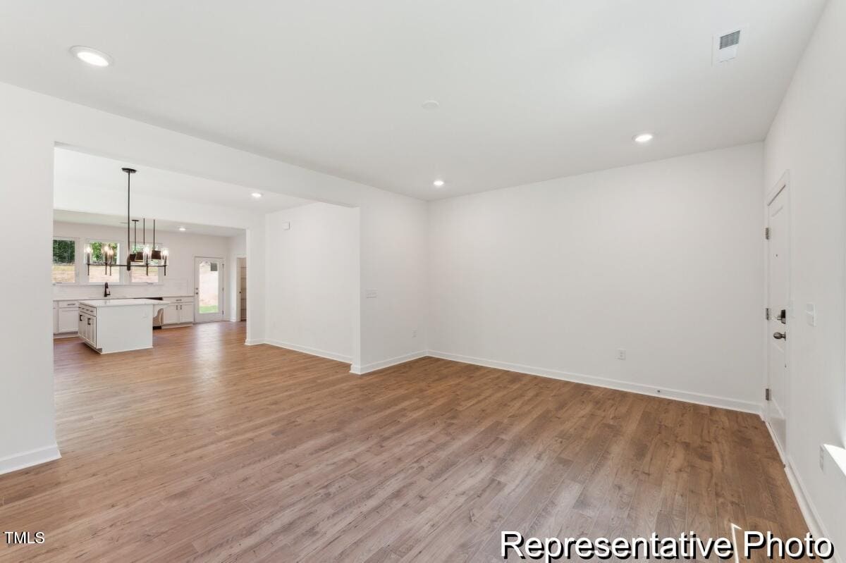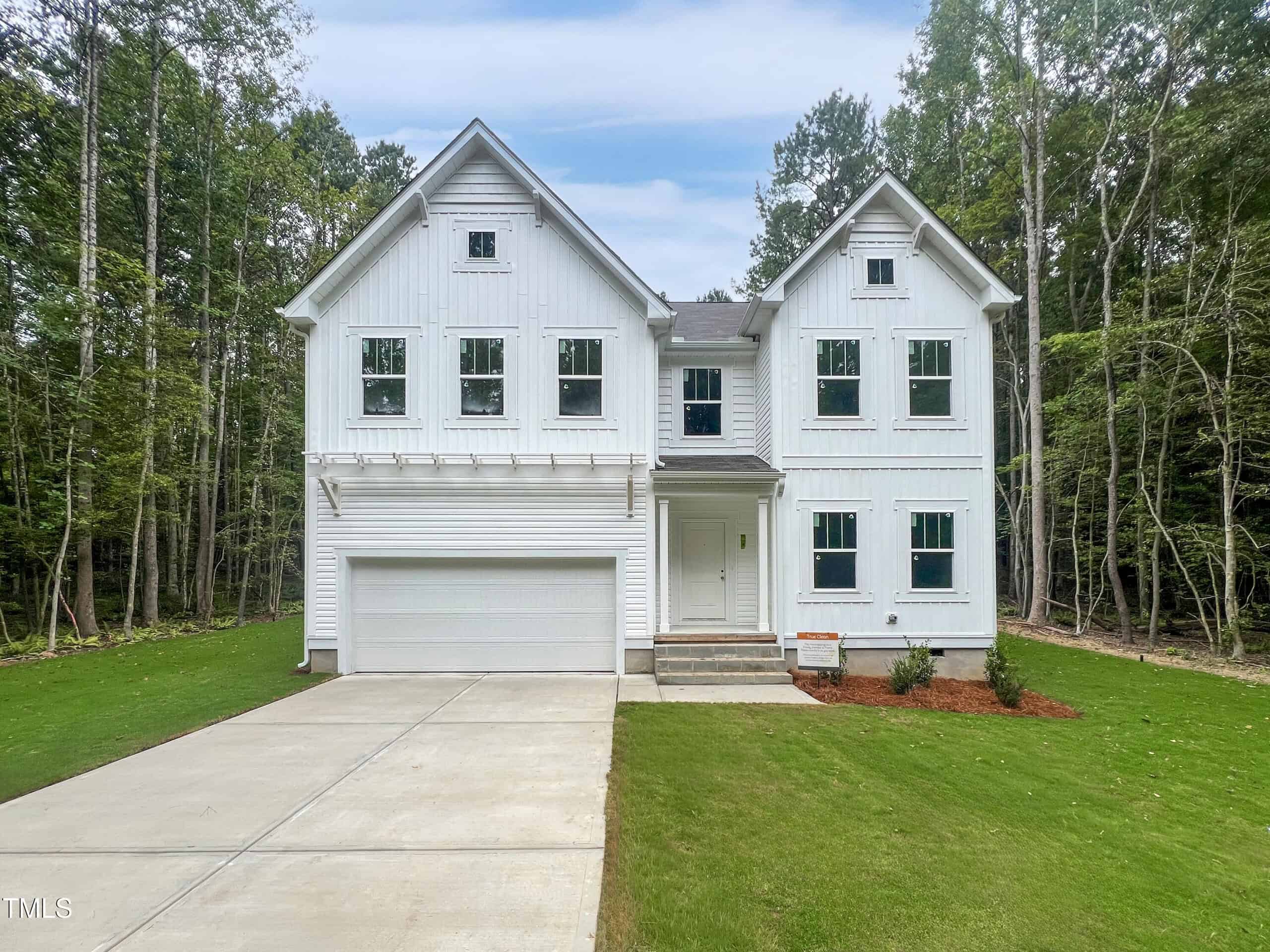 This semi-custom home in the gated, resort-style Lake Royale community offers 3BR/3BA and 2,450 sq ft of thoughtfully designed living space. The Lexa plan features an open great room, dining area, and a stunning kitchen with quartz countertops, upgraded cabinetry, tile backsplash, and stainless steel appliances. A private study with media closet and a screened-in rear deck complete the main level. Upstairs, enjoy a spacious primary suite with sitting area and ensuite bath, along with two additional bedrooms, full bath, and laundry room with folding table. A 2-car garage provides added convenience. Lake Royale offers boating, fishing, swimming, a lakeside clubhouse, pool, beaches, sports courts, fitness park, and close proximity to The River Golf Course. Resort living at its best!