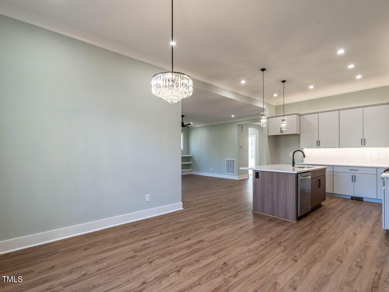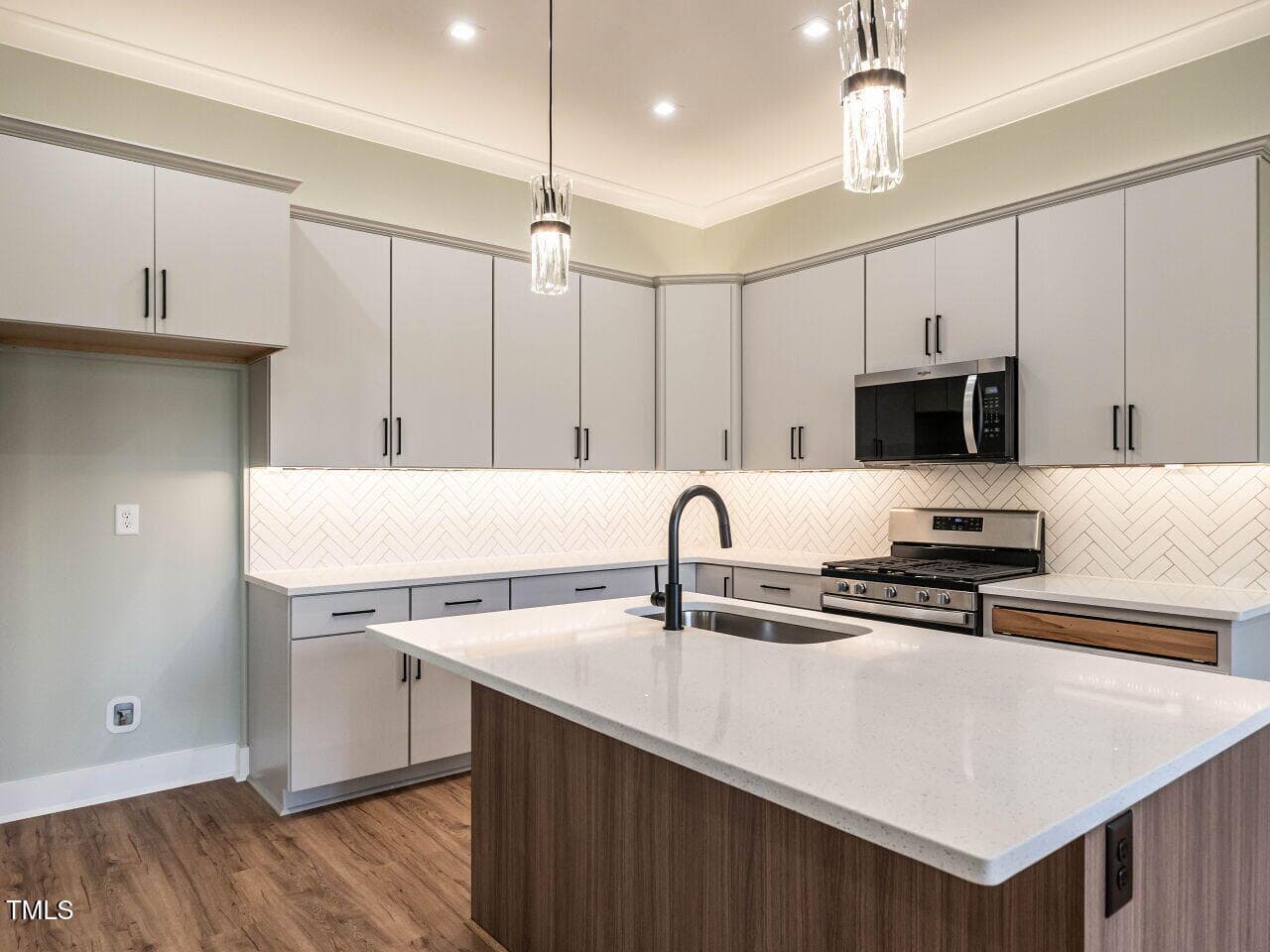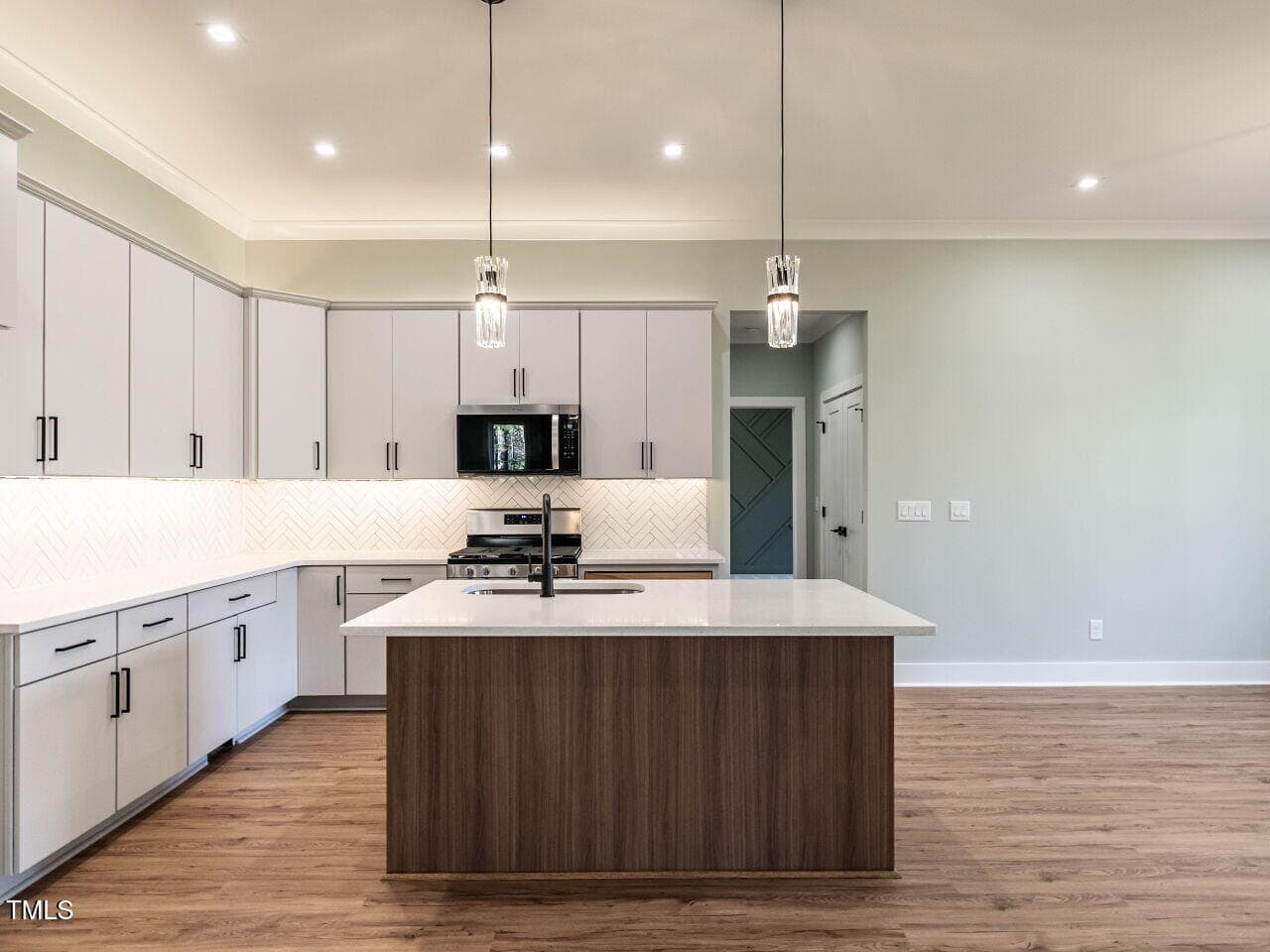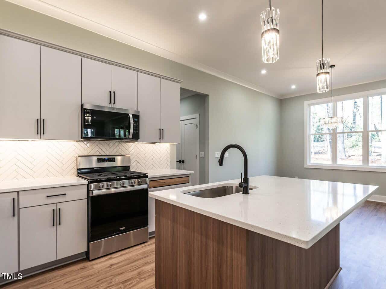 The chef’s kitchen is a showstopper, with a large center island featuring an oversized sink, dramatic tile backsplash, and undermount lighting that highlights the light-above-cabinetry design. Storage is a breeze with a spacious pantry. The bright and airy dining area overlooks the private, level backyard, offering a serene view for every meal.