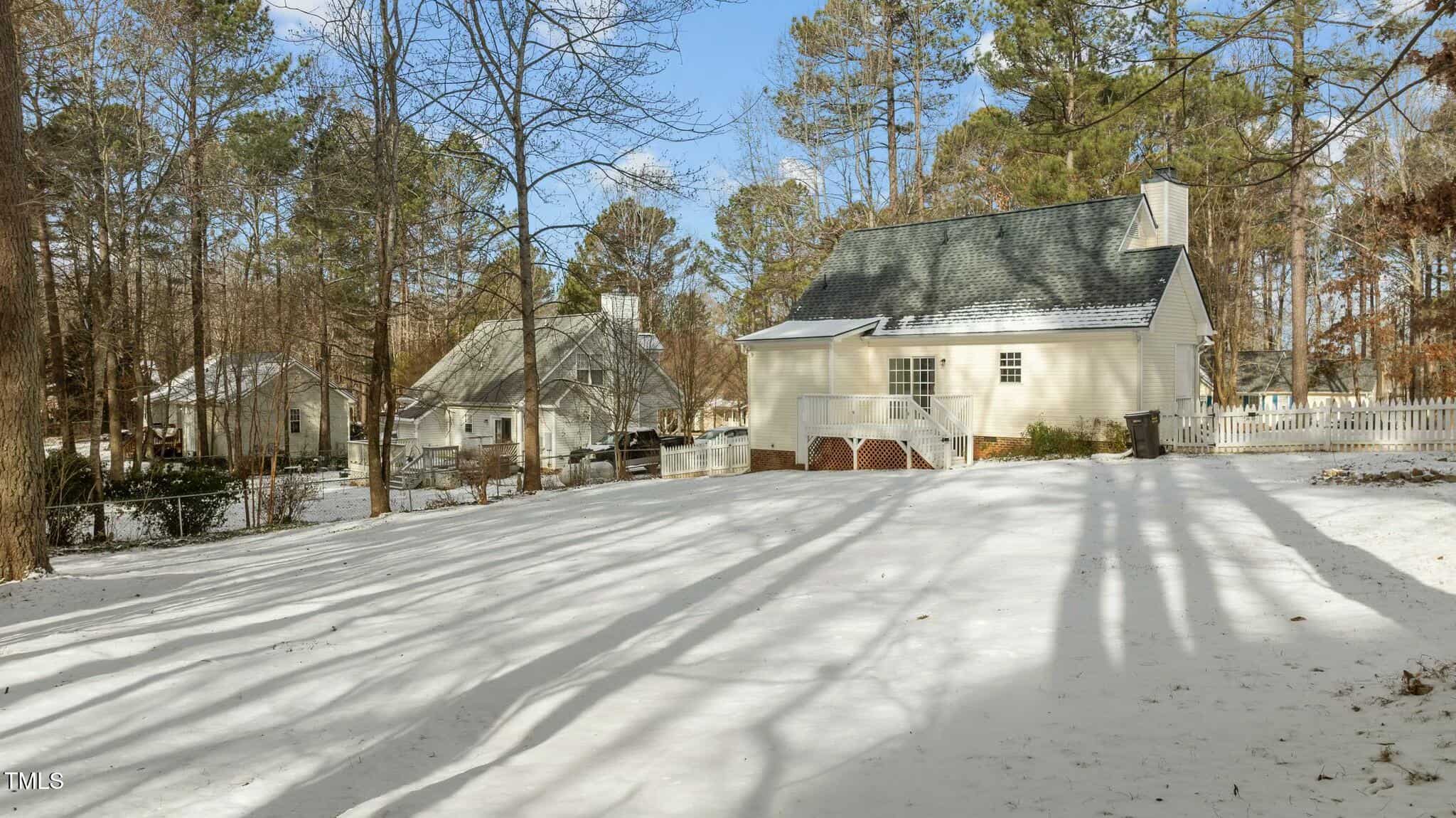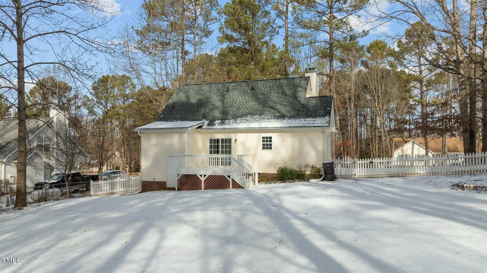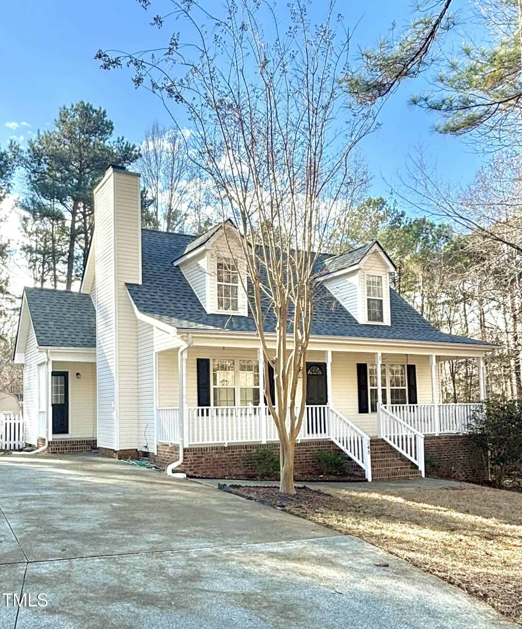 Move-in ready Cape Cod-style home in Youngsville! This 3-bedroom, 2-bathroom home offers 1,348 sq. ft. of living space on a spacious 0.47-acre lot with no HOA. Fresh interior paint throughout provides a bright and welcoming atmosphere. Recent updates include a new roof (10/2023), HVAC system (10/2021), and updated fixtures, offering modern touches and peace of mind for years to come.