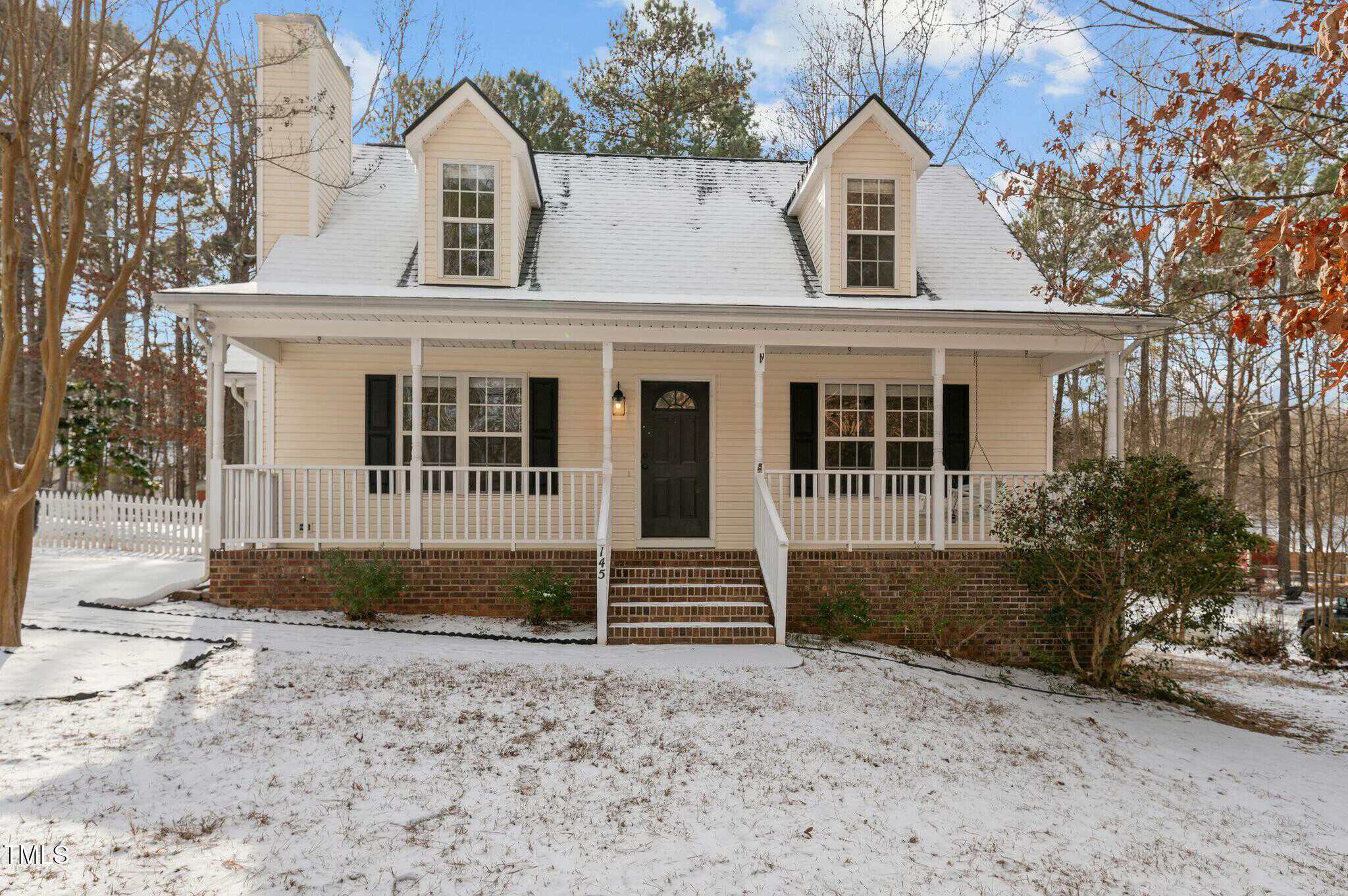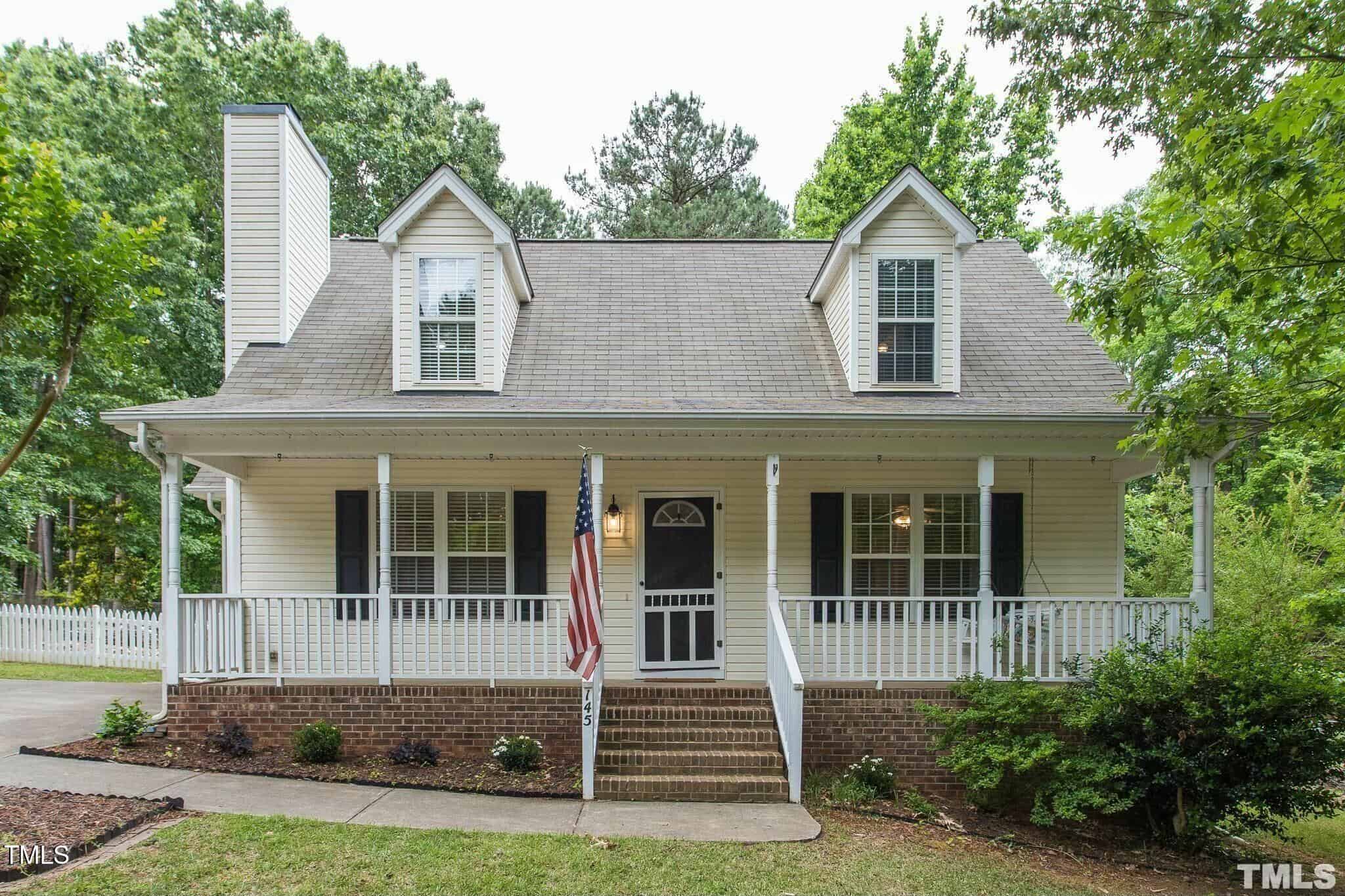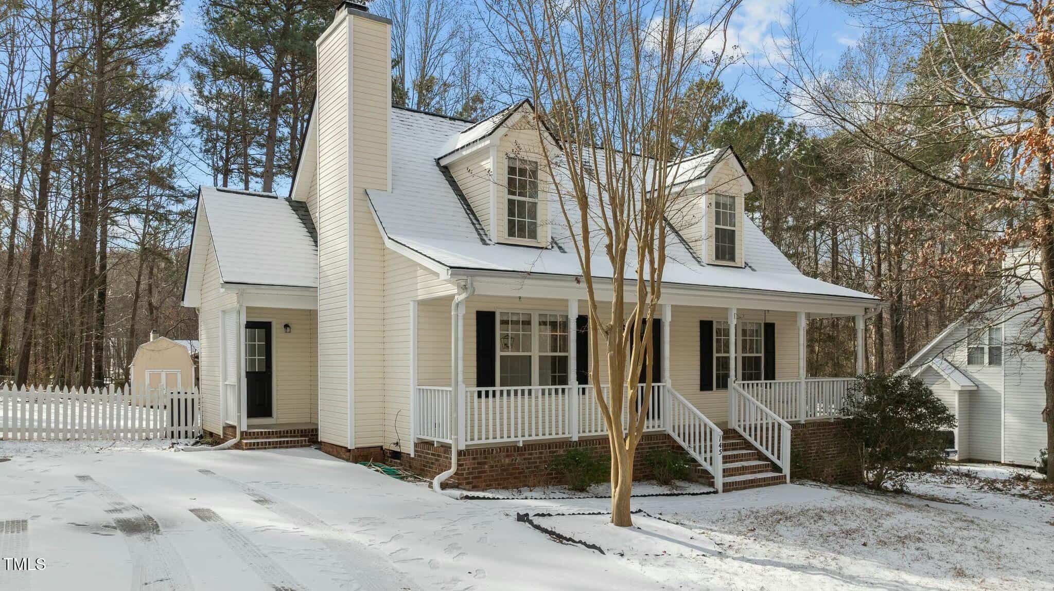 Move-in ready Cape Cod-style home in Youngsville! This 3-bedroom, 2-bathroom home offers 1,348 sq. ft. of living space on a spacious 0.47-acre lot with no HOA. Fresh interior paint throughout provides a bright and welcoming atmosphere. Recent updates include a new roof (10/2023), HVAC system (10/2021), and updated fixtures, offering modern touches and peace of mind for years to come. The main floor features a cozy family room with a wood burning fireplace, a convenient first-floor master suite with a walk-in closet and dual vanity sinks, and a functional kitchen layout. Upstairs, two additional bedrooms offer tons of closet space, providing flexible living options. Enjoy the outdoors on the large lot, perfect for gardening, recreation, or entertaining. Conveniently located near downtown Youngsville, this home is move-in ready and waiting for you! Schedule your showing today!