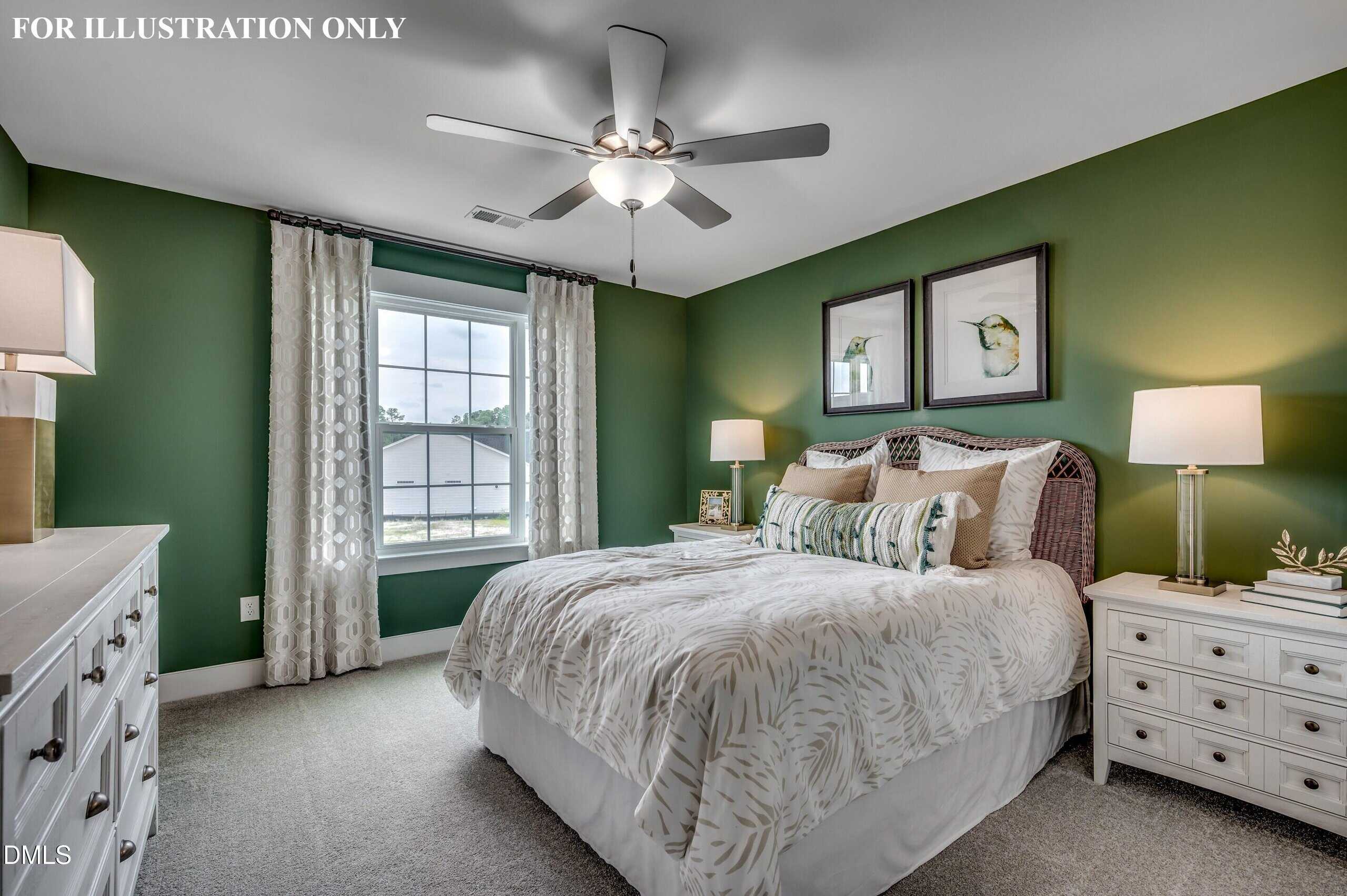 Primary suite and guest suite on the main level! ”Lounge Greige” LVP flooring throughout the downstairs open areas! The kitchen features a 12-foot ceiling, ”bianco calacatta” quartz countertops, a 9-foot center island, gorgeous custom cabinets with soft close feature, tile backsplash, stainless steel appliances including a gas cooktop, built-in oven/microwave combo and crown molding! The primary bedroom offers a tray ceiling with crown molding, plush carpet and ceiling fan. Thr primary en-suite bath with 5-foot tiled shower, tile flooring, custom cabinets, a dual vanity with quartz top, linen closet and a spacious walk-in closet! The great room features 12-foot ceiling, gas log fireplace and a triple window! A huge laundry room with cabinets, granite countertop and sink! Upstairs offers an additional bedroom, full bath and unfinished walk-in attic storage. A large 14×12 rear covered porch overlooks the backyard! Enjoy this swimming pool and clubhouse community!