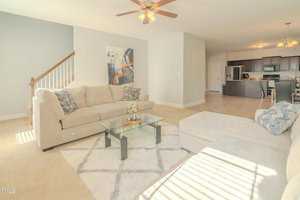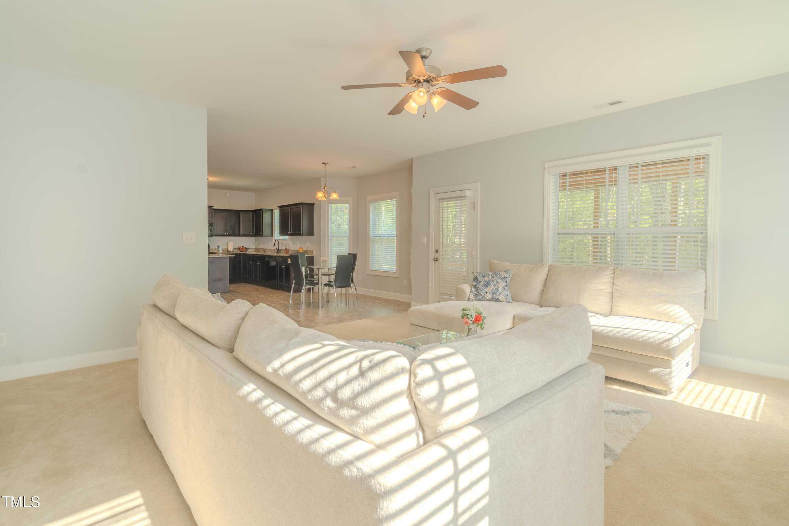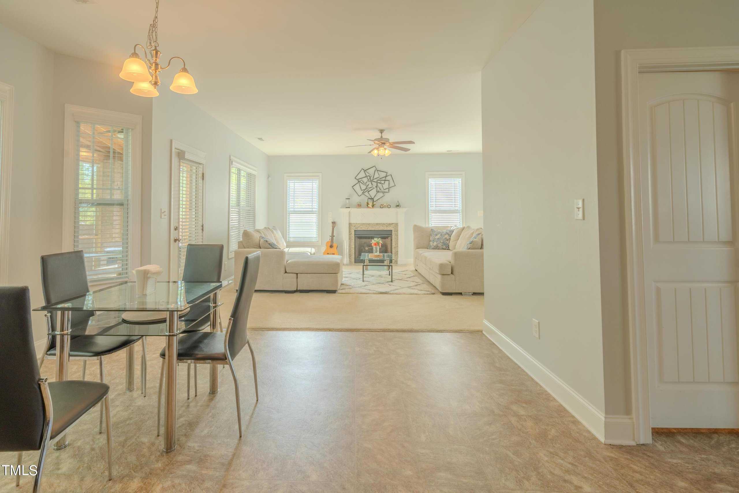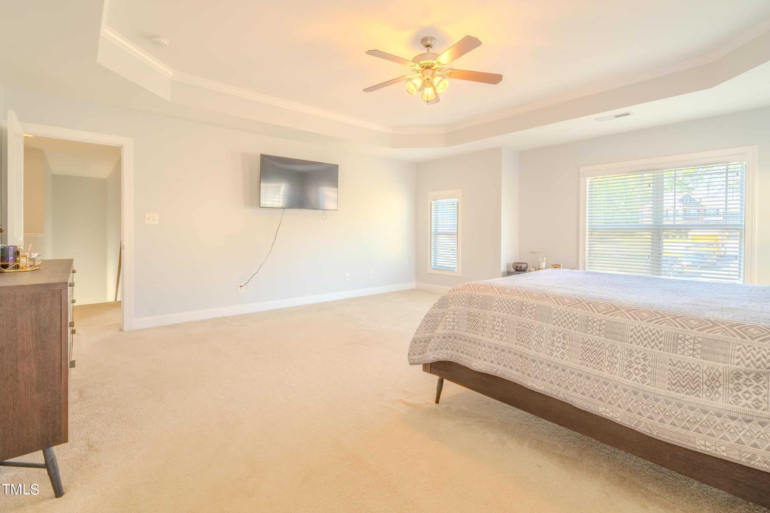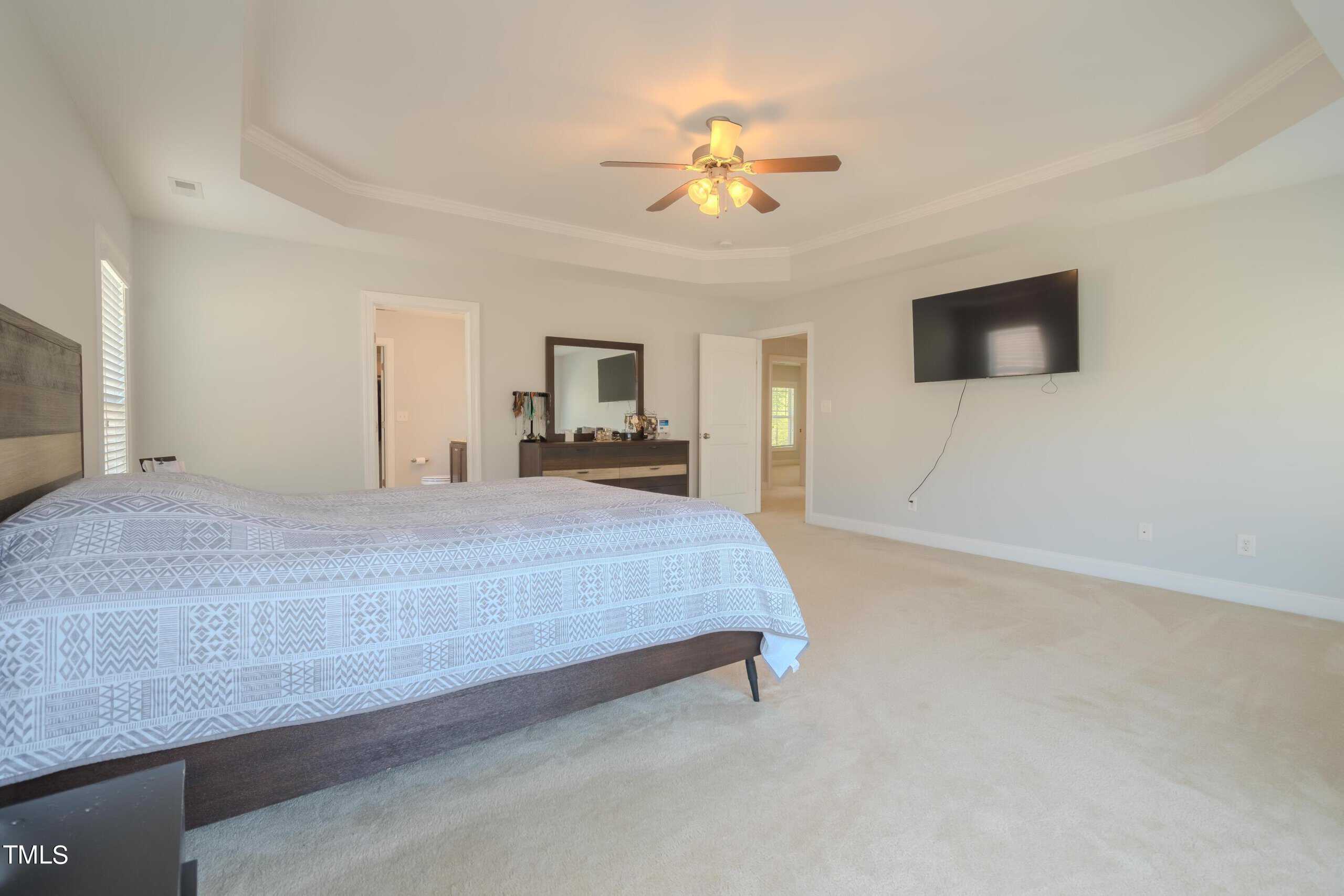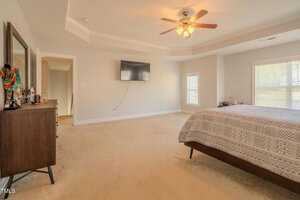 This exquisite home is truly move-in ready, offering an expansive open layout and a touch of elegance throughout. As you step inside, you’re greeted by a formal dining room perfect for hosting memorable gatherings. The main bedroom is generously sized, providing a tranquil retreat with its tray ceiling, crown molding, and a cozy brushed nickel ceiling fan with light.