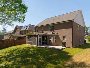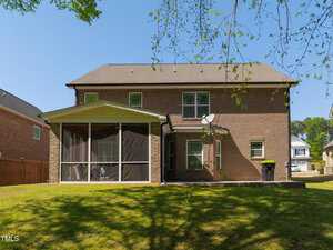 This exquisite home is truly move-in ready, offering an expansive open layout and a touch of elegance throughout. As you step inside, you’re greeted by a formal dining room perfect for hosting memorable gatherings. The main bedroom is generously sized, providing a tranquil retreat with its tray ceiling, crown molding, and a cozy brushed nickel ceiling fan with light. The heart of the home lies in the beautifully appointed kitchen, where rich espresso stained cabinets complement the sleek granite countertops. A center island with barstool seating invites casual conversations, while brushed nickel lighting adds a modern flair. Unwind in the cozy family room, complete with a gas log fireplace, perfect for cozy evenings spent indoors. Step outside to discover the inviting screened porch, ideal for alfresco entertaining with its vaulted ceiling and refreshing paddle fan with light. Beyond, a grilling patio beckons, overlooking serene woods for a peaceful outdoor retreat. This home seamlessly blends style, comfort, and functionality, offering a haven for both relaxation and entertainment.