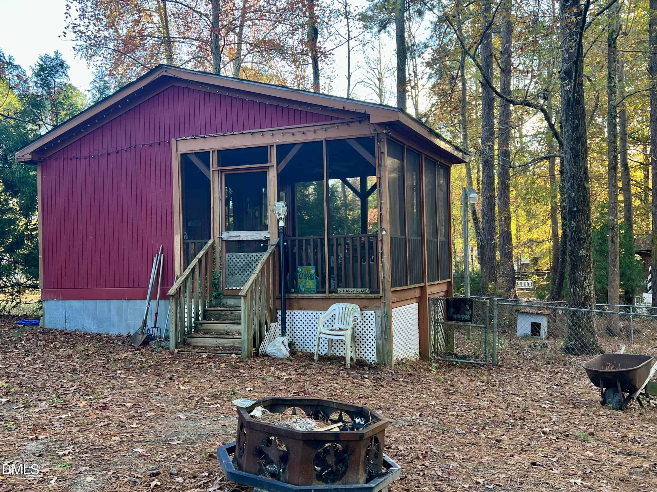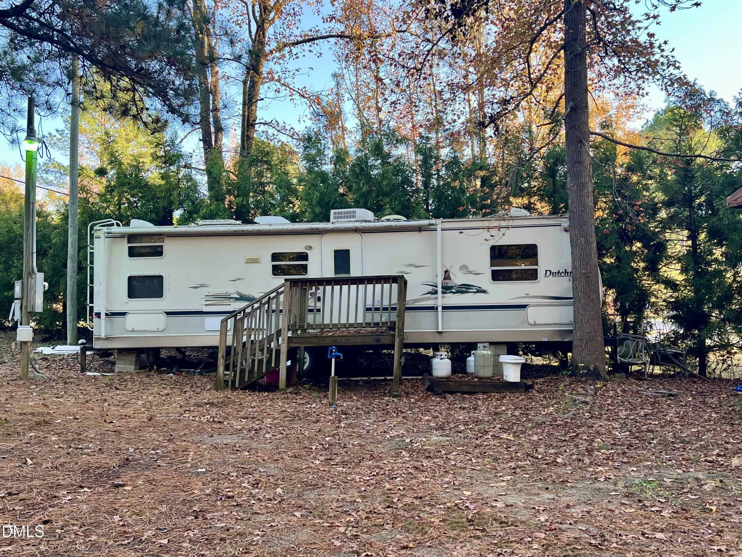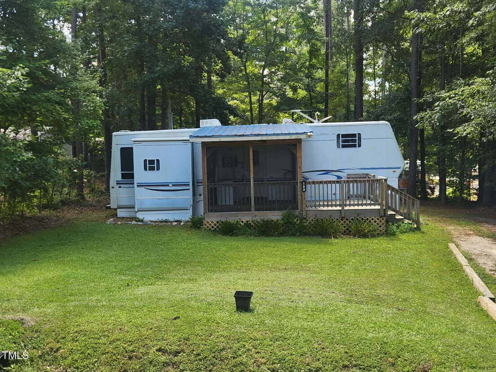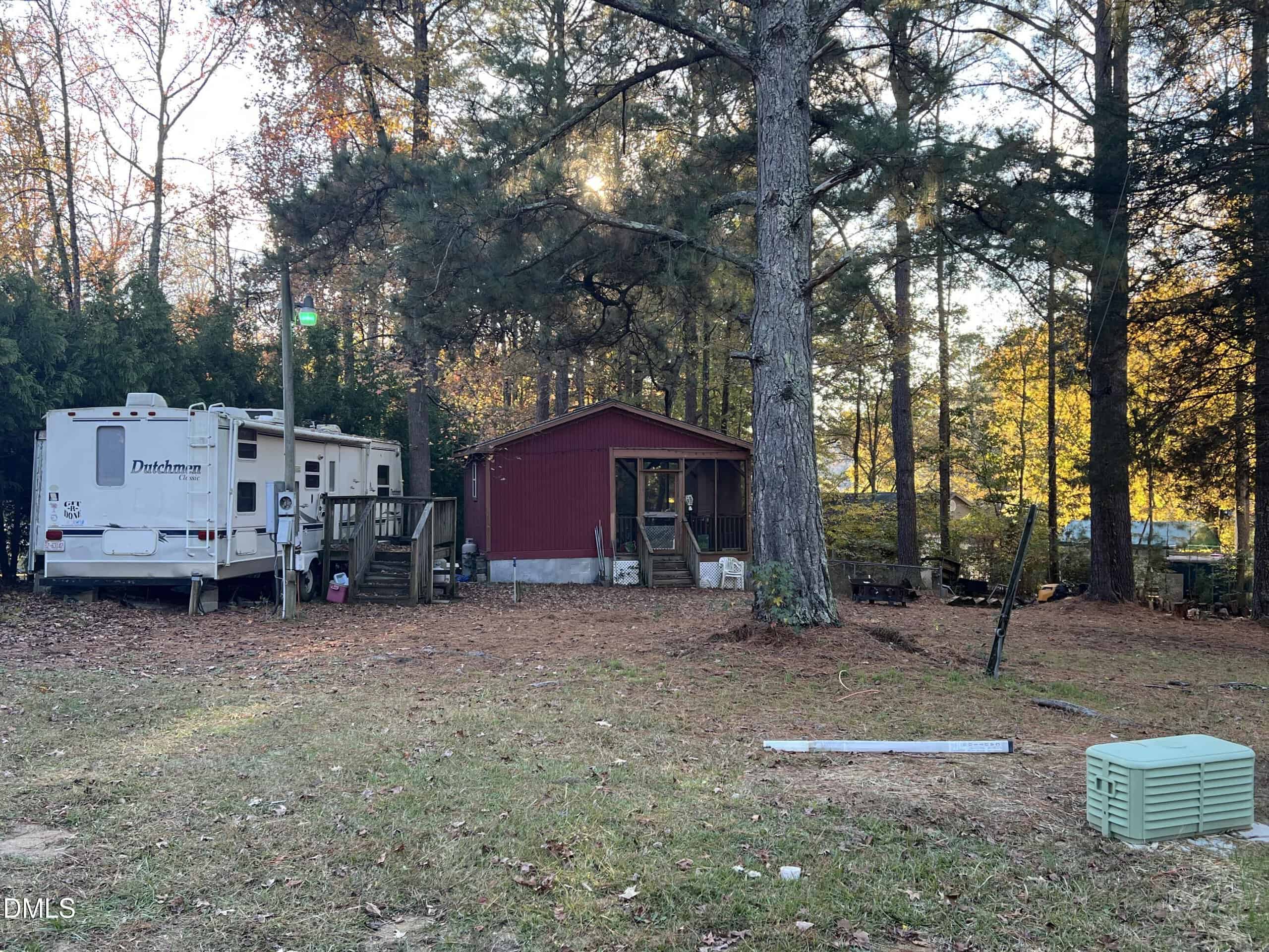 Great get away to the lake with a short walk to a cove on beautiful Lake Royale. This is a partially wooded corner lot with 2 camper hookups, one camper that needs some work and a separate permanent cookhouse with well-appointed kitchen and screened porch! You must see to believe!