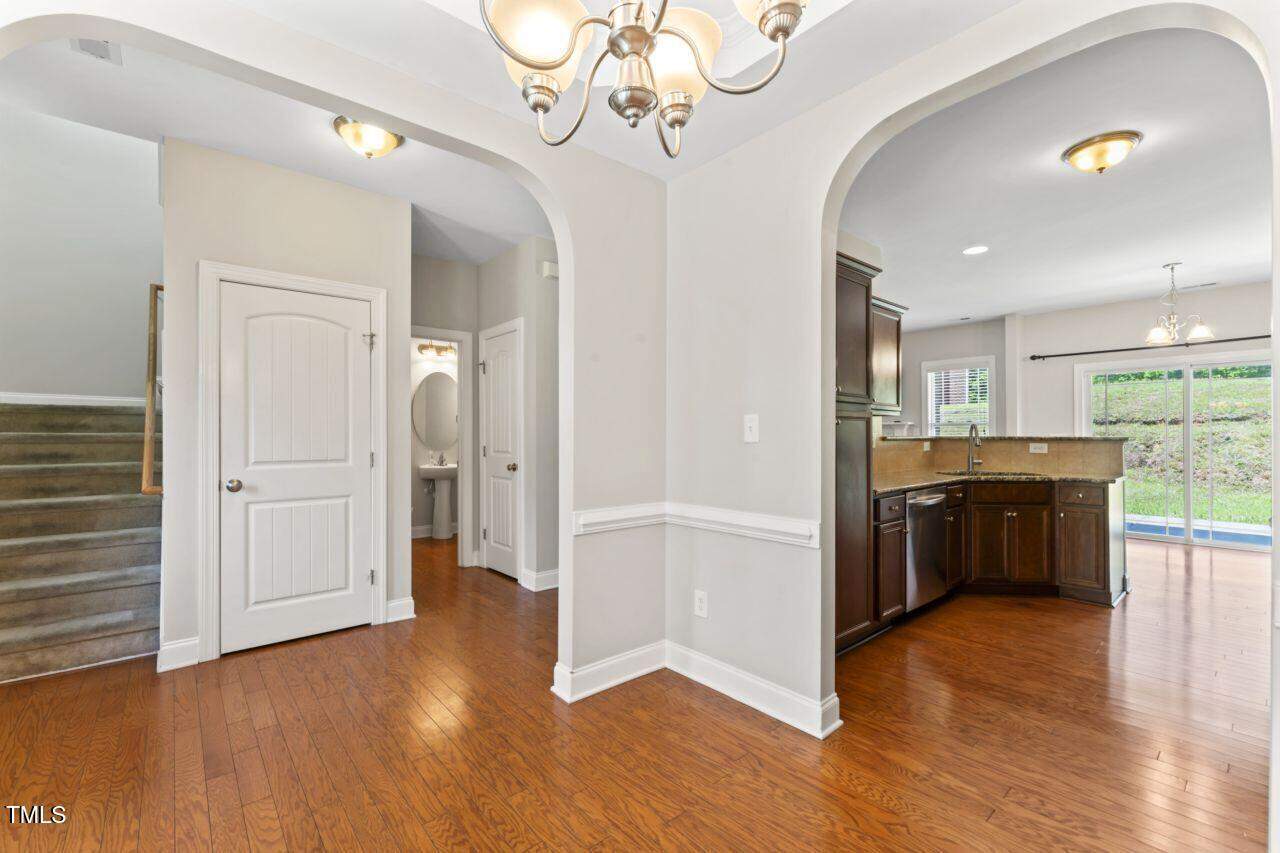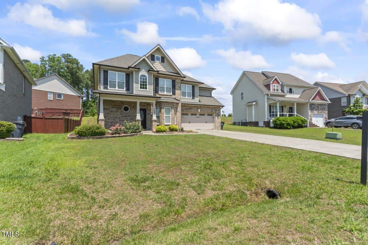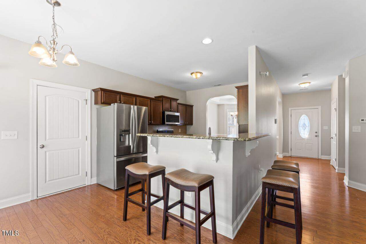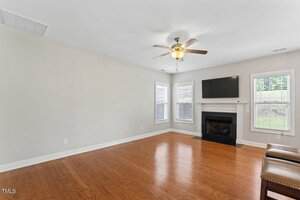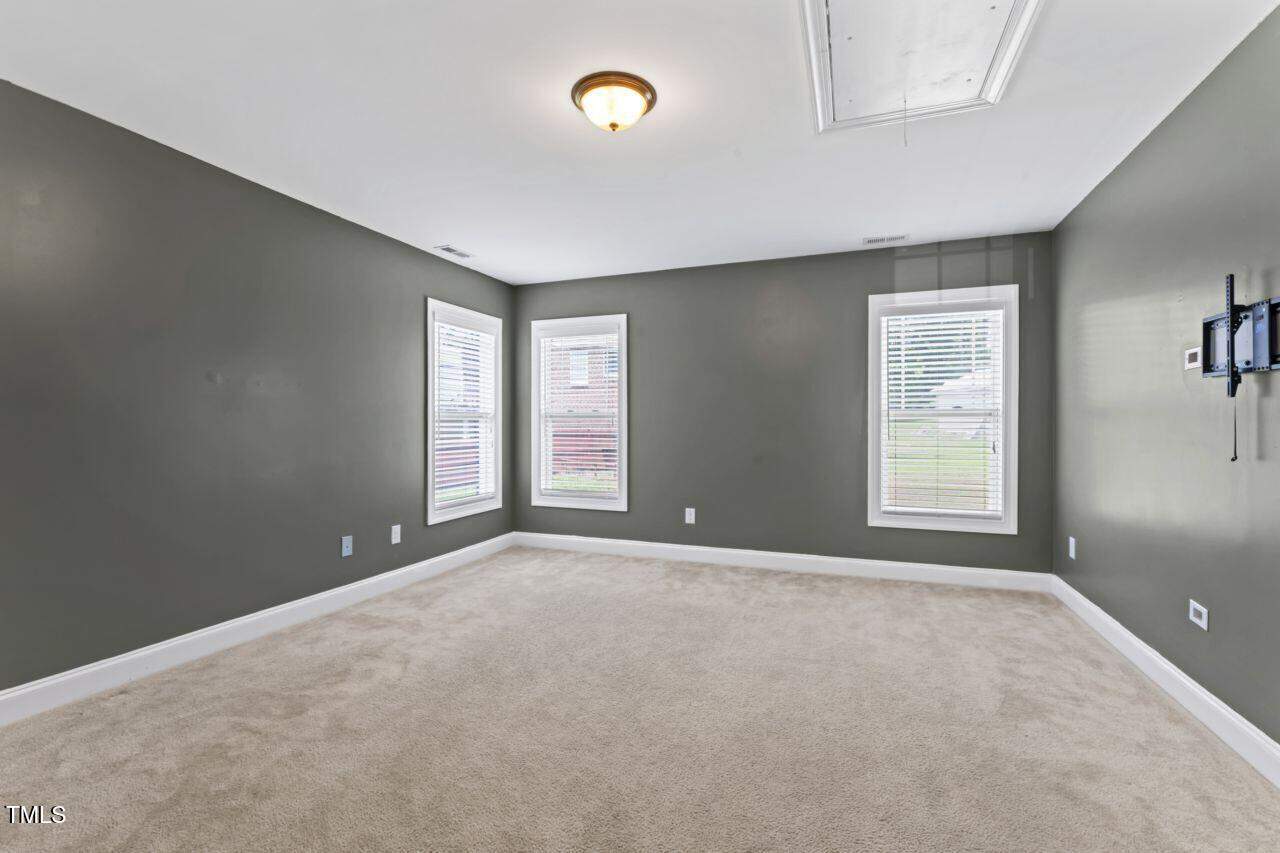 Come see this hard to find under 400K, large sunny home, brick on all 4 sides, gorgeous blooming perennial plantings, beautiful interior arched openings, large open family room with hardwoods and gas log FP, open kitchen with SS appliances with breakfast area AND dining room. A spacious 3 BR home including dramatic primary BR with sitting area and tray ceiling. Bonus room is perfect as a home theatre, extra sleeping space, guest room or recreation room. Fresh paint throughout! Washer, dryer and 2 mounted TVs convey. Sellers to provide Home Warranty to buyers. Central, easy commute location: 15 min to downtown Durham. 15 min to Raleigh. Right around the corner from Falls Lake with bountiful recreation areas and sunsets over the lake. Quiet Fireside Lane ends in a cul-de-sac.