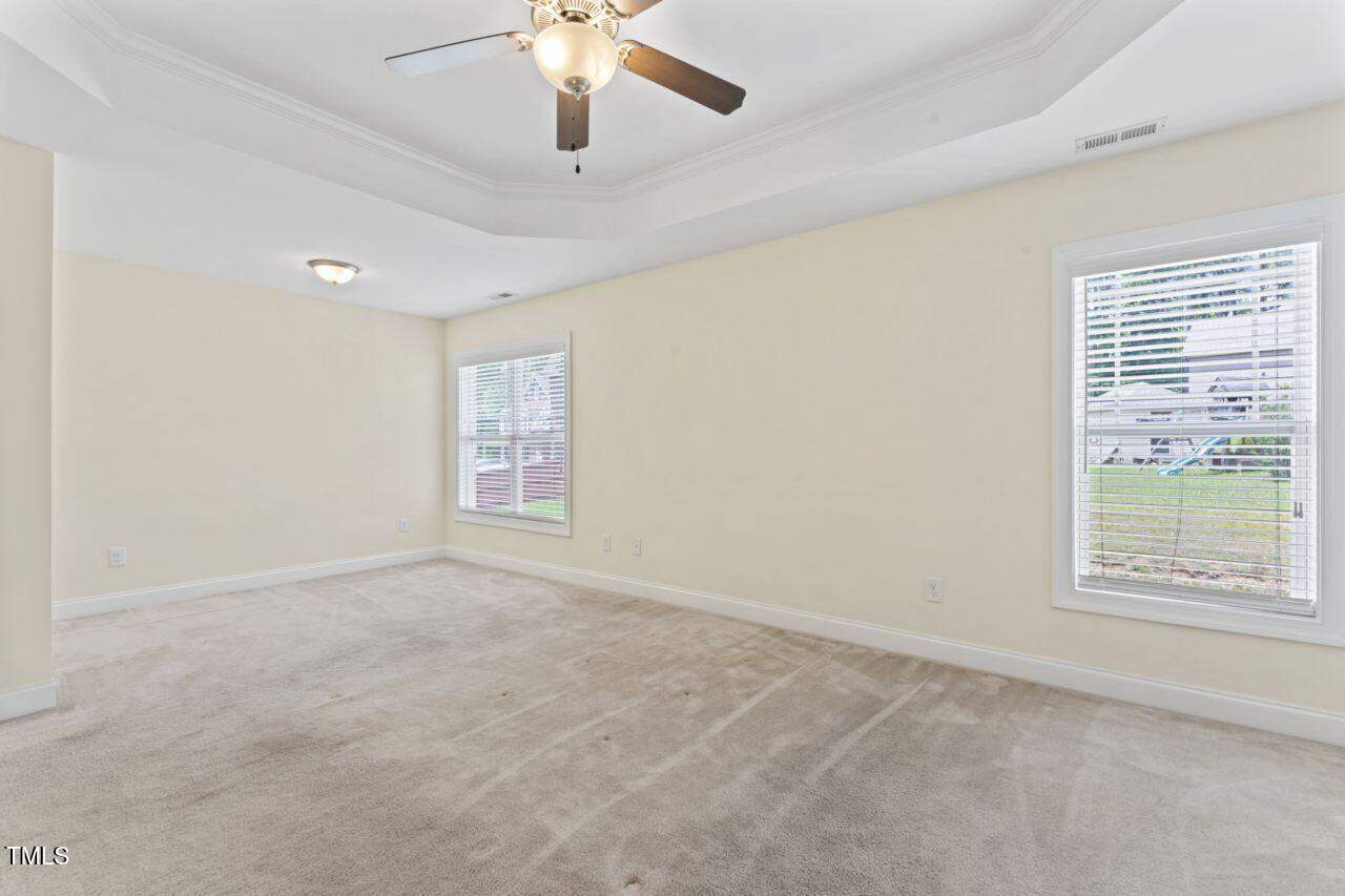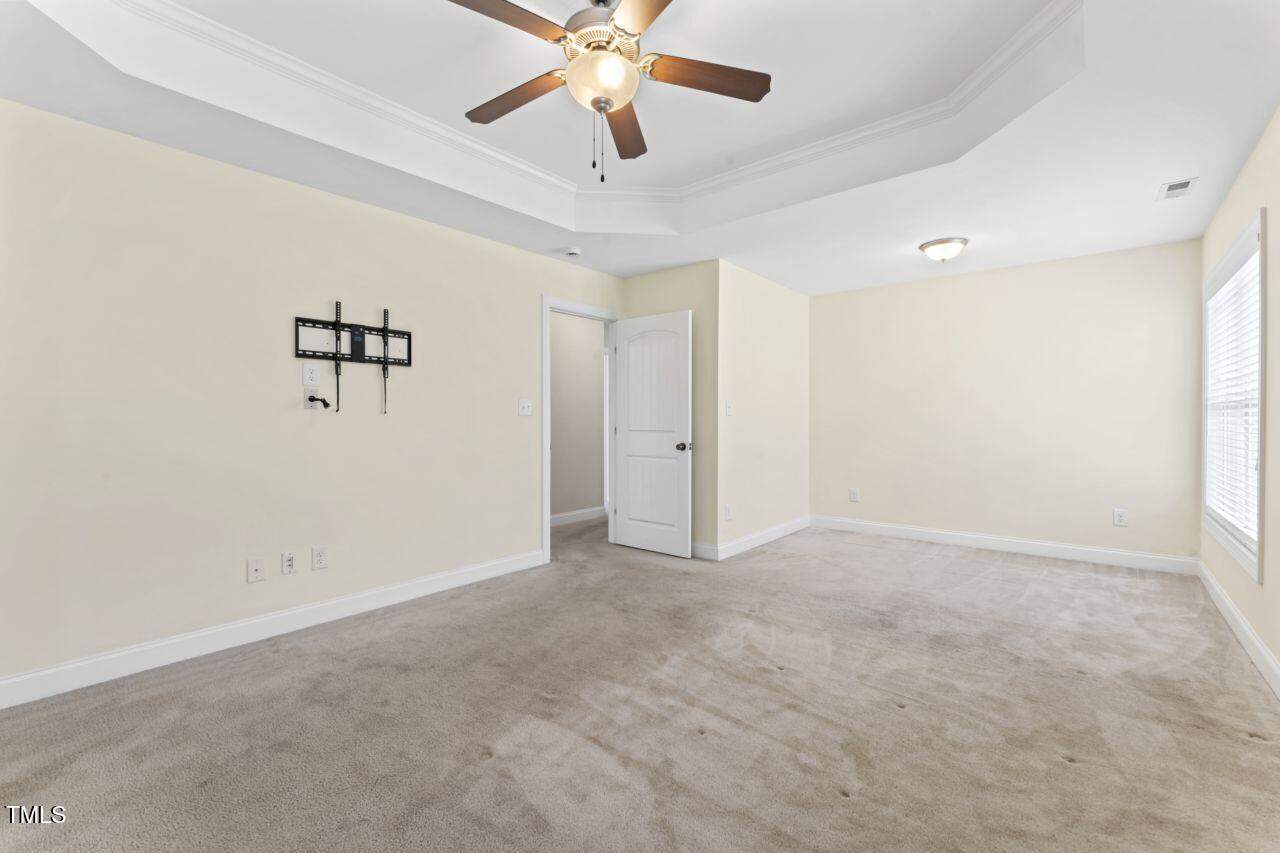 A spacious 3 BR home including dramatic primary BR with sitting area and tray ceiling. Bonus room is perfect as a home theatre, extra sleeping space, guest room or recreation room. Fresh paint throughout! Washer, dryer and 2 mounted TVs convey. Sellers to provide Home Warranty to buyers.