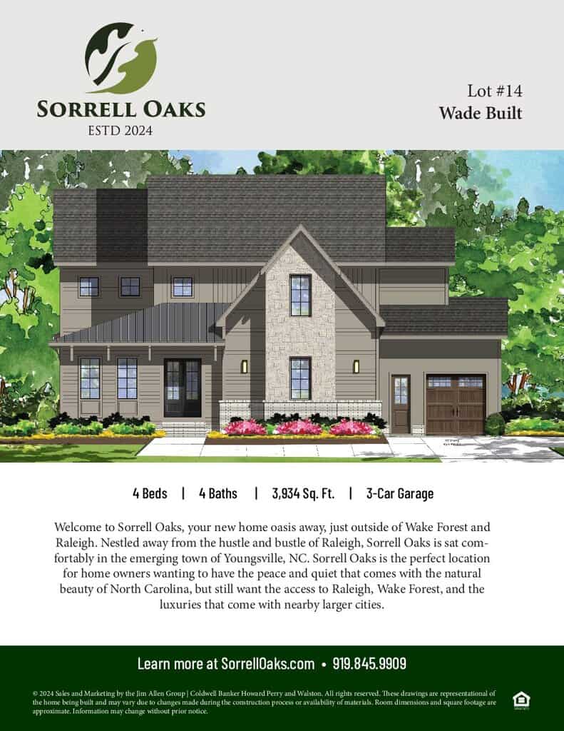 Situated on a large corner lot, perfect to accommodate a pool in highly sought after Sorrell Oaks. 10′ soaring ceilings, upgraded features including Marvin essential windows and epoxy garage flooring! Wide plank hardwoods span throughout the main living areas including the main level primary suite and study.
