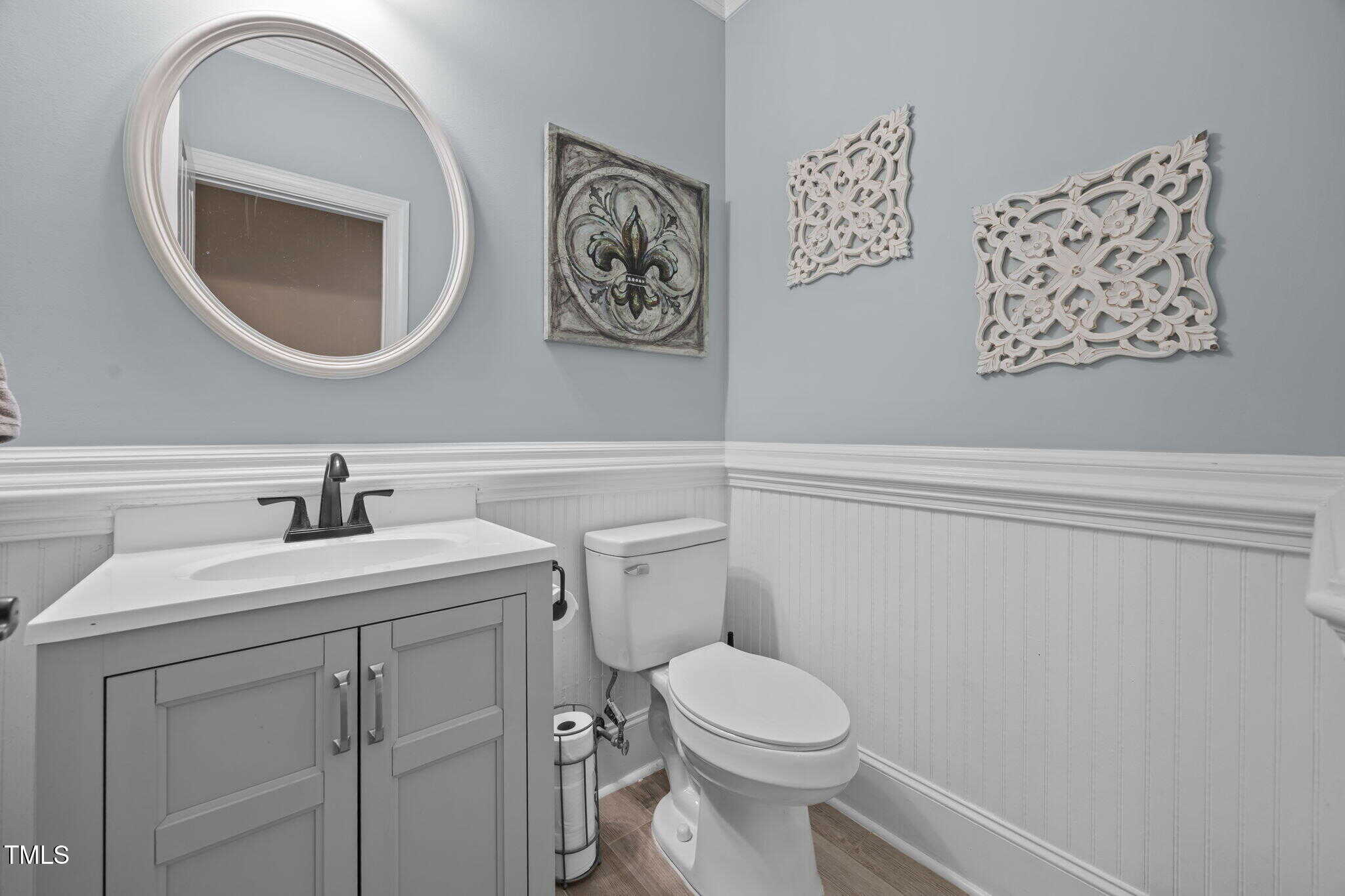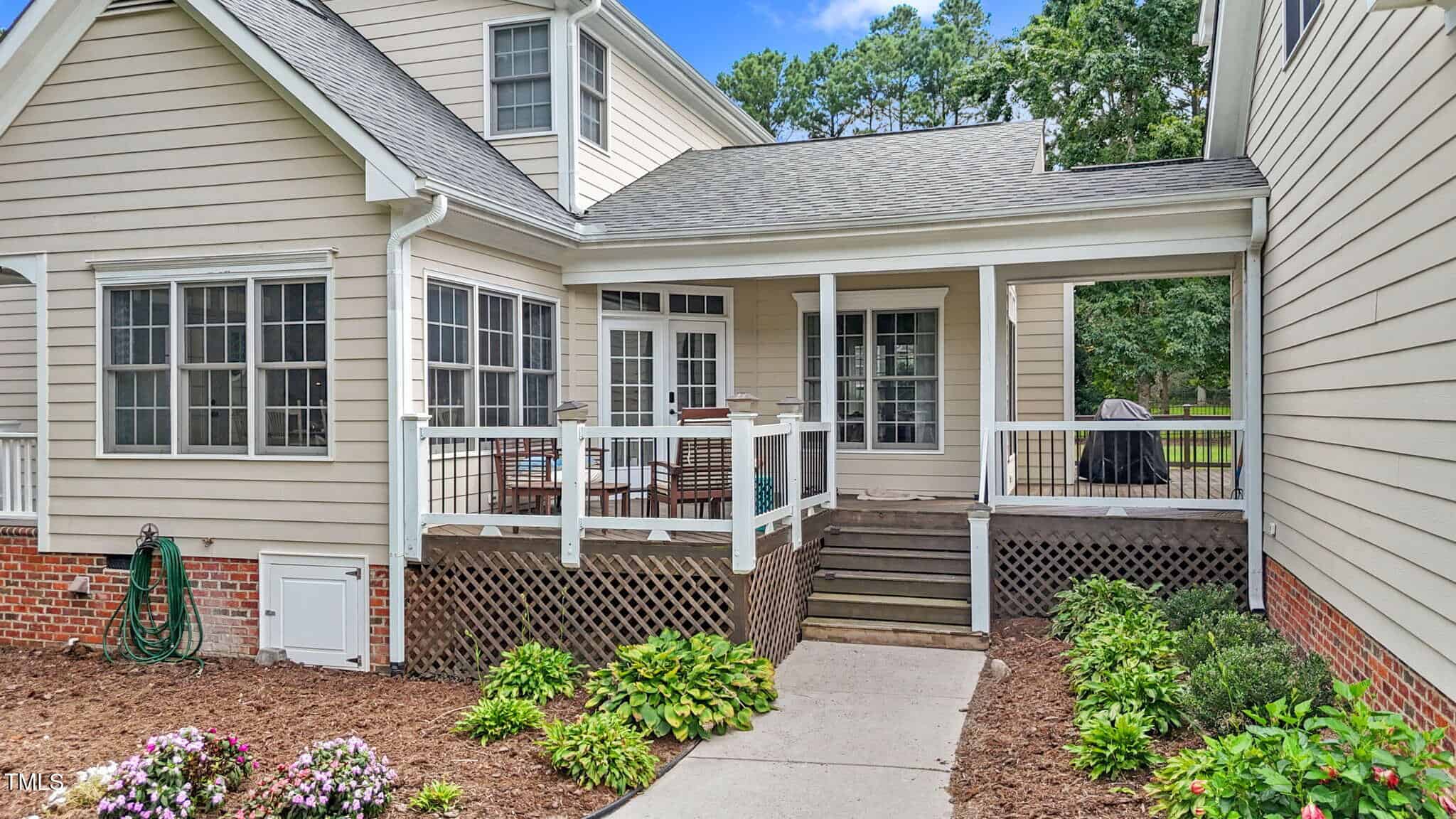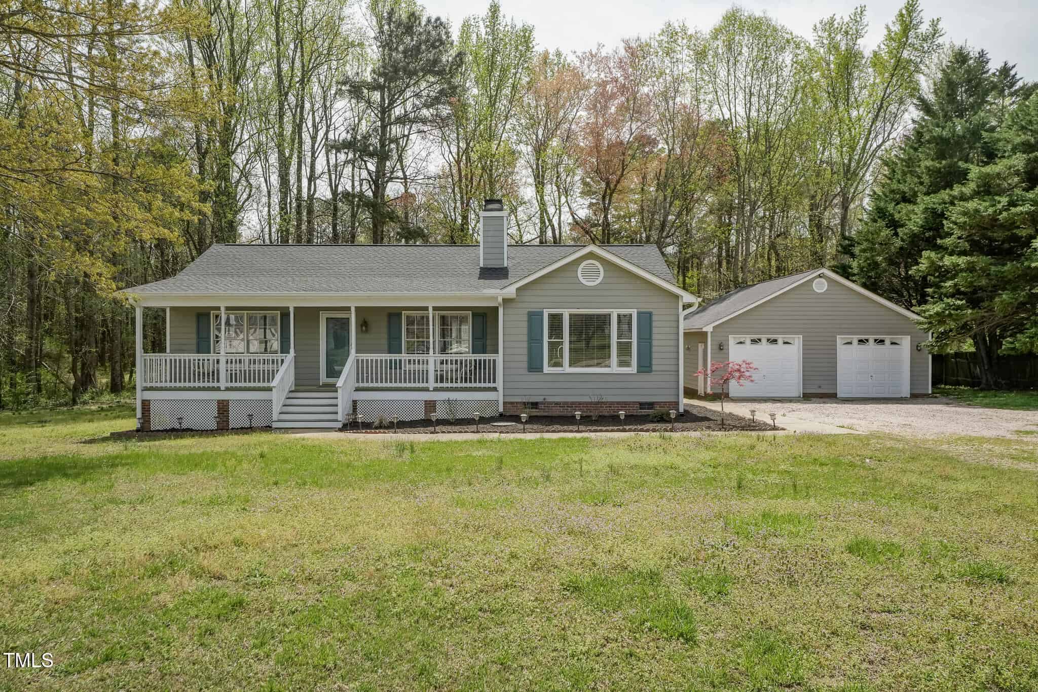 Welcome to 150 River Watch Lane, located in the highly sought-after Rivers Edge community. This beautifully updated 4-bedroom, 2.5-bath home offers approximately 2,500 heated square feet and is nestled on a .92-acre corner homesite. Upon entering, you’ll find site-finished hardwood floors that flow throughout the main living areas, extensive crown molding, and an elegant 12-lite stained wood front door with sidelights and an arched transom above. To the right of the foyer, the formal dining room features a coffered ceiling with crown molding, chair rail with picture frame wainscoting, and a triple window. The vaulted family room is filled with natural light and anchored by a ceiling fan with a light kit. The updated kitchen boasts crisp white shaker cabinets, a center island with contrasting gray cabinetry and barstool seating, granite countertops, a herringbone backsplash, under-cabinet lighting, and a dedicated coffee bar area. Whirlpool stainless-steel appliances include a smoothtop range/oven, built-in microwave, and dishwasher. The first-floor owner’s suite features plush carpet, crown molding, ceiling fan with light kit, and two double-door closets. The spa-style bath includes marble-style tile flooring, a tile-surround soaking tub, a seamless glass-enclosed shower with decorative inserts, a linen closet, water closet, dual vanity with cultured marble countertops, and cherry-stained raised-panel cabinetry. The kitchen opens to a vaulted breakfast room surrounded by windows, with access to the side covered porch—perfect for everyday entry and relaxation. The covered walkway connects to a grilling deck and detached 2-car garage with a finished second floor above with 475 square feet. A turned staircase leads upstairs to a spacious bonus room, two additional bedrooms, and a full bath. Near the Tar River, Rivers Edge is a pool community that offers natural surroundings and a peaceful setting while still providing easy access to local amenities. Just minutes from downtown Youngsville and a short drive to Wake Forest and North Raleigh, you’ll enjoy convenient shopping, dining, and services within reach. Other noteable features: New roof (2020) and, New AC unit (2018) Call today to schedule a private showing!